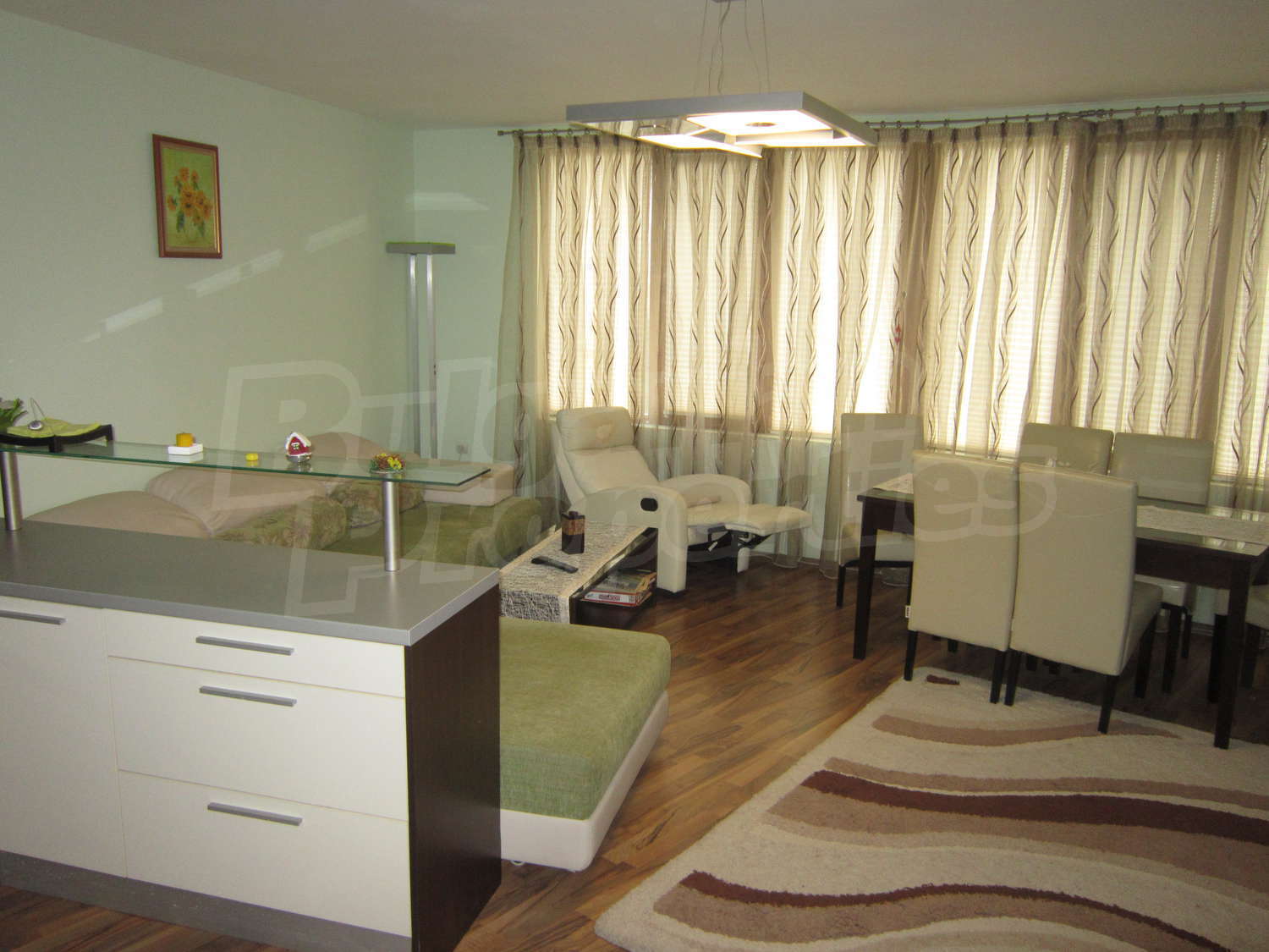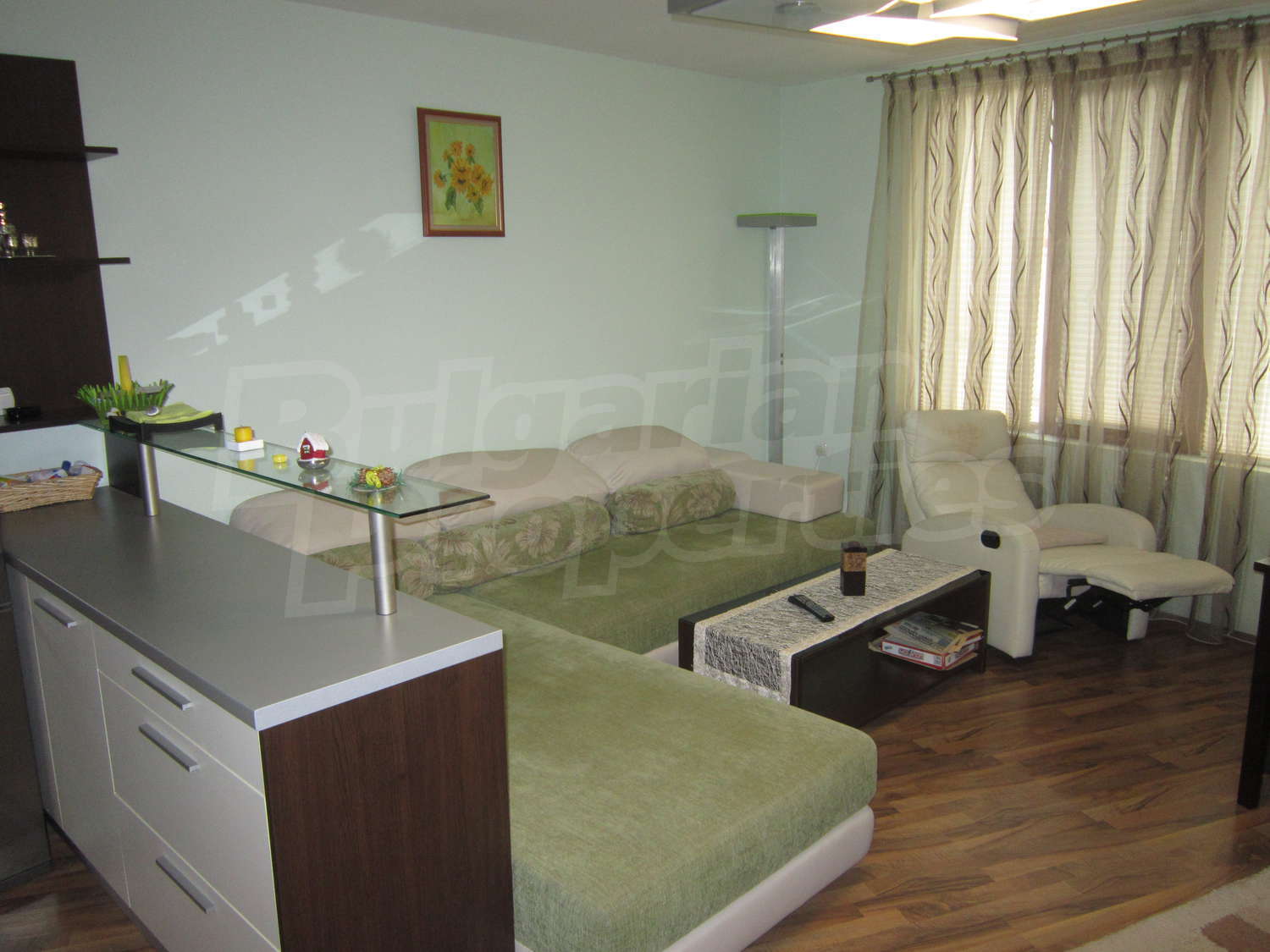 • подове - дневна и спалня качествен ламиниран паркет, тераси на гранитогрес, кухня на гранитогрес
