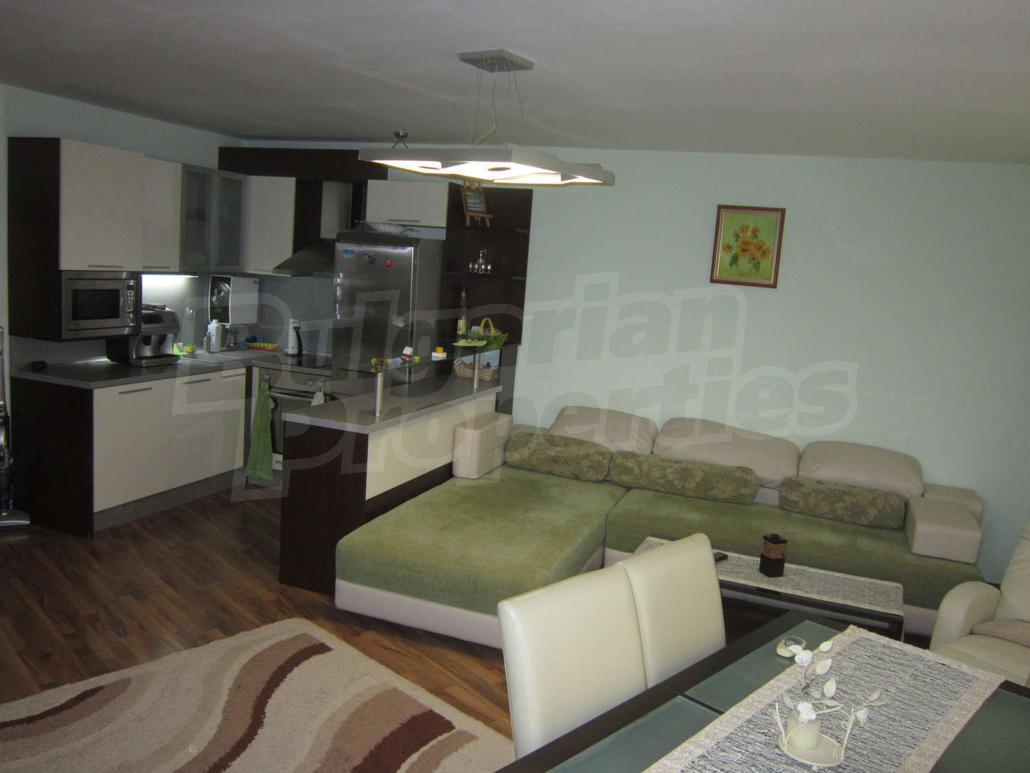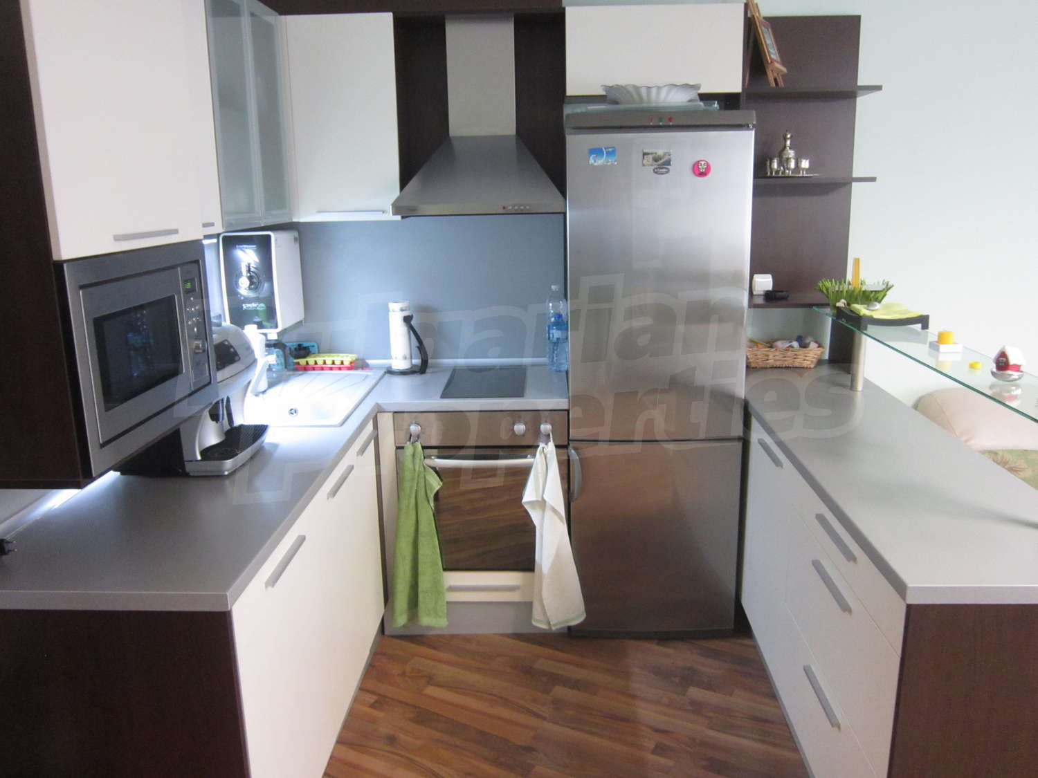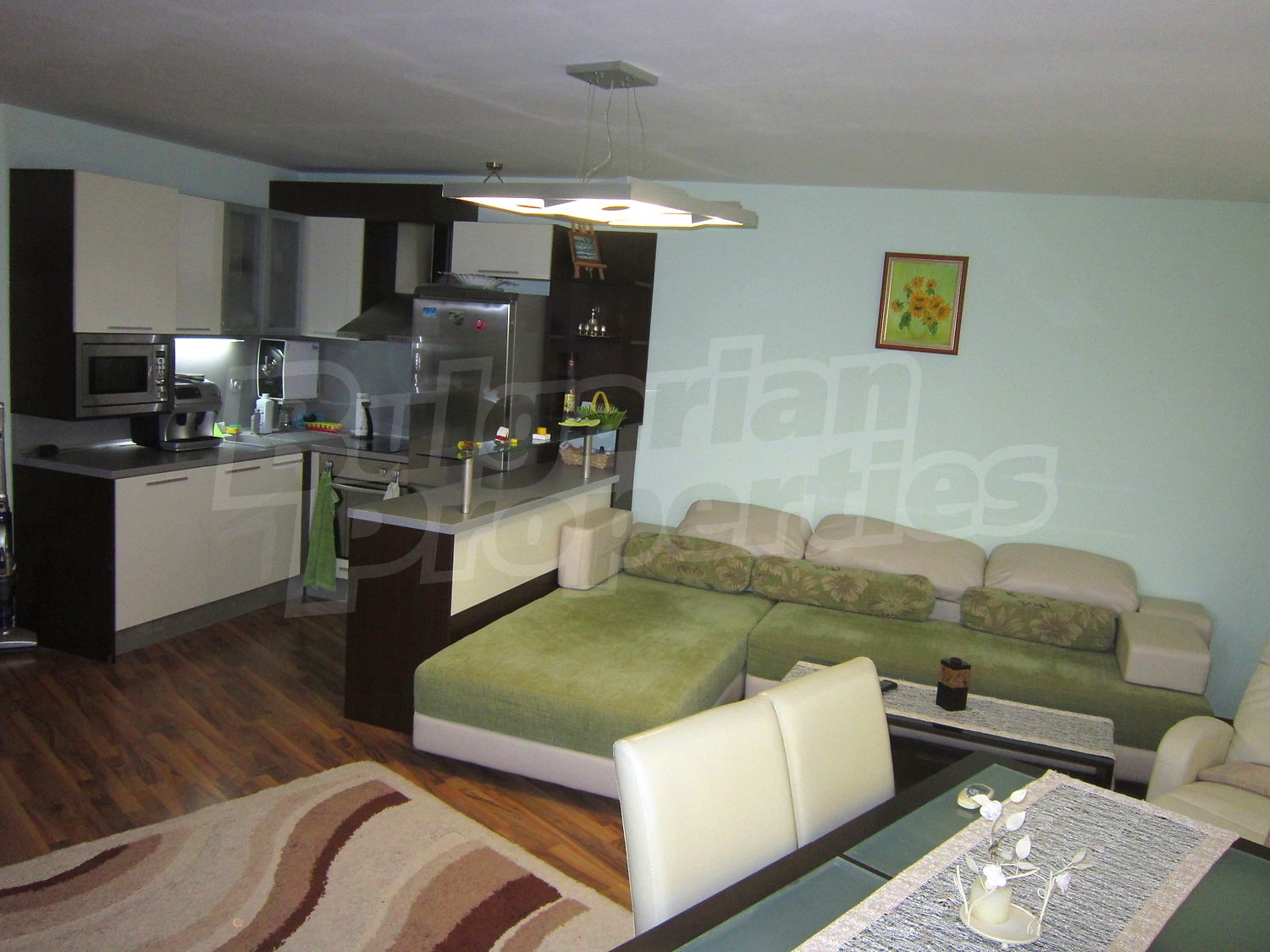 • подове - дневна и спалня качествен ламиниран паркет, тераси на гранитогрес, кухня на гранитогрес