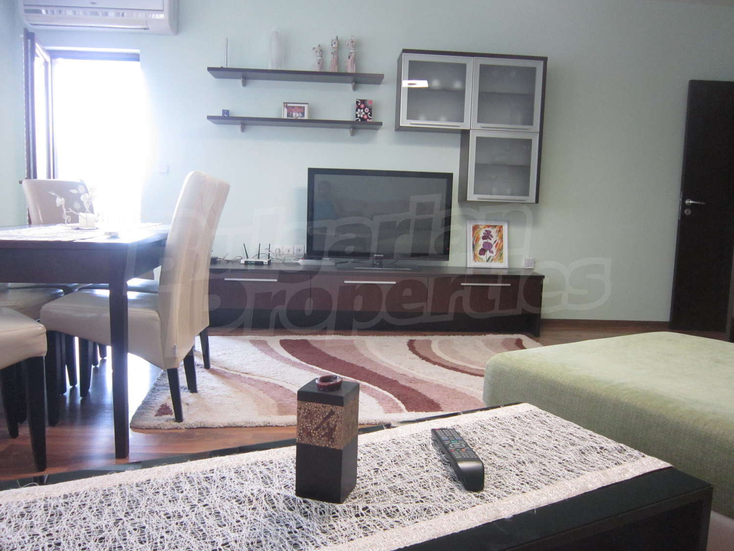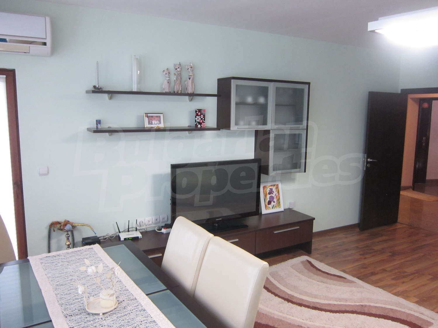 Жилището е напълно обзаведено с всичко необходимо. Кухненски бокс с кухненски шкафове и електроуреди, диван, холна масичка, голяма маса със столове, секция и телевизор. Спалня с голямо легло, гардероб, скрин и огледало. Напълно оборудвана баня с душ кабина.