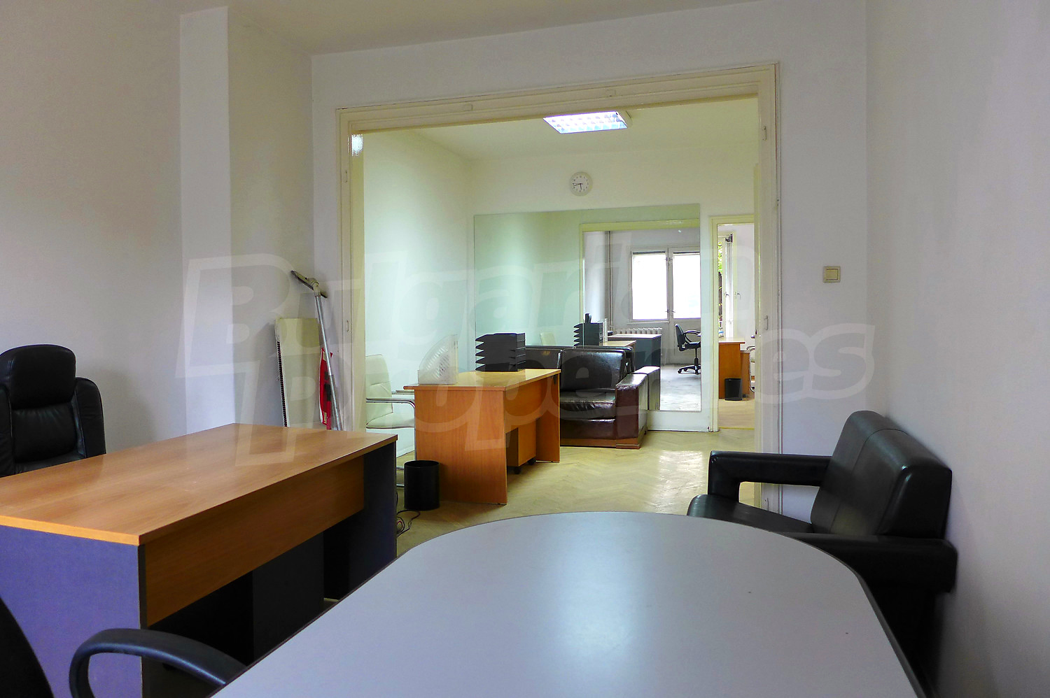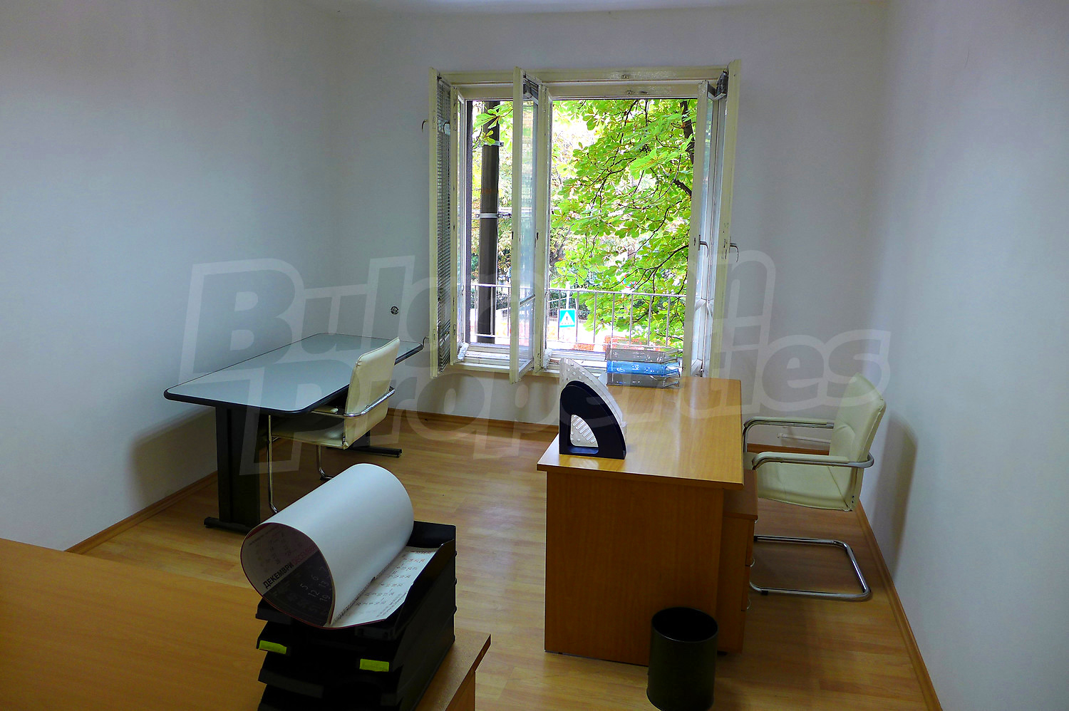 Търсите подходящо помещение за вашия бизнес? Имаме отлично предложение за обзаведен офис (тристаен апартамент) на 2/5 етаж в тухлена сграда (1960 година) в сърцето на столицата София, на бул. Патриарх Евтимий, до градинката на църква Св. Георги, на 300 м до метростанция НДК и в непосредствена близост до ежедневни удобства и услуги.