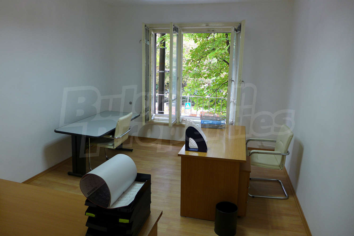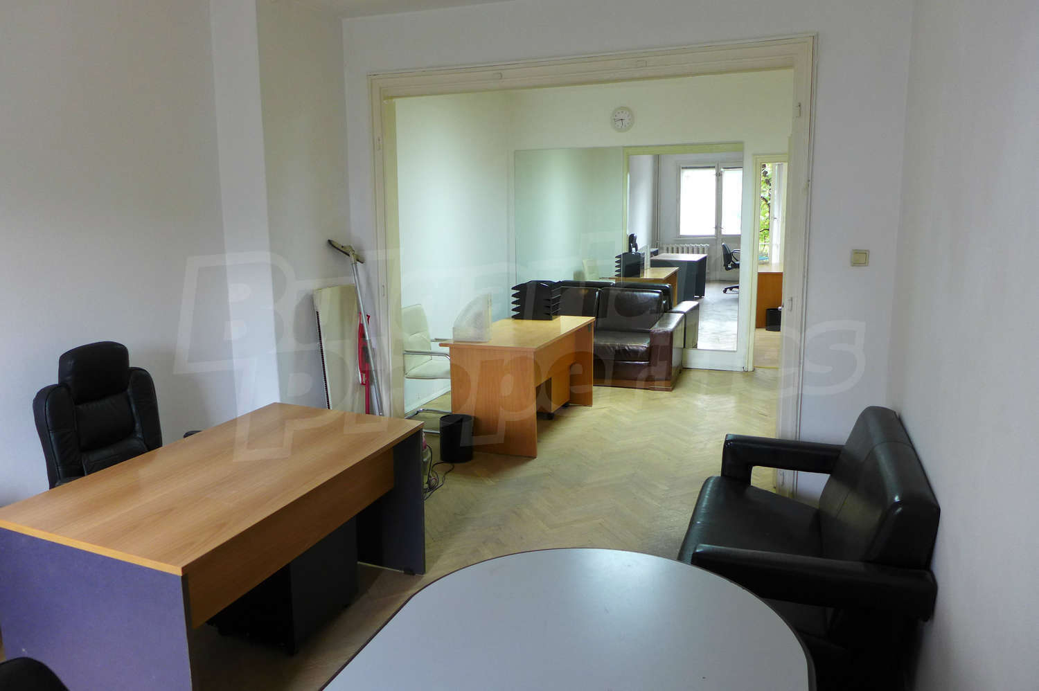 Търсите подходящо помещение за вашия бизнес? Имаме отлично предложение за обзаведен офис (тристаен апартамент) на 2/5 етаж в тухлена сграда (1960 година) в сърцето на столицата София, на бул. Патриарх Евтимий, до градинката на църква Св. Георги, на 300 м до метростанция НДК и в непосредствена близост до ежедневни удобства и услуги.
