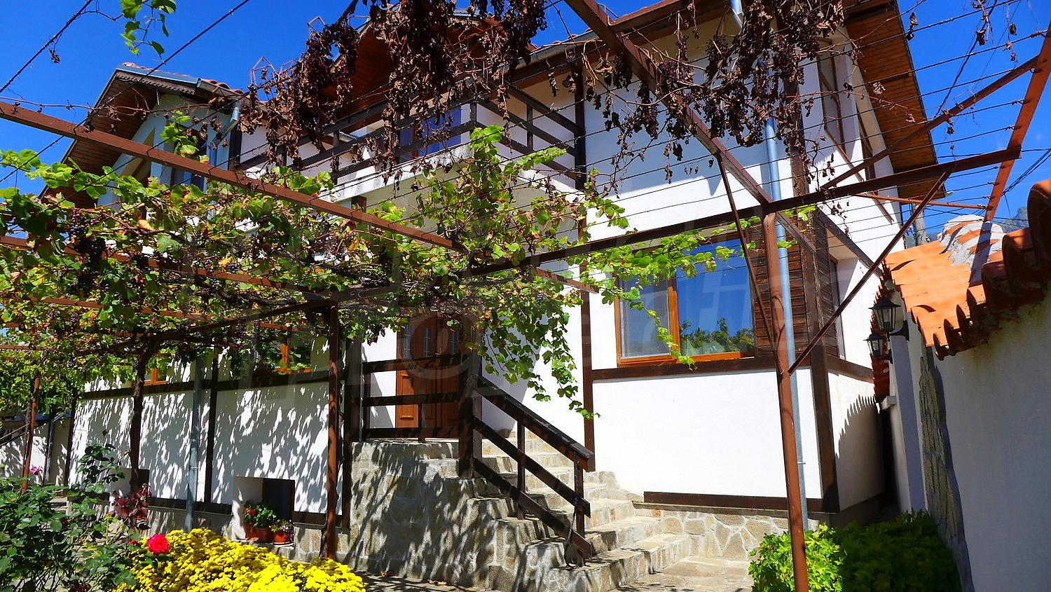 Имотът включва два броя къщи за гости с общо РЗП 411, 74 кв. м и градина 1538 кв. м.