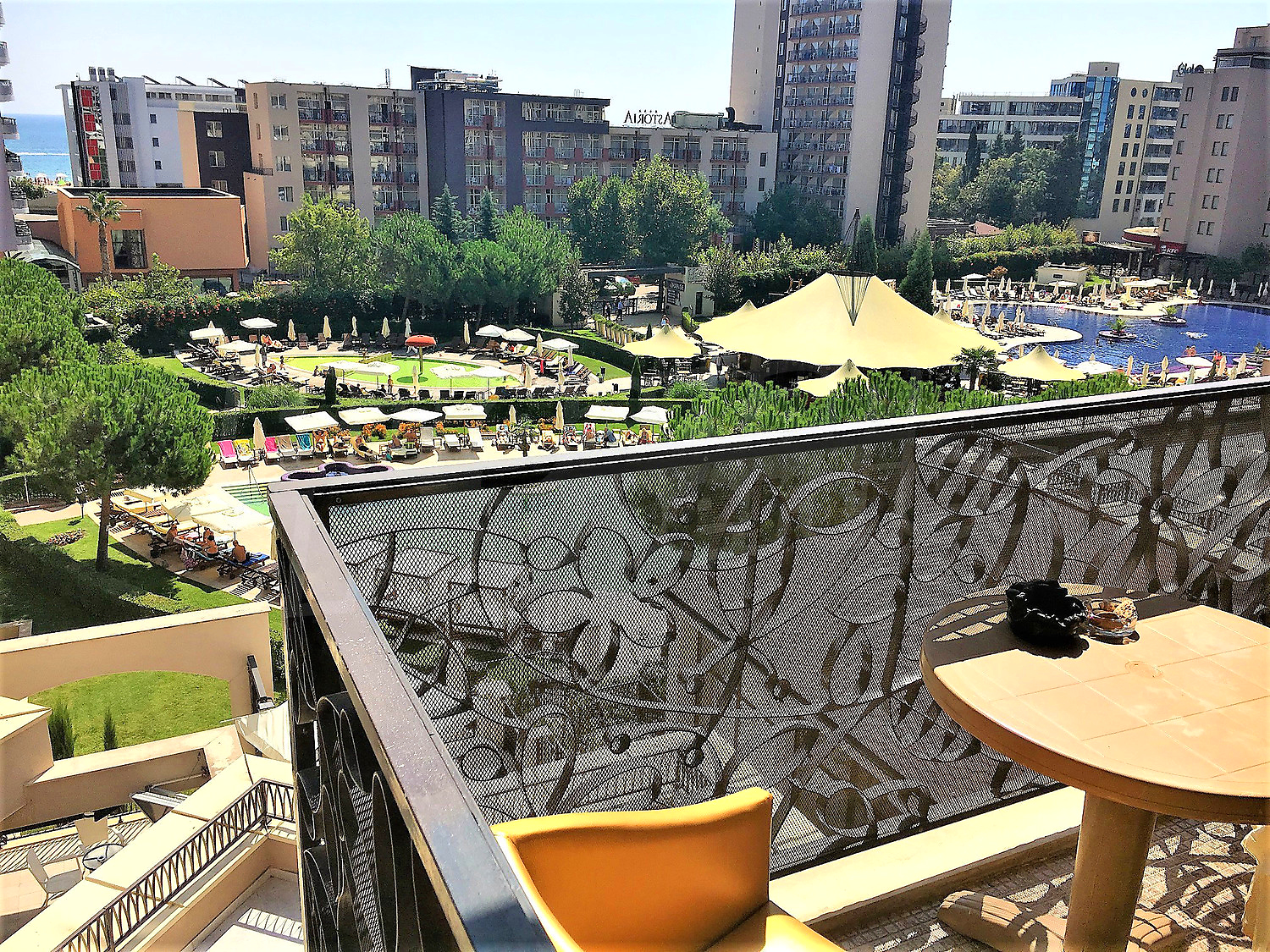 Намира се само на 100 м от плажа и разполага с градини (9000 кв.м.) и басейни (1700), които осигуряват приятно усещане на простор, свобода и носят наслада. Тук ще откриете най-модерните услуги и удобства: Интернет-клуб, Wi-Fi, магазин, POS терминал, банкомат, обмяна на валута, коли под наем, гараж, салон за красота, лекар, рум сервиз, пералня, гладене, химическо чистене, 2 сауни, тенис корт, 3 джакузи, 2 солариума, турска баня, масаж.