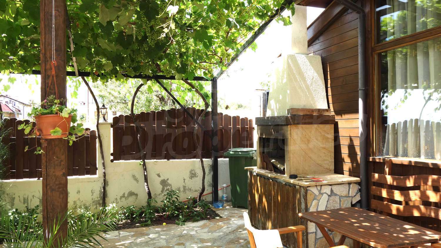 • Първи етаж - кухня, дневна с камина, тоалетна, склад, веранда с подвижна тента