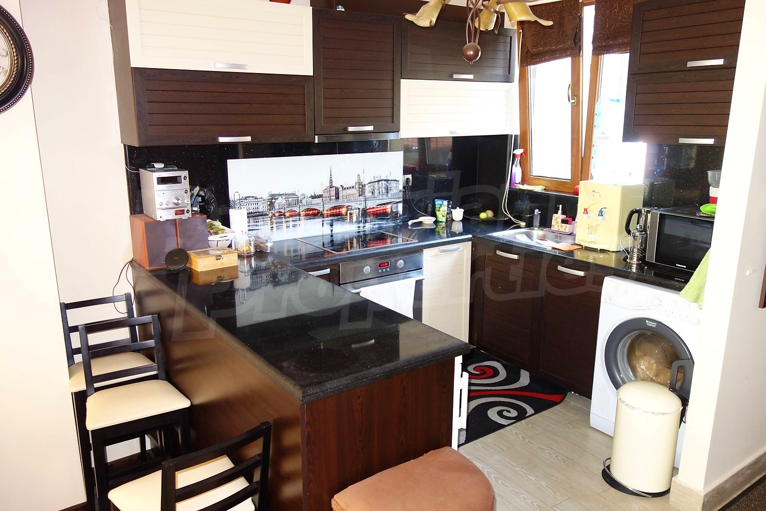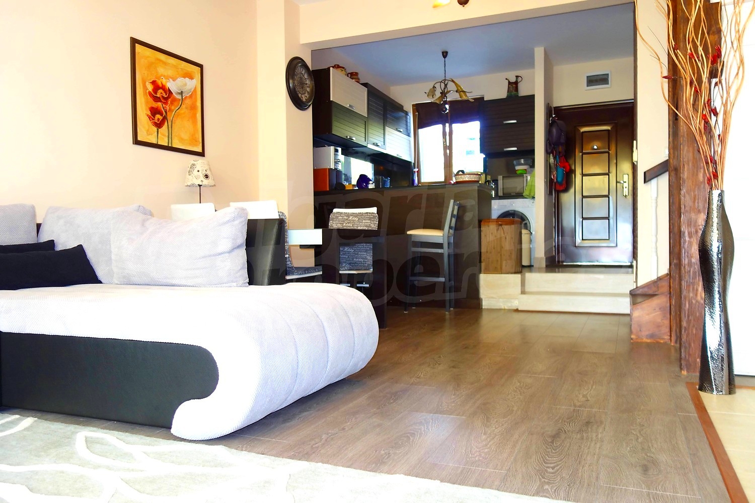 Имотът се продава изцяло обзаведен. Кухненски бокс с необходимите електроуреди, маса за хранене със столове, мека мебел, телевизор. Три обзаведени спални и напълно оборудвани бани.