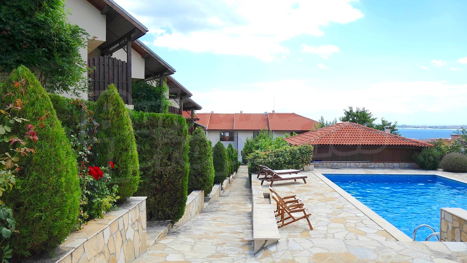 Къщата е разположена във вилна зона „ Инцараки" - Свети Влас, на около 900 м. от плажа; разстоянието до к.к. Слънчев бряг е около 1 км., до летище Бургас е 35 км. Районът е известен с уникалното съчетание на морски и планински въздух, а от имота се разкрива невероятна гледка към морето.