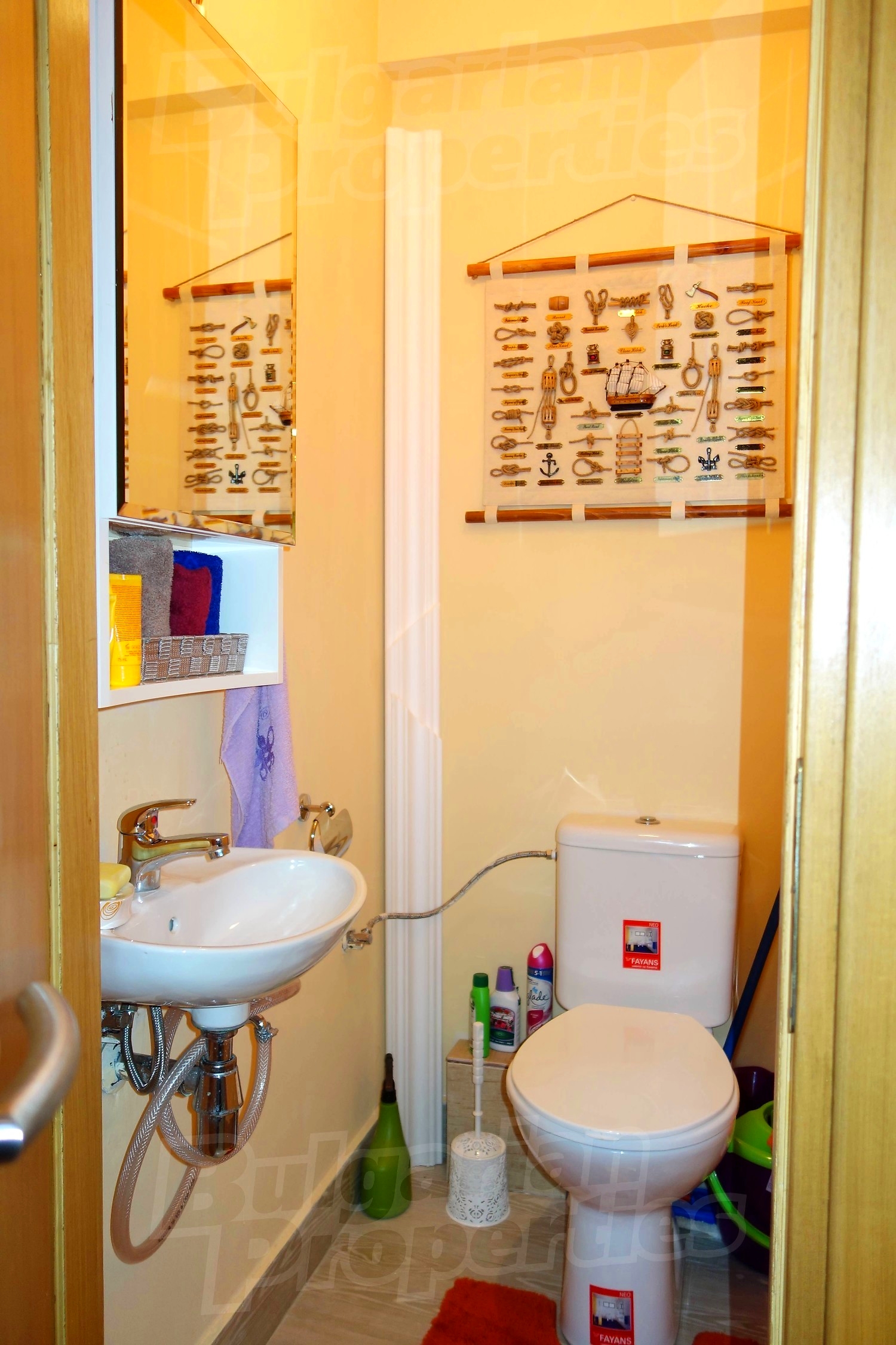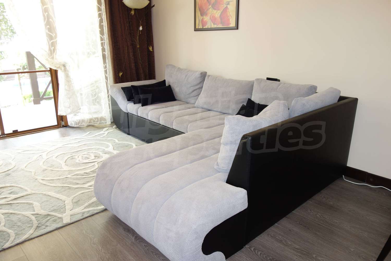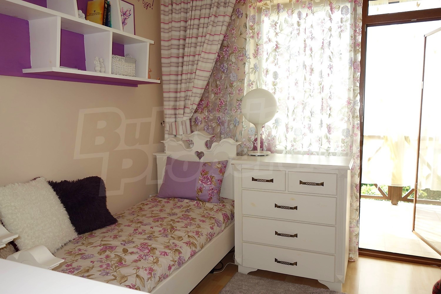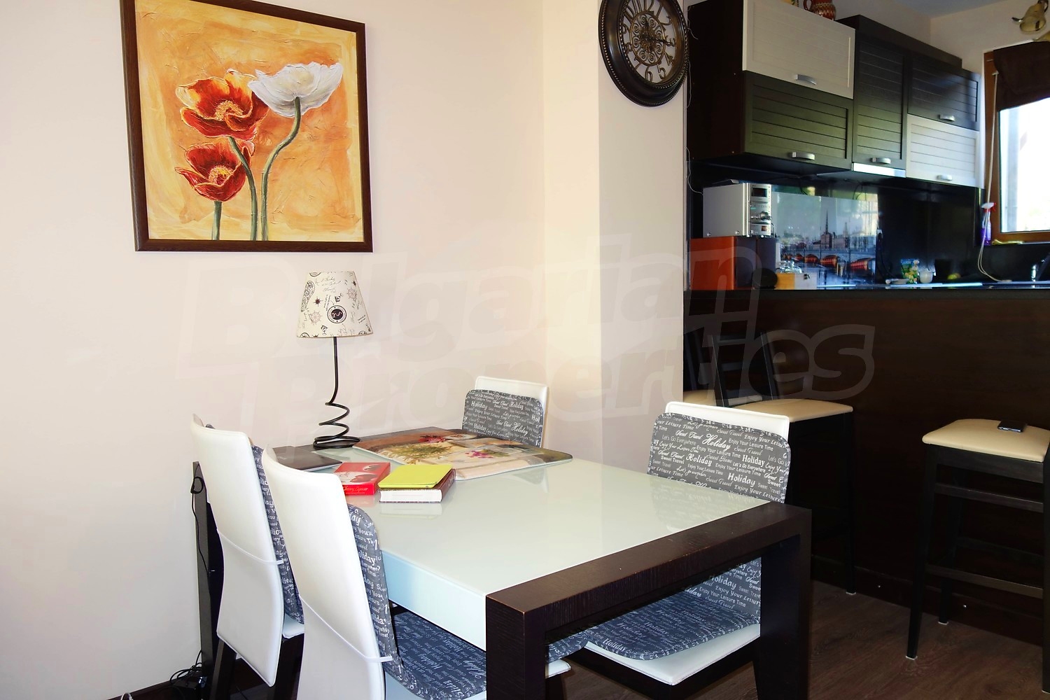 Имотът се продава изцяло обзаведен. Кухненски бокс с необходимите електроуреди, маса за хранене със столове, мека мебел, телевизор. Три обзаведени спални и напълно оборудвани бани.