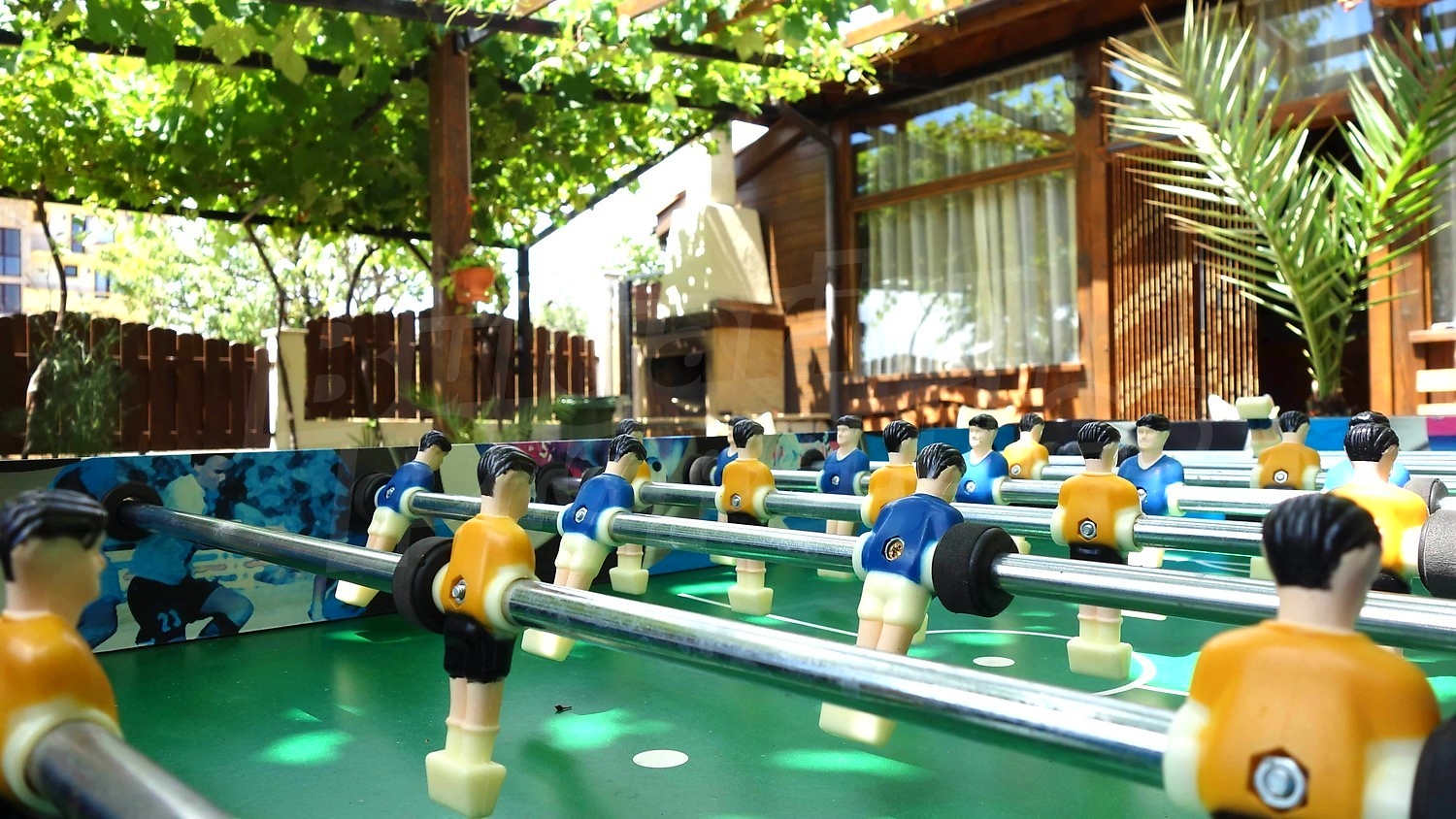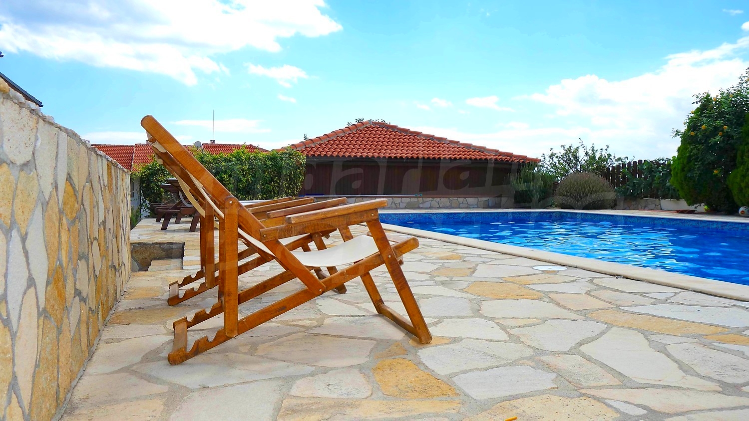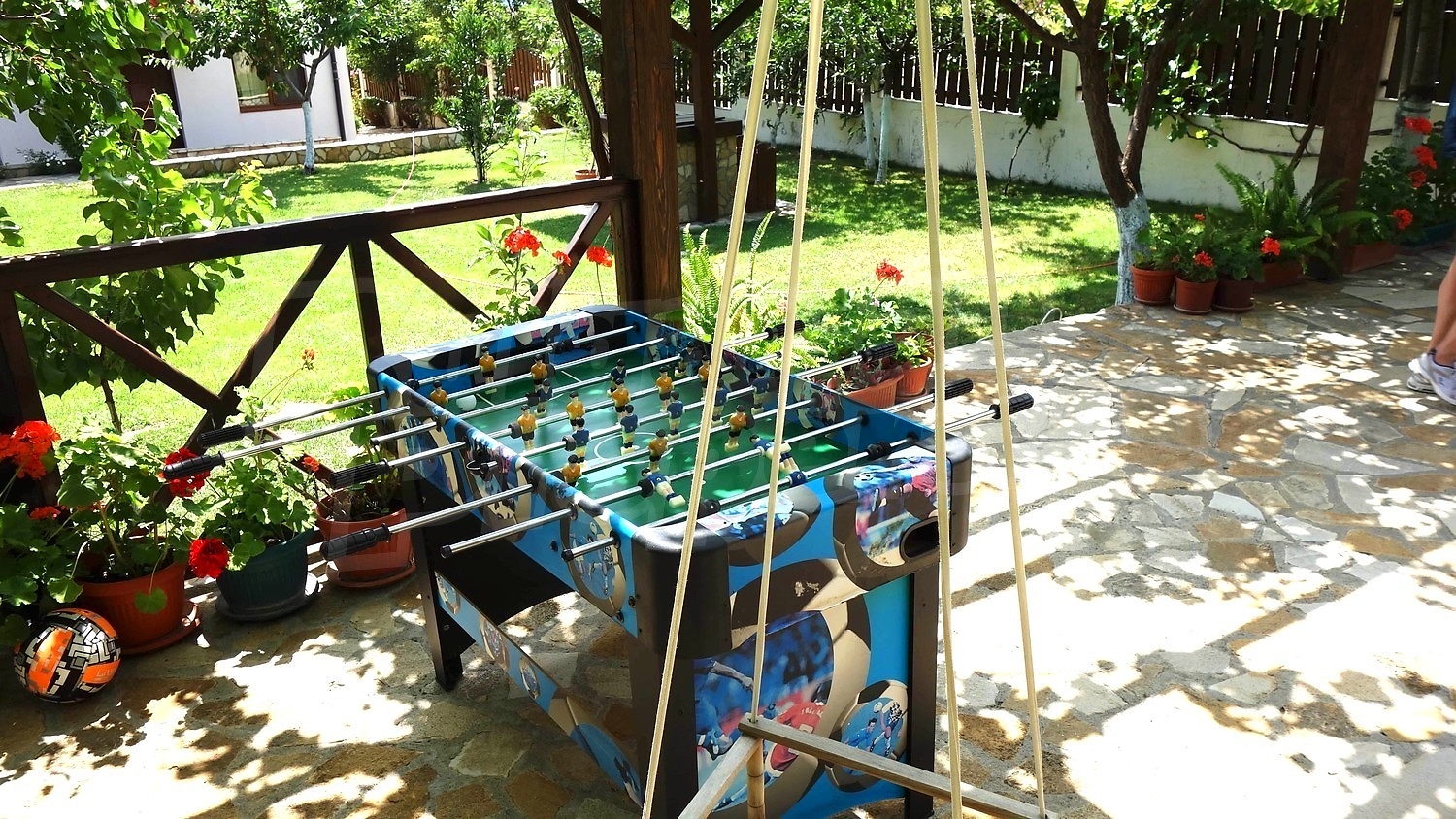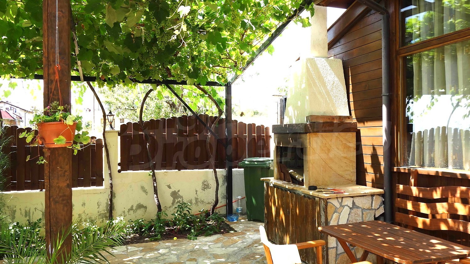 • Първи етаж - кухня, дневна с камина, тоалетна, склад, веранда с подвижна тента