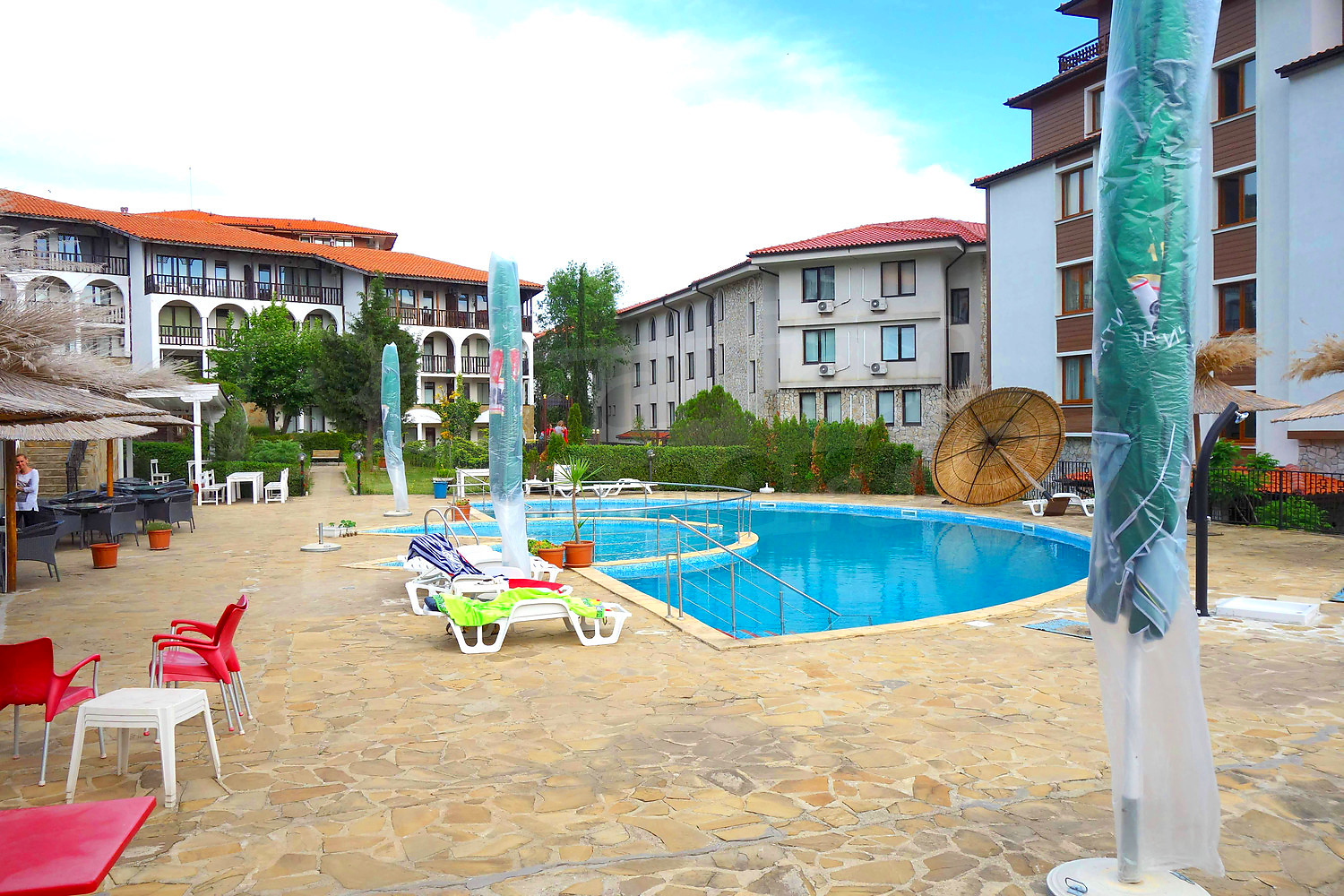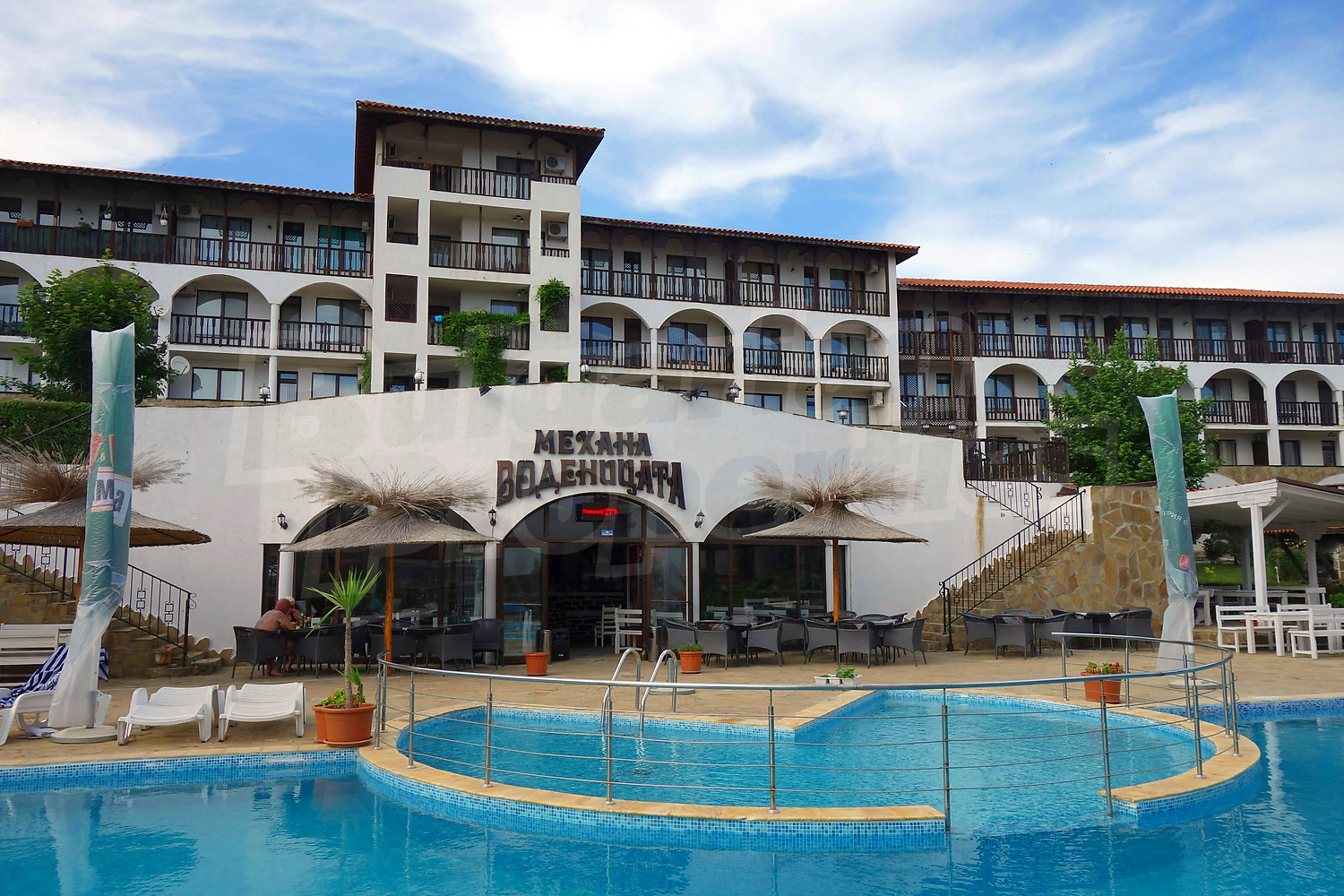 В центъра на комплекса е разположена действаща воденица. Комплексът предлага открит басейн, тенис корт, градина, ресторант, бар, детски басейн и детски кът, паркинг, водни спортове, фитнес салон.