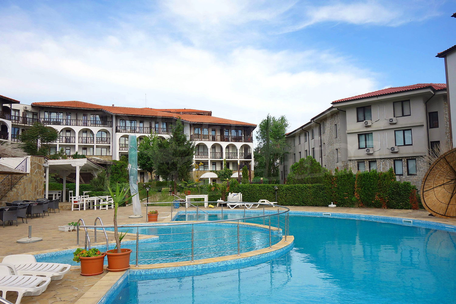 В центъра на комплекса е разположена действаща воденица. Комплексът предлага открит басейн, тенис корт, градина, ресторант, бар, детски басейн и детски кът, паркинг, водни спортове, фитнес салон.