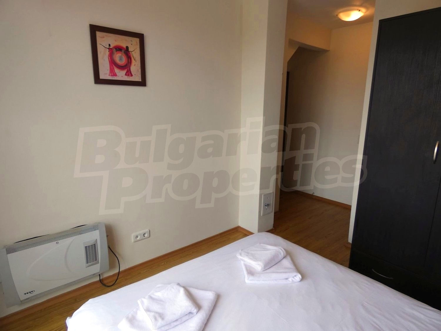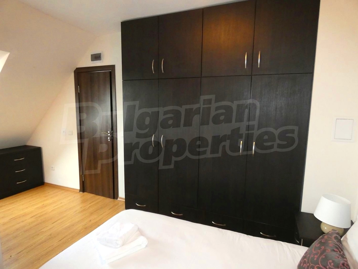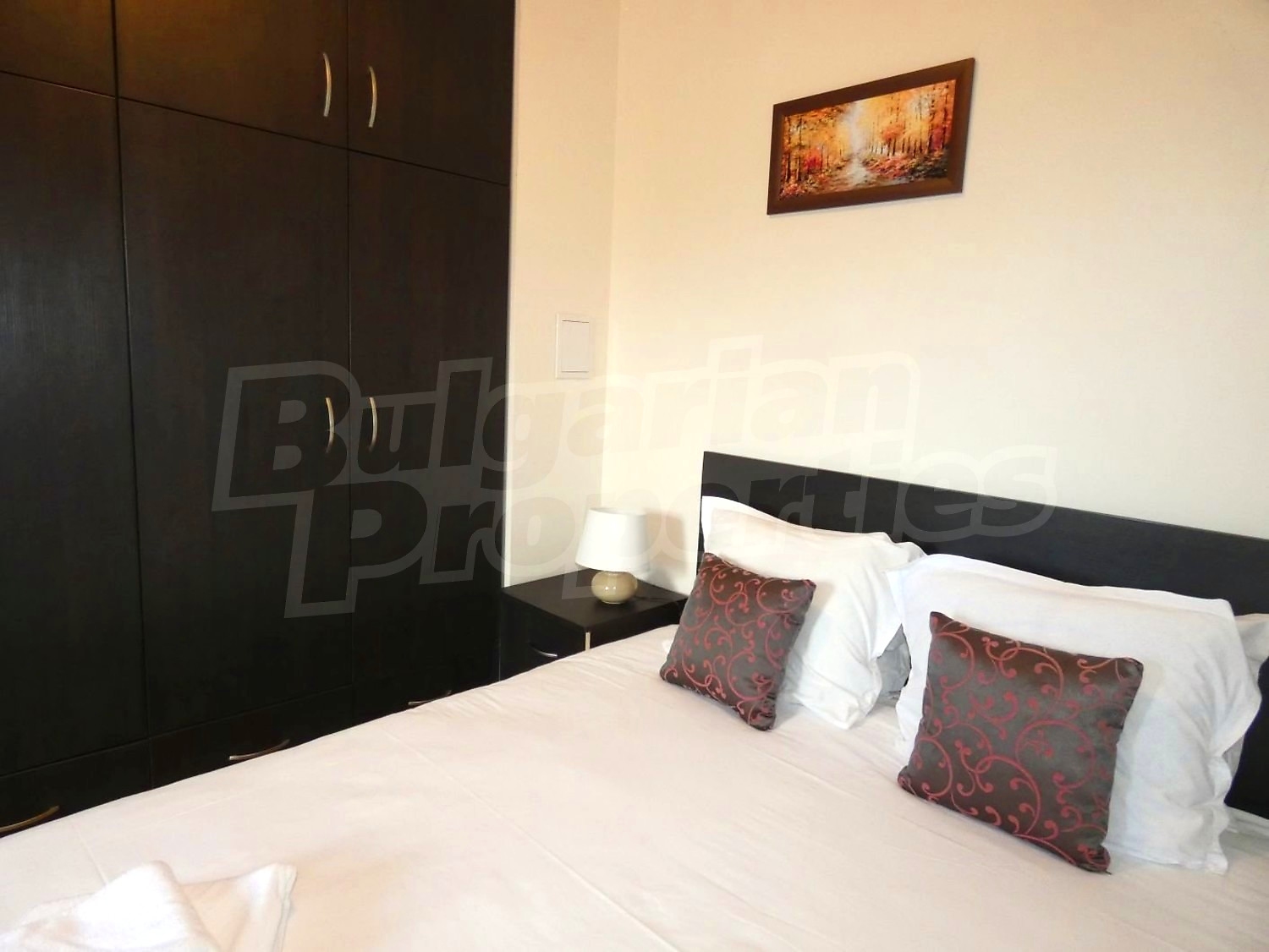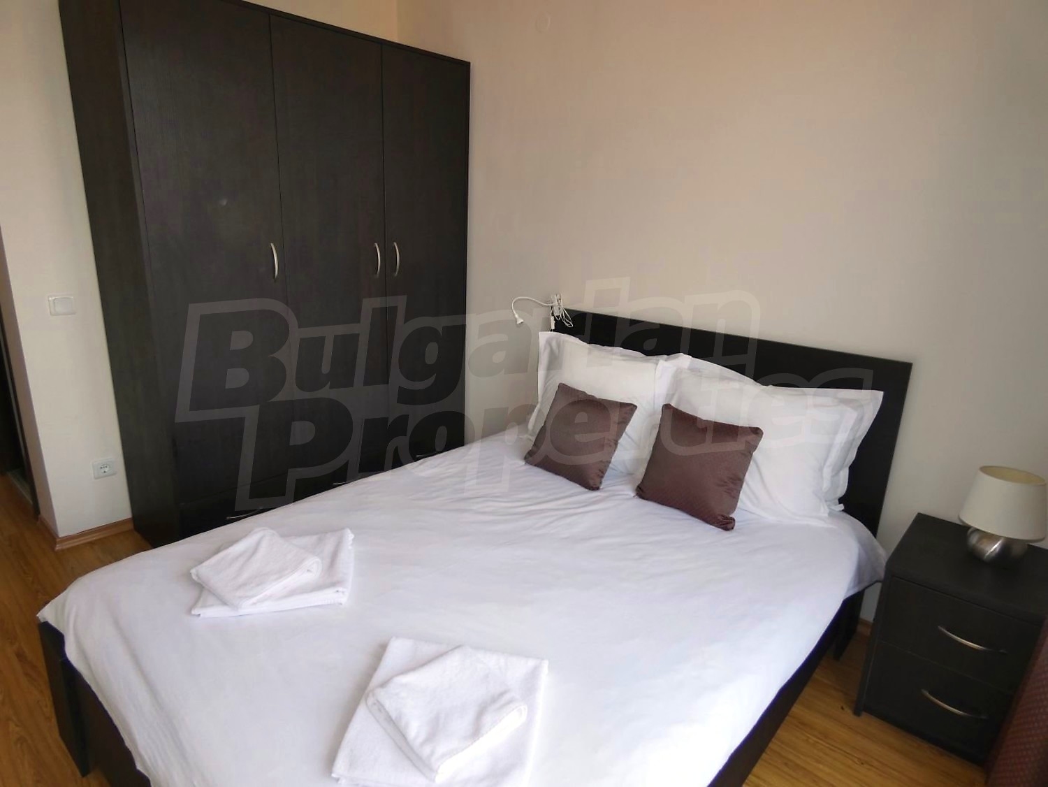 • СПАЛНЯ 1: двойно легло,2 нощни шкафчета с нощни лампи, гардероб