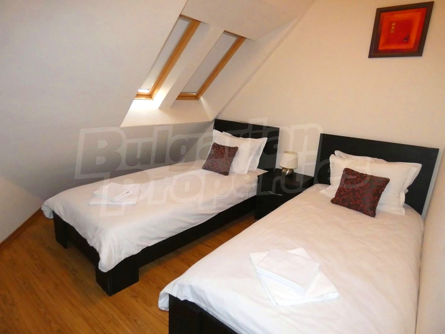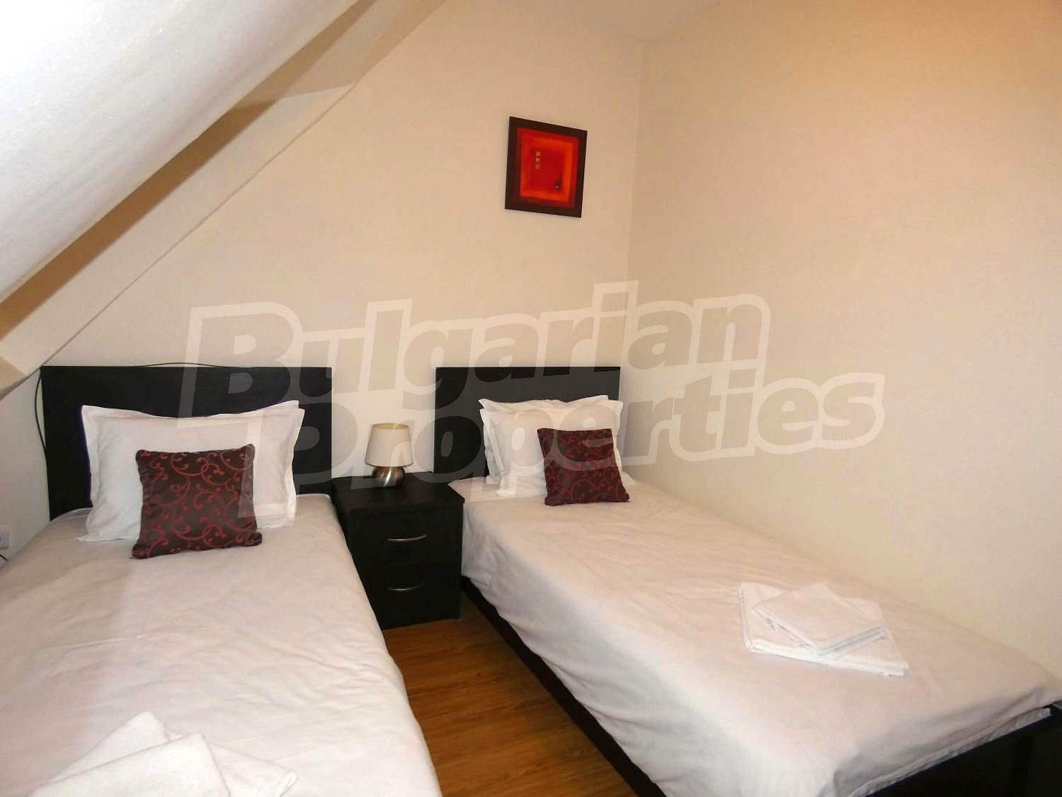 • СПАЛНЯ 2: две легла,2 нощни шкафчета с нощни лампи, гардероб