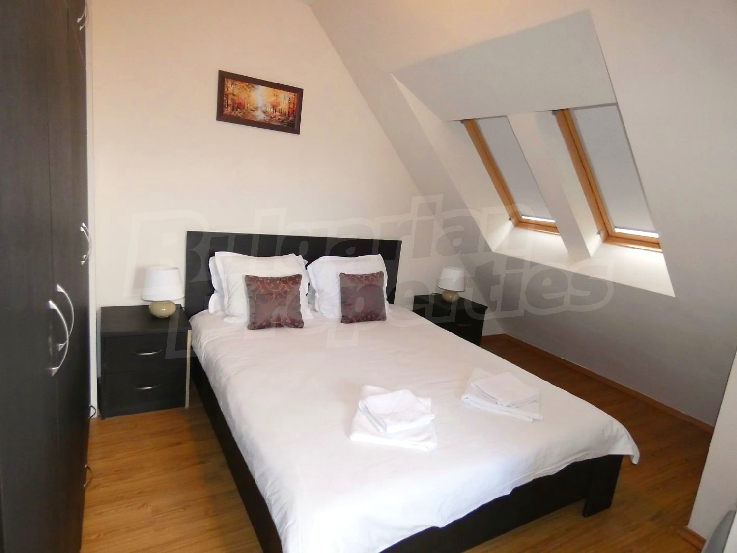 • СПАЛНЯ 3: двойно легло,2 нощни шкафчета с нощни лампи, гардероб и скрин