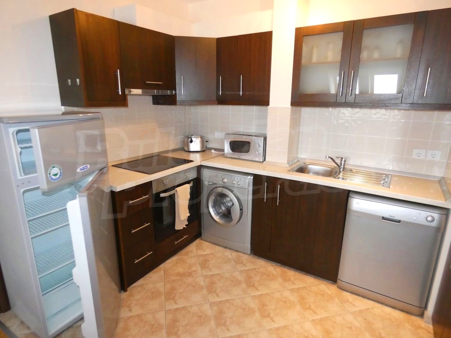 Апартаментът е завършен с подови настилки ламинати теракот, стените са боядисани с латекс, дограмата е PVC. Отоплението е подсигурено от електрически конвектори. Жилището разполага с интернет и кабелна телевизия.