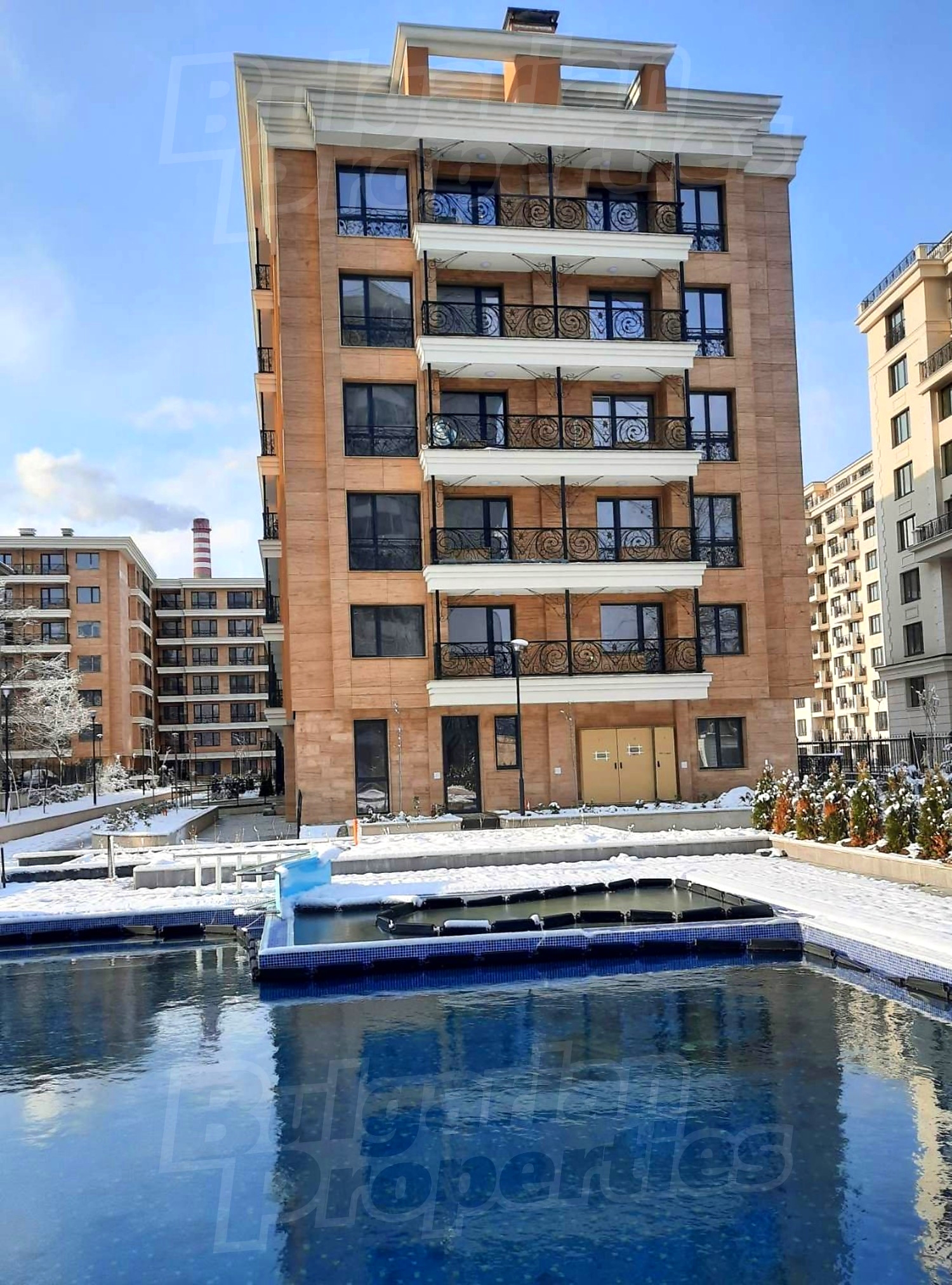 Комплексът е разположен в самостоятелен имот с площ 7040 кв.м. и се състои от 142 апартамента, 5 ателиета, 7 студия. Общ брой на местата за гариране в подземния гараж в имота - 161. В югоизточната част е разположен басейн за възрастни и деца.