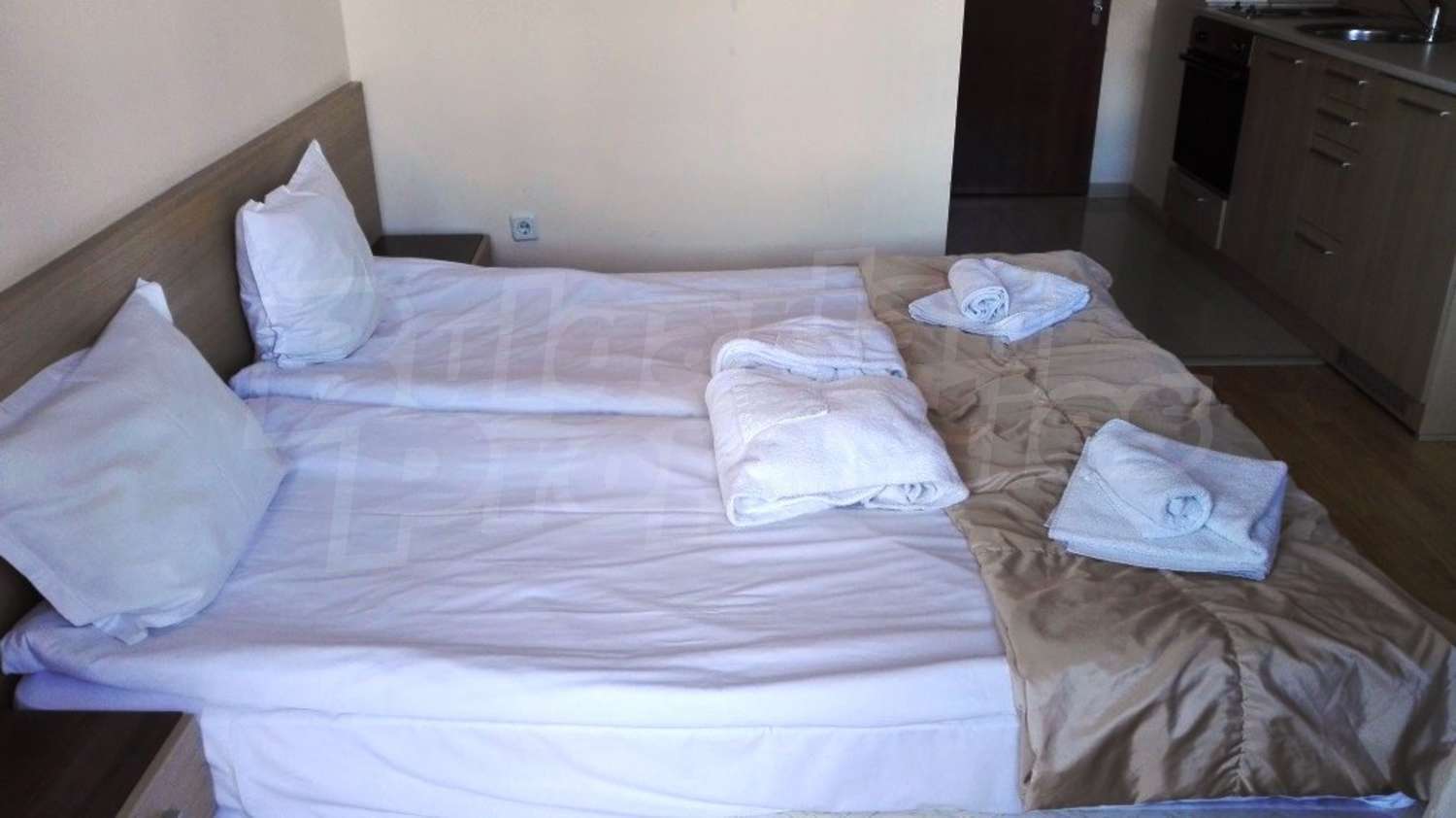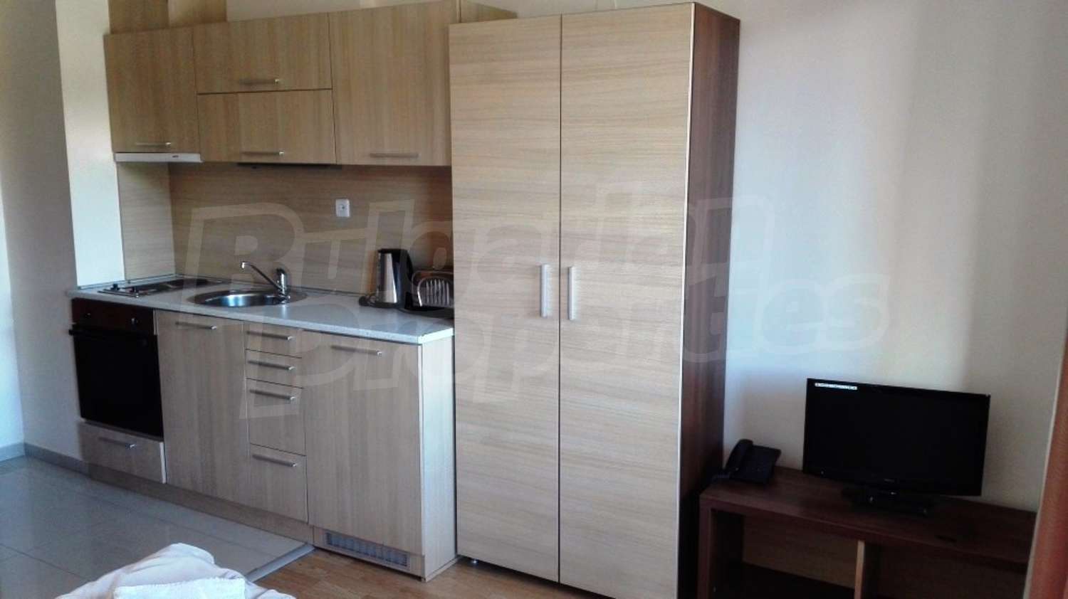 Имотът се предлага за продажба напълно обзаведен. Кухня с кухненски шкафове, абсорбатор, хладилник, мивка, печка. Обособен спален кът с две единични легла с нощни шкафчета, гардероб, телевизор. Банята е оборудвана с душ-кабина, мивка с огледало и тоалетна.