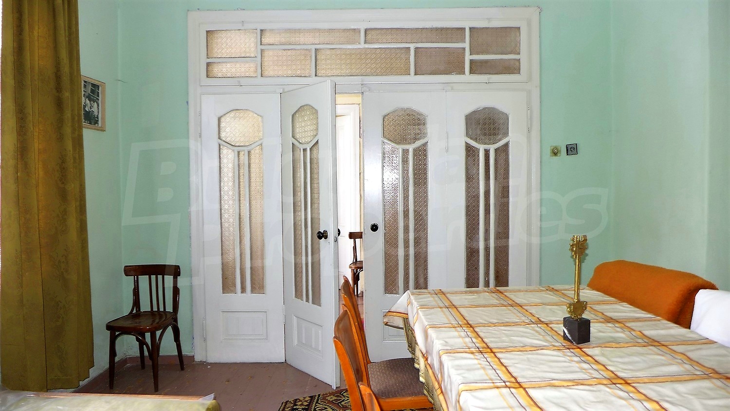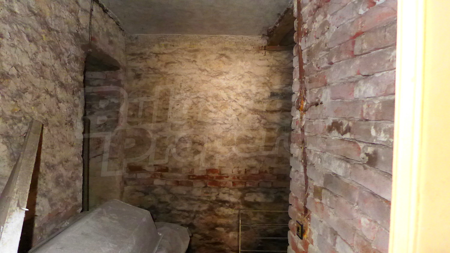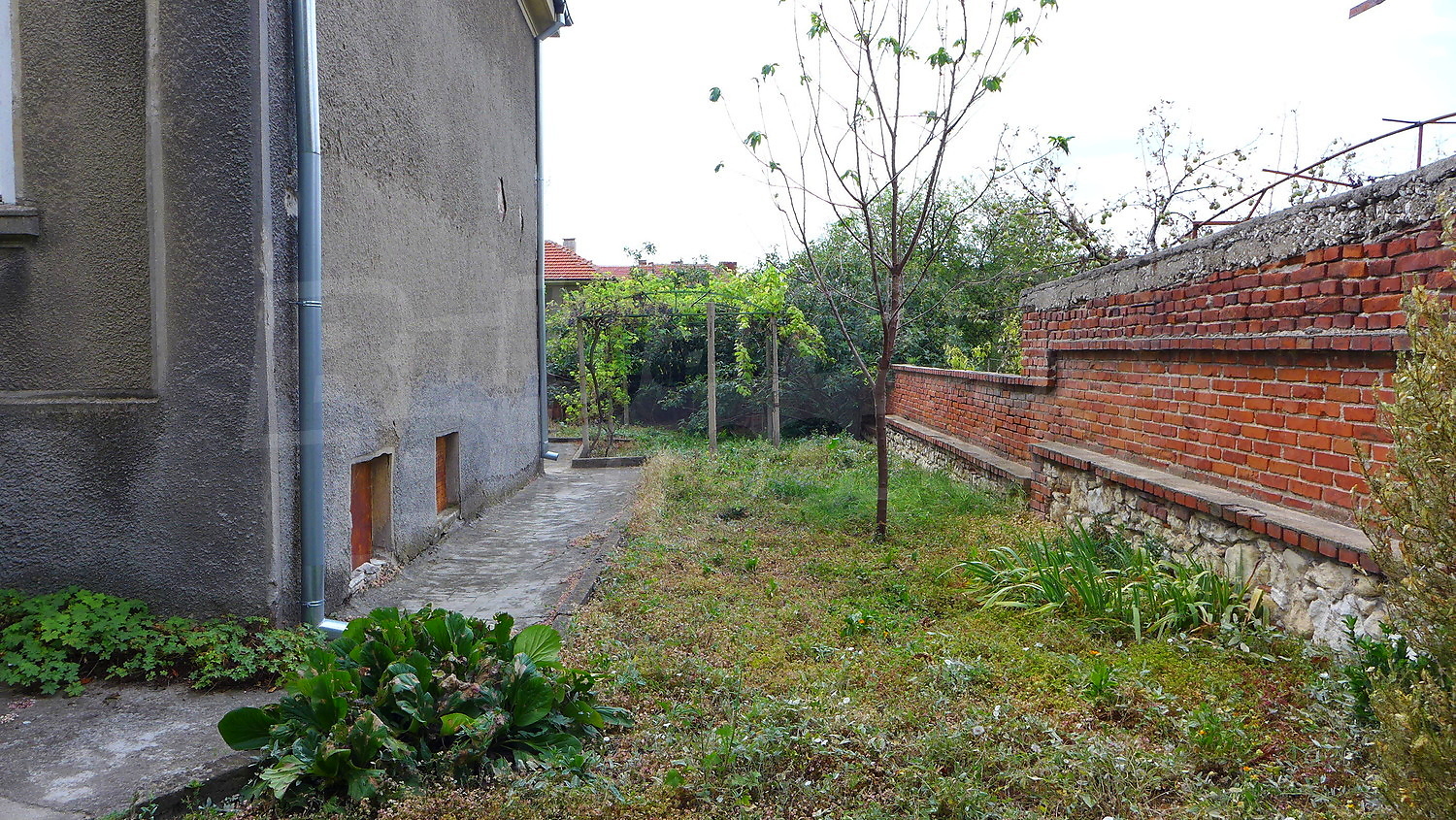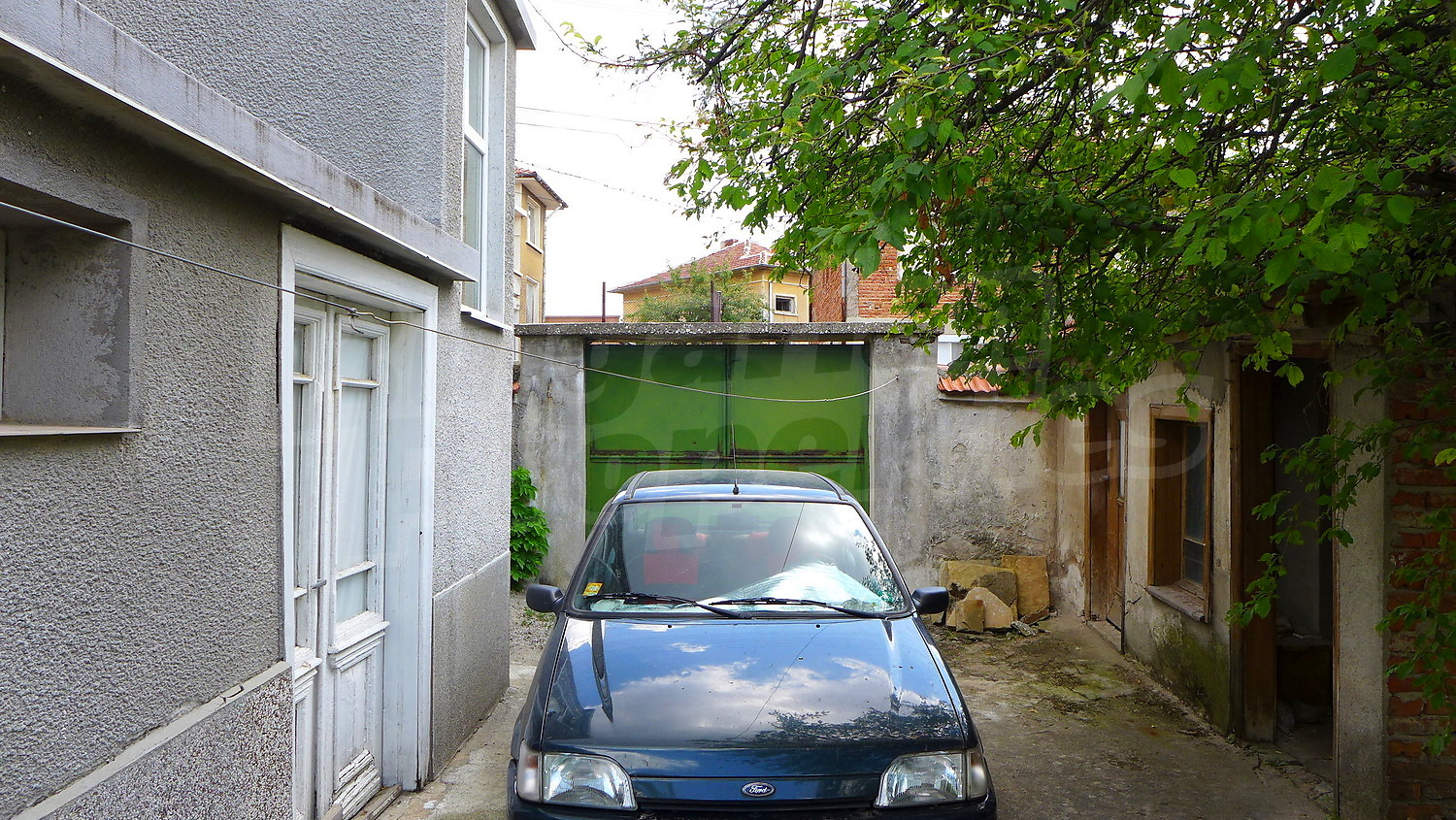 Представяме на Вашето внимание къща, разположена в централната част на малък град, разположен в централната част на България с ЗП 86 кв.м и РЗП 200 кв.м. с изложение юг, изток, запад и двор 457 кв.м. Жилищната площ е разпределена между сутерен, който включва няколко помещения използвани като склад, жилищен етаж с два отделни входа, водещи към коридор, хол, кухня с трапезария, две спални, баня с тоалетна. Вътрешно стълбище води към втория етаж, който е голям таван. Имотът се предлага със следната степен на завършеност: дървена дограма, масивни стени от камък и тухла, дюшеме, свързан към електроснабдяването, водопроода и канализацията на града. Имотът граничи с две улици, към едната от които има вход към паркинга в двора.