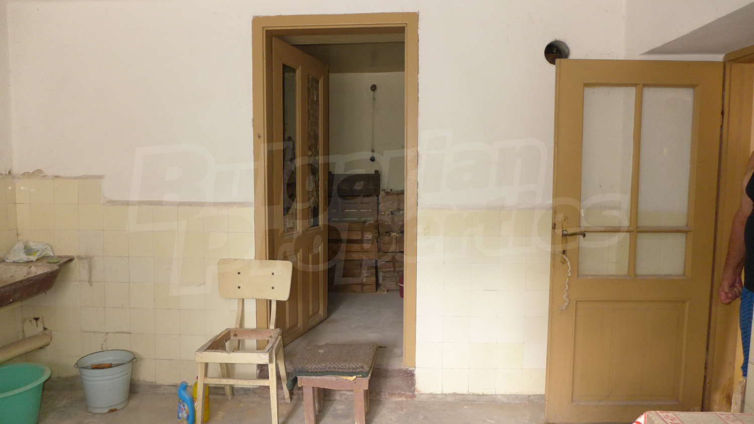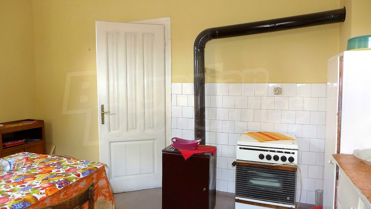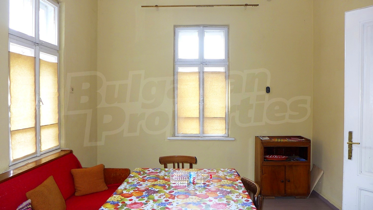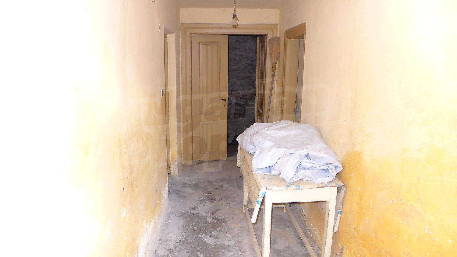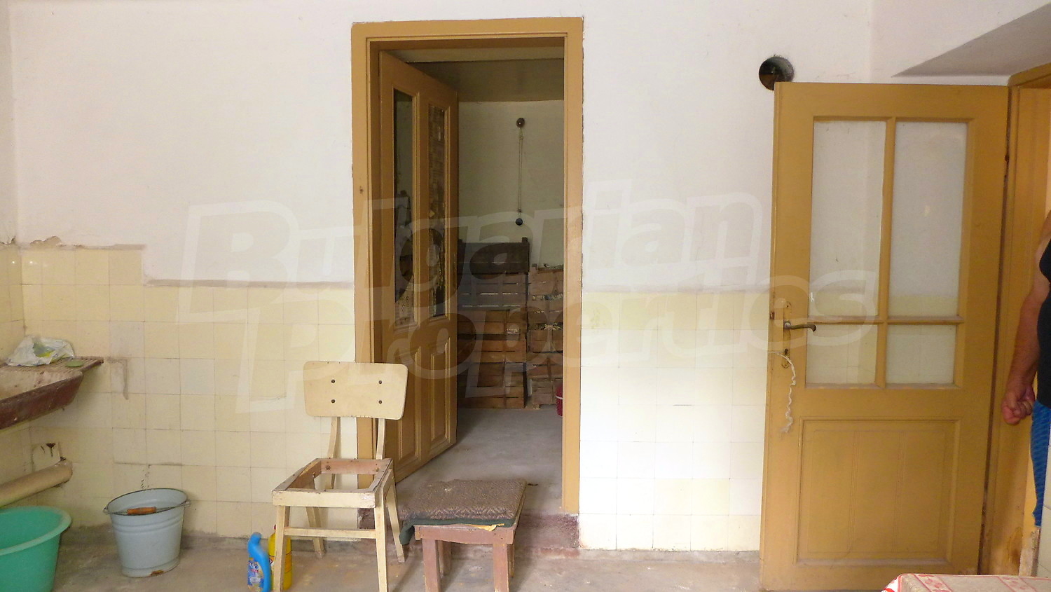 Представяме на Вашето внимание къща, разположена в централната част на малък град, разположен в централната част на България с ЗП 86 кв.м и РЗП 200 кв.м. с изложение юг, изток, запад и двор 457 кв.м. Жилищната площ е разпределена между сутерен, който включва няколко помещения използвани като склад, жилищен етаж с два отделни входа, водещи към коридор, хол, кухня с трапезария, две спални, баня с тоалетна. Вътрешно стълбище води към втория етаж, който е голям таван. Имотът се предлага със следната степен на завършеност: дървена дограма, масивни стени от камък и тухла, дюшеме, свързан към електроснабдяването, водопроода и канализацията на града. Имотът граничи с две улици, към едната от които има вход към паркинга в двора.
