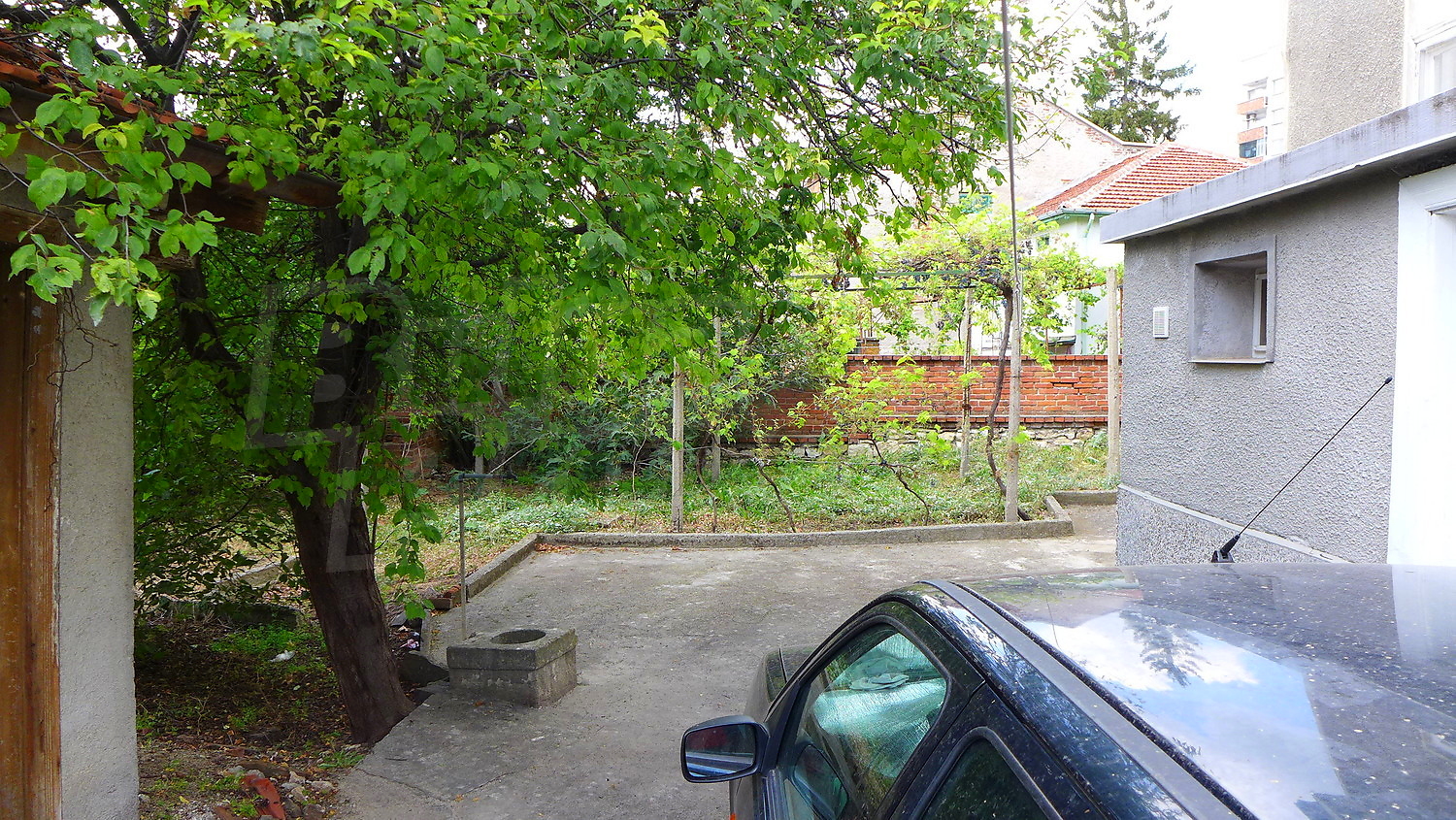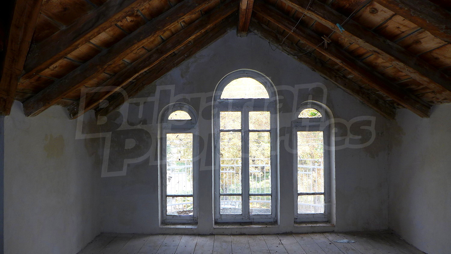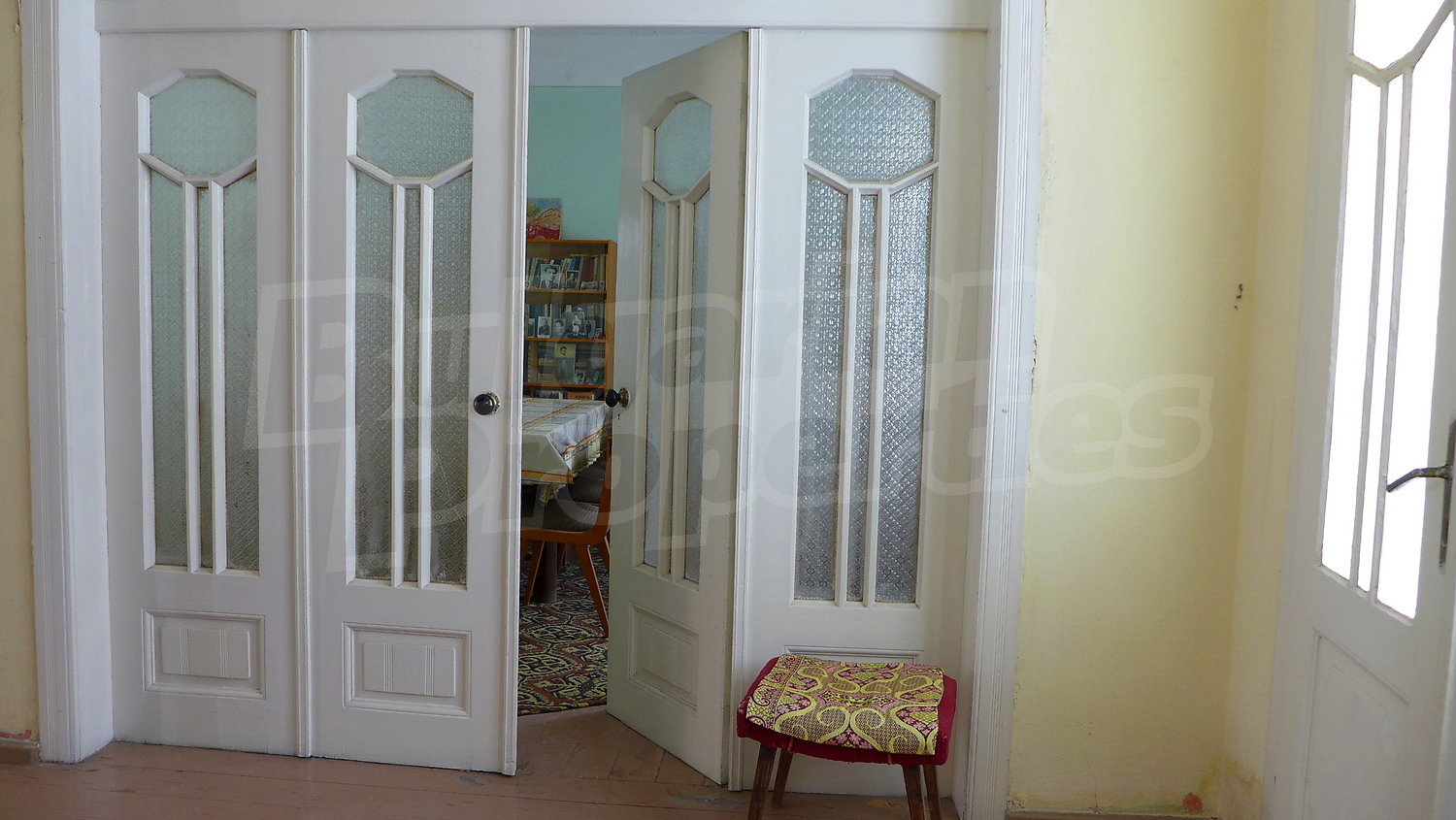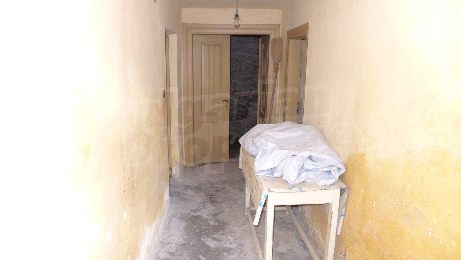 Представяме на Вашето внимание къща, разположена в централната част на малък град, разположен в централната част на България с ЗП 86 кв.м и РЗП 200 кв.м. с изложение юг, изток, запад и двор 457 кв.м. Жилищната площ е разпределена между сутерен, който включва няколко помещения използвани като склад, жилищен етаж с два отделни входа, водещи към коридор, хол, кухня с трапезария, две спални, баня с тоалетна. Вътрешно стълбище води към втория етаж, който е голям таван. Имотът се предлага със следната степен на завършеност: дървена дограма, масивни стени от камък и тухла, дюшеме, свързан към електроснабдяването, водопроода и канализацията на града. Имотът граничи с две улици, към едната от които има вход към паркинга в двора.