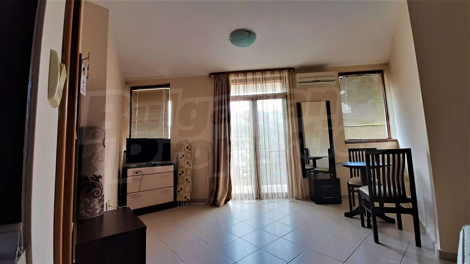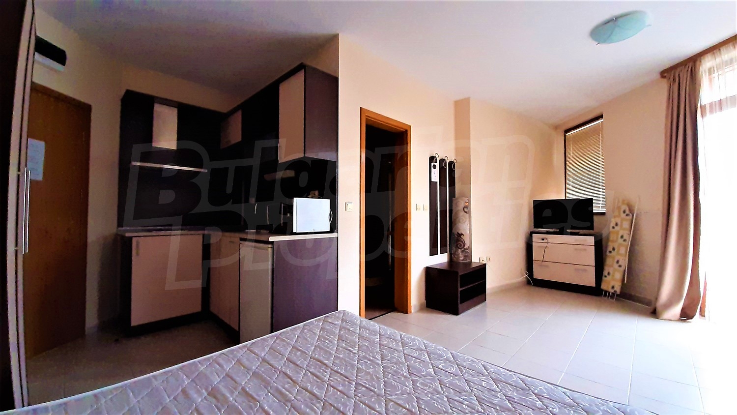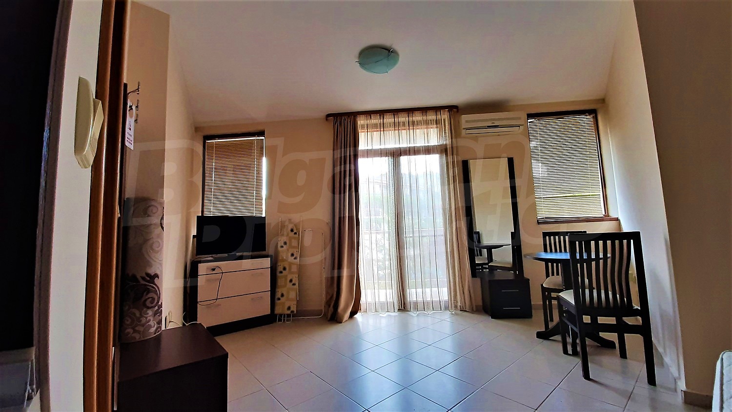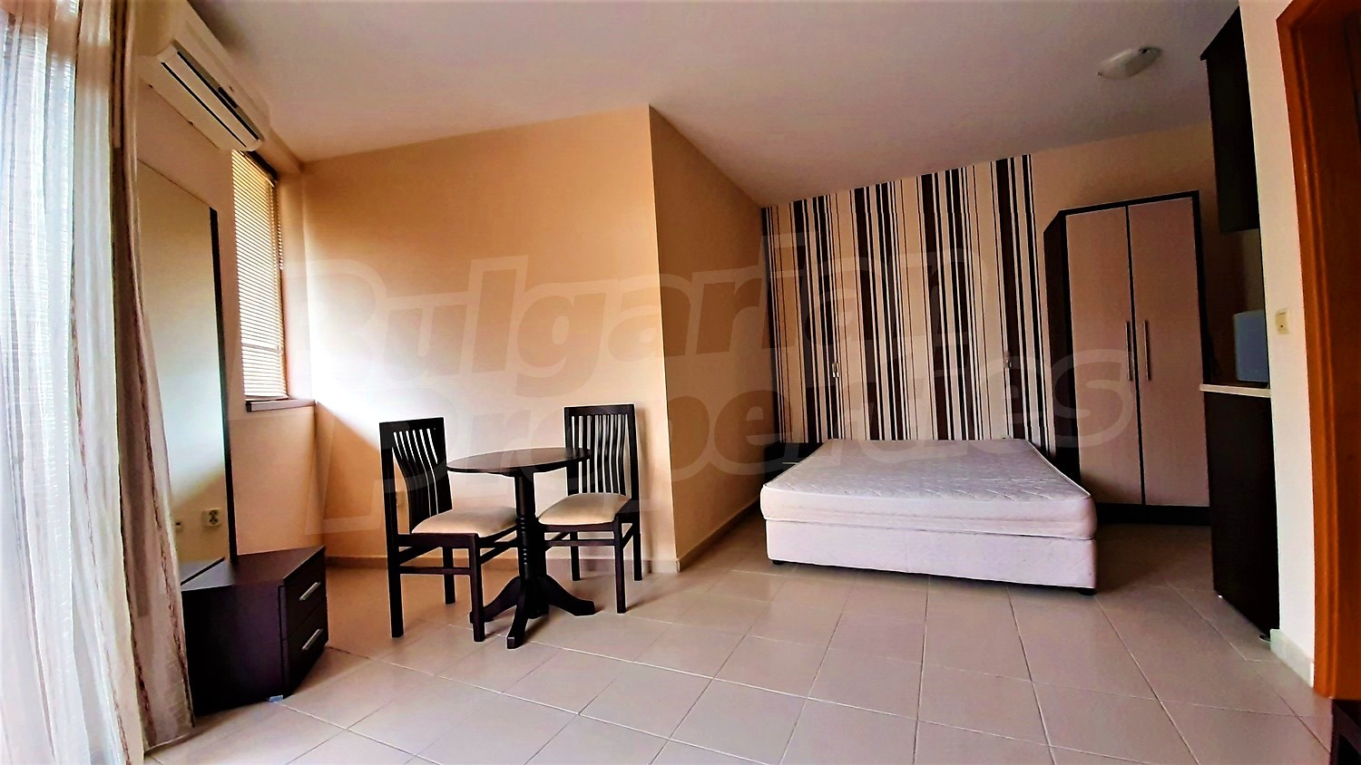Готово за нанасяне студио в затворен комплекс „Лагуна Бийч“, на първа линия от плаж Златна Рибка (50 м), на 3 км от града, на главния път Бургас-Созопол, срещу отбивката за Созопол.