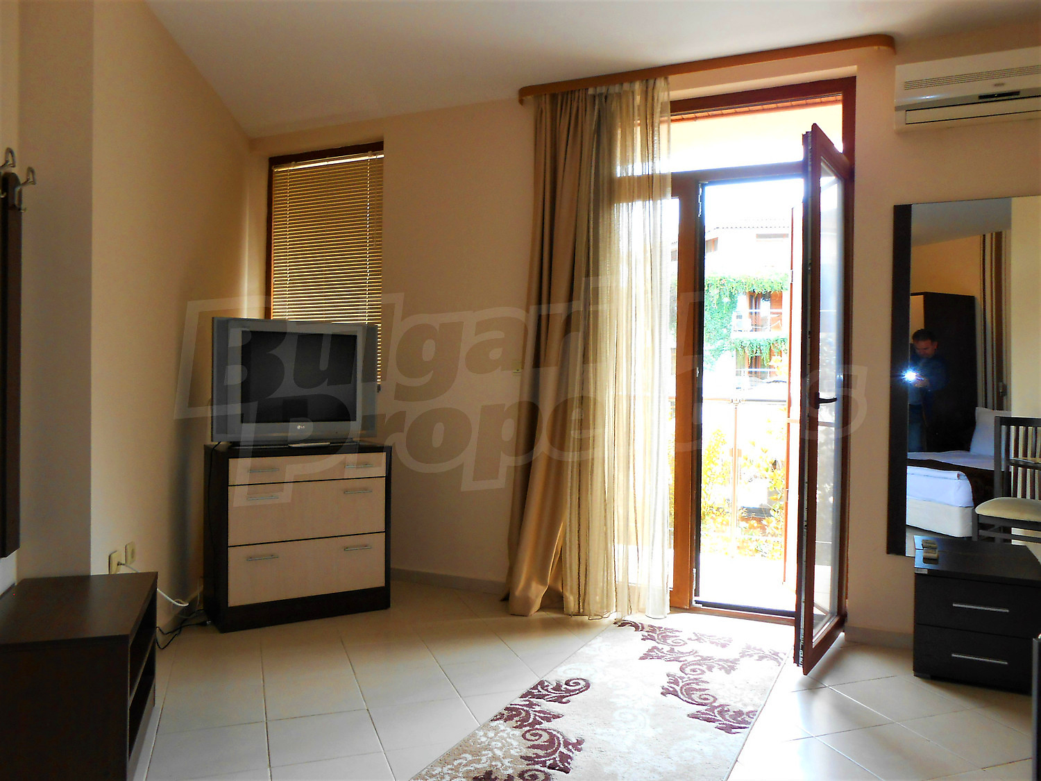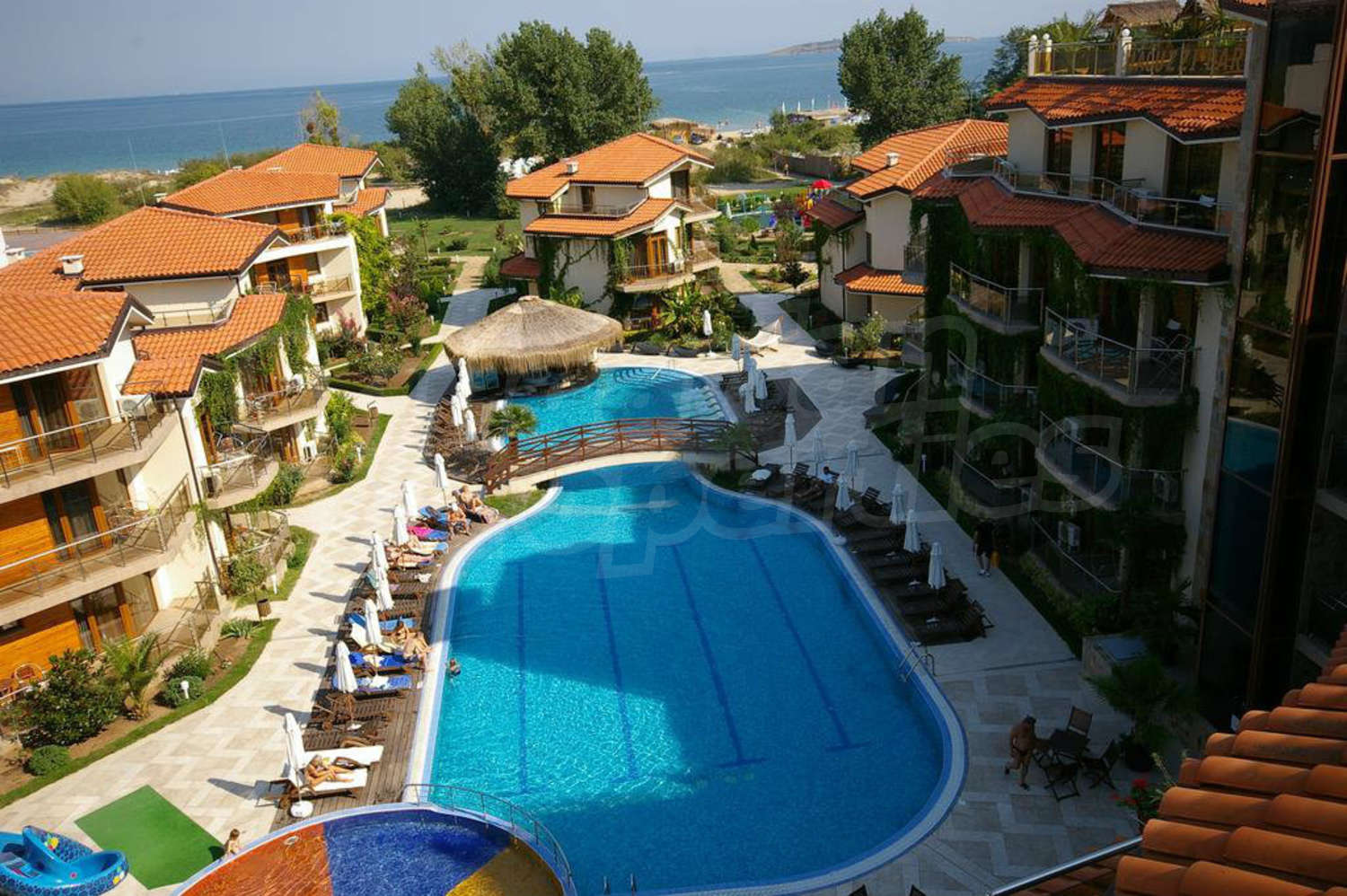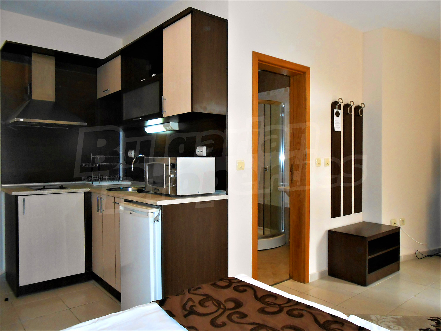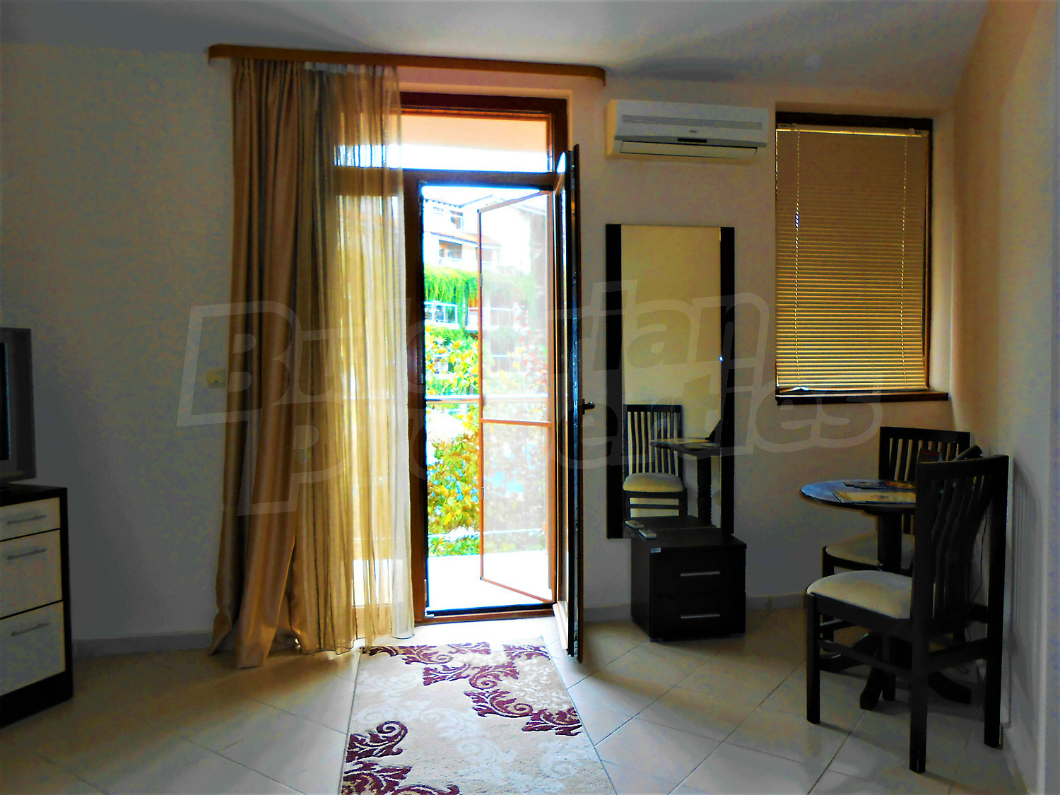 Готово за нанасяне студио в затворен комплекс „Лагуна Бийч“, на първа линия от плаж Златна Рибка (50 м), на 3 км от града, на главния път Бургас-Созопол, срещу отбивката за Созопол.