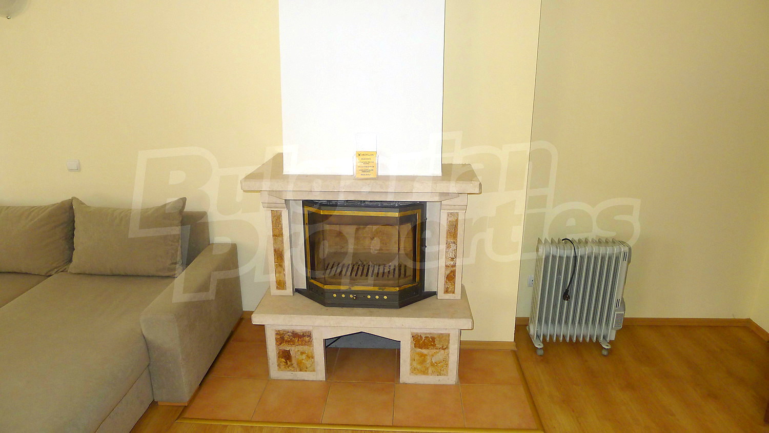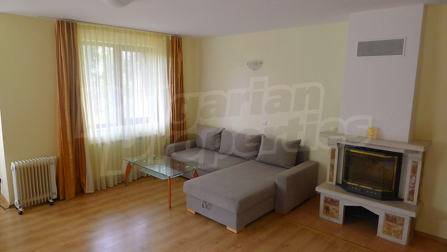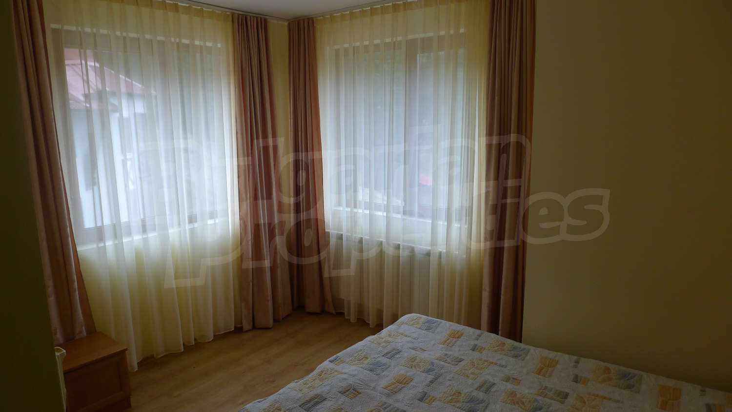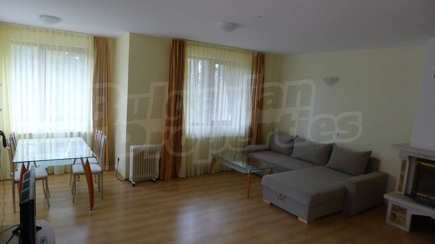 Апартаментът се разпределя между всекидневна с камина за допълнителен уют и кухненски бокс, 2 спални, баня с тоалетна, балкон. Пълното обзавеждане и оборудване може да разгледате на снимките. Отоплението е чрез електрически радиатори, в допълнение към камината. Подовите настилки са ламинат и теракот, а дограмата на прозорците – PVC.