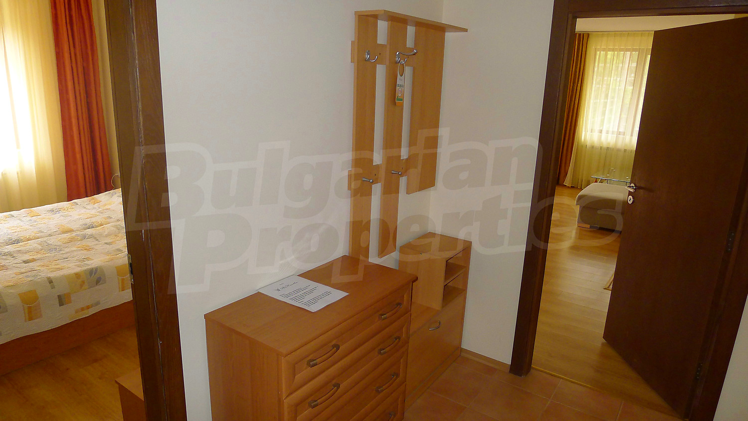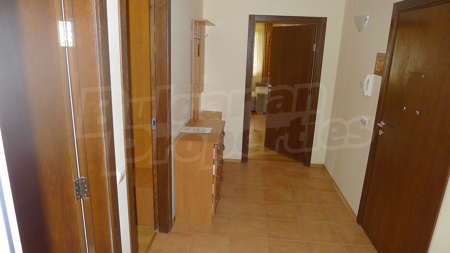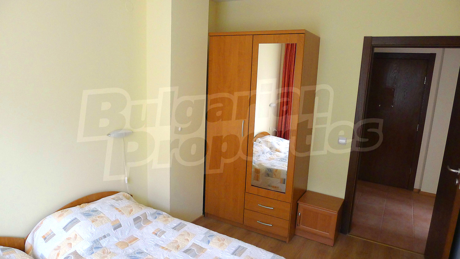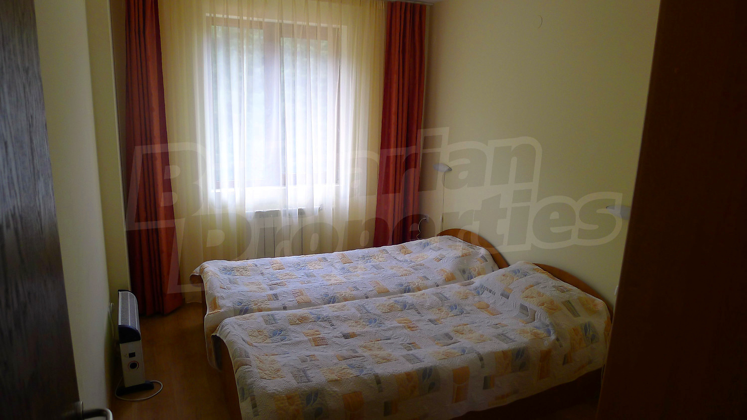 Апартаментът се разпределя между всекидневна с камина за допълнителен уют и кухненски бокс, 2 спални, баня с тоалетна, балкон. Пълното обзавеждане и оборудване може да разгледате на снимките. Отоплението е чрез електрически радиатори, в допълнение към камината. Подовите настилки са ламинат и теракот, а дограмата на прозорците – PVC.