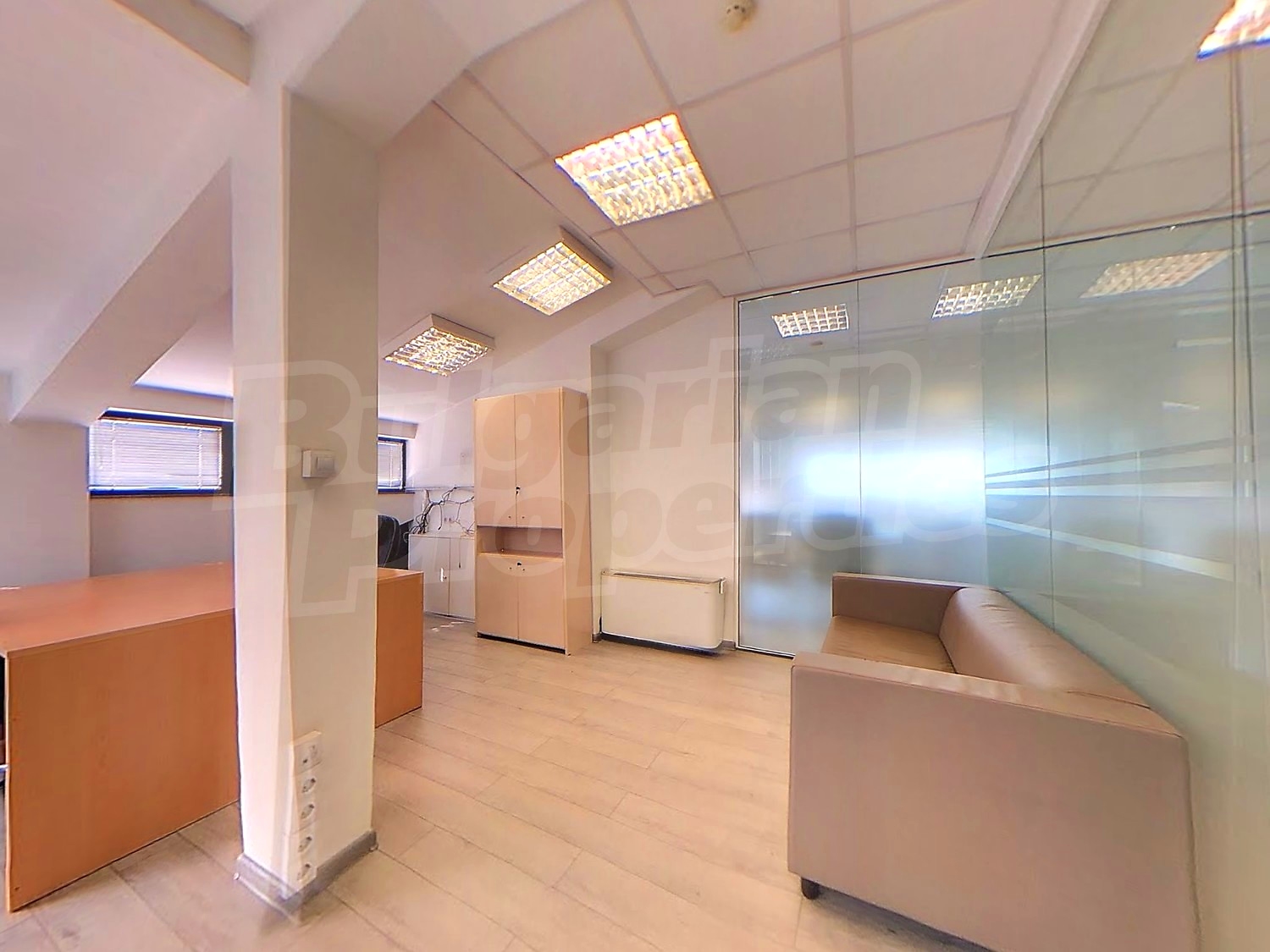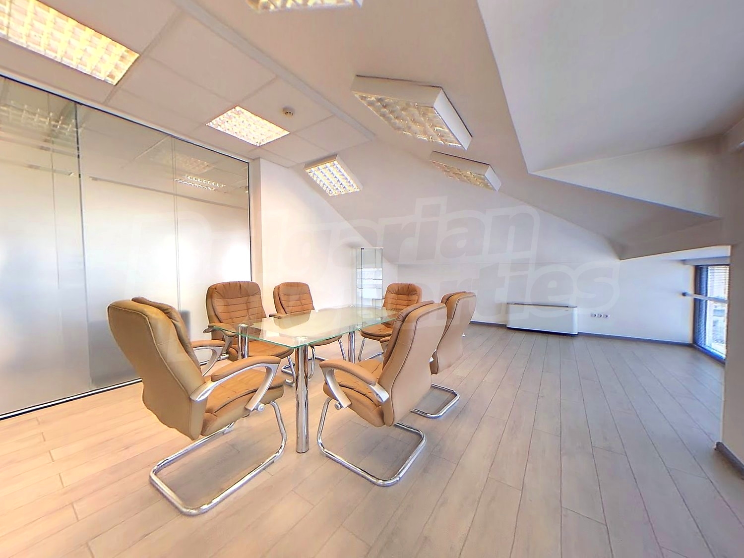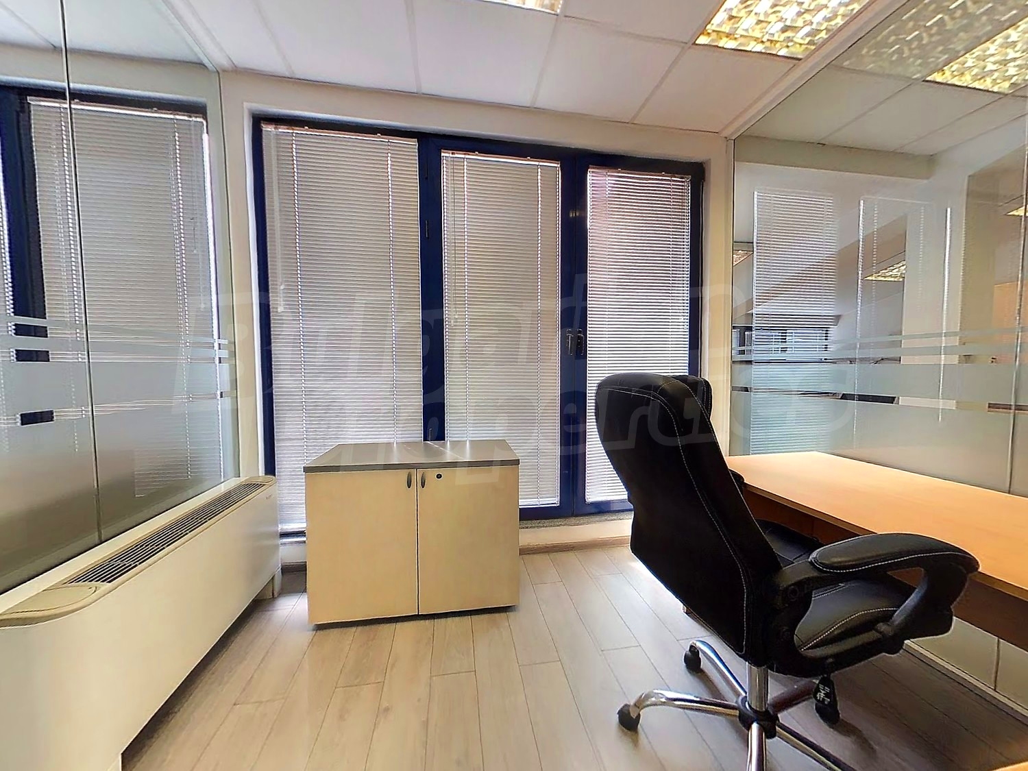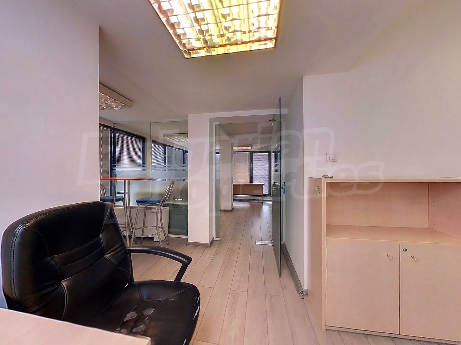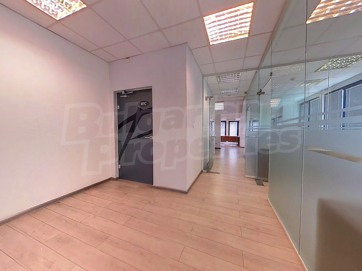 Вътрешната планировка разделена на отделни кабинети със стъклени прегради. Единствен офис на етажа.