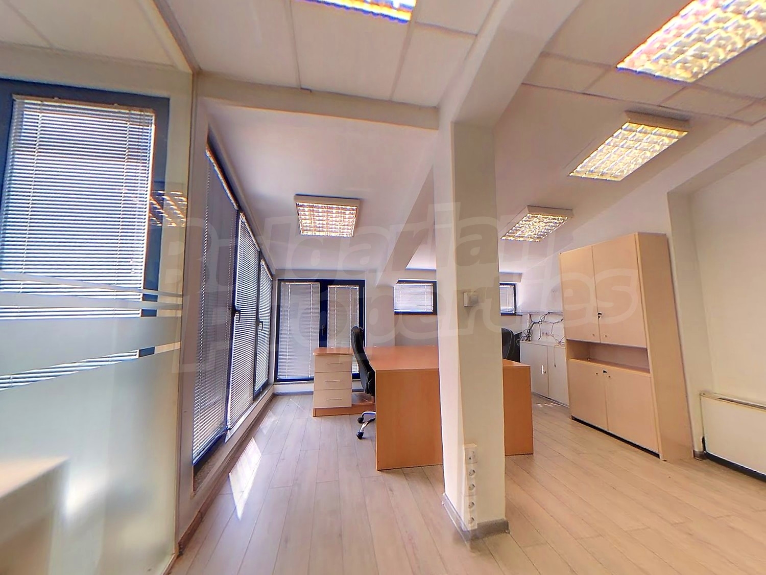 Офисът е изцяло завършен, окабелен, отоплението и охлаждането е подсигурено от чилъри.