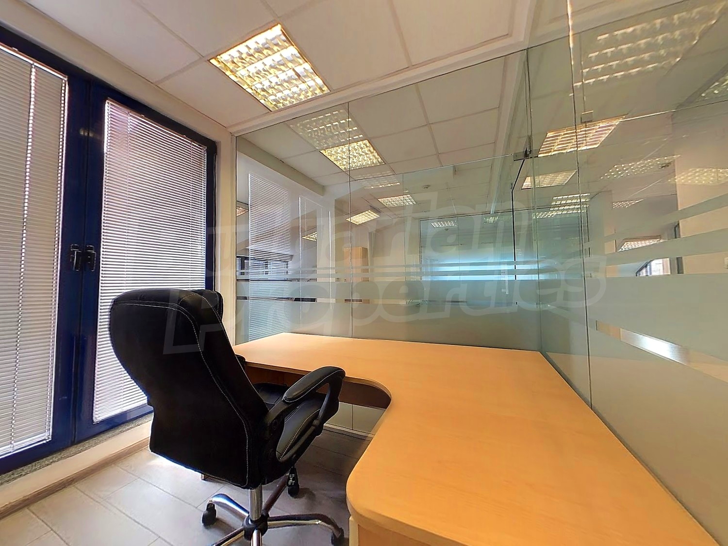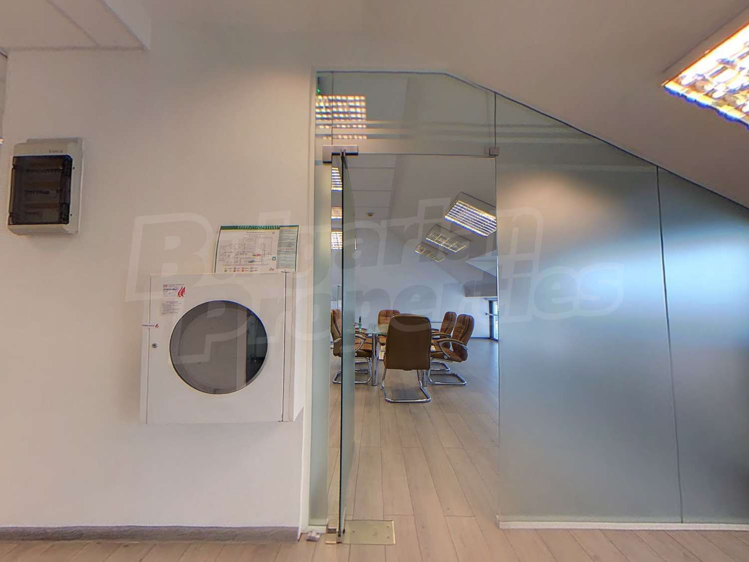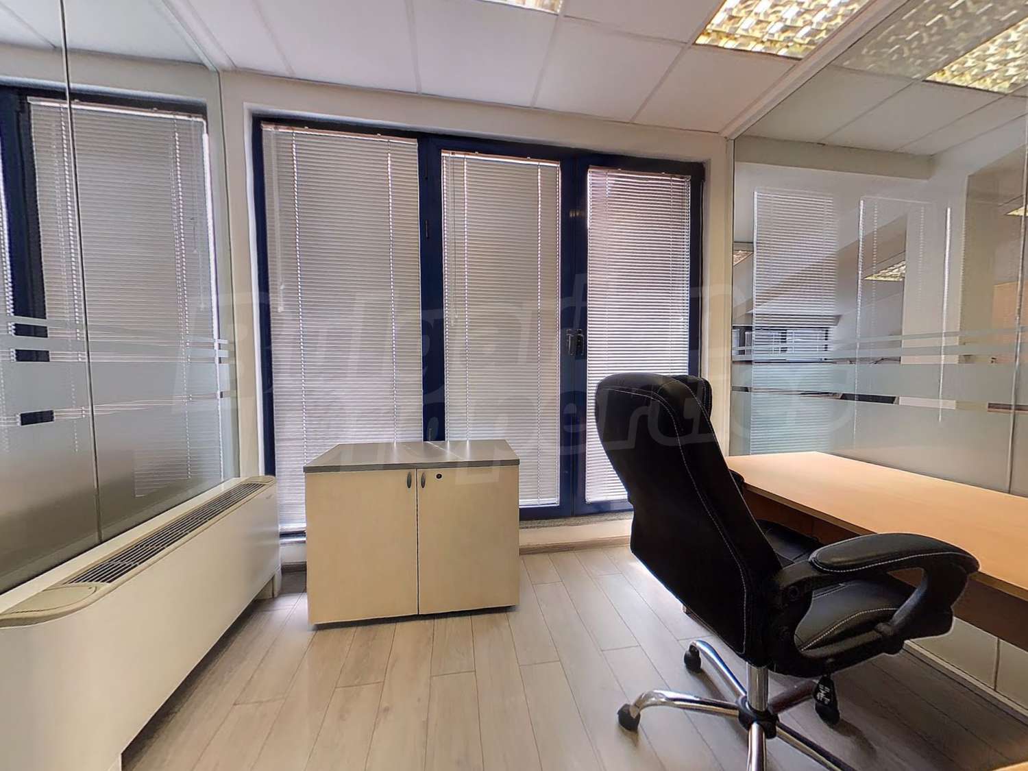 Вътрешната планировка разделена на отделни кабинети със стъклени прегради. Единствен офис на етажа.