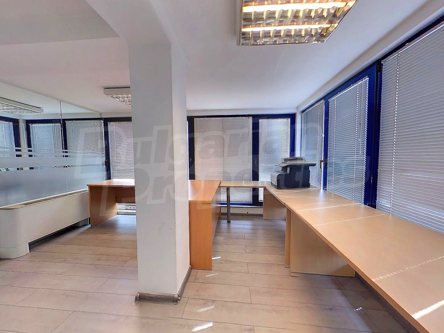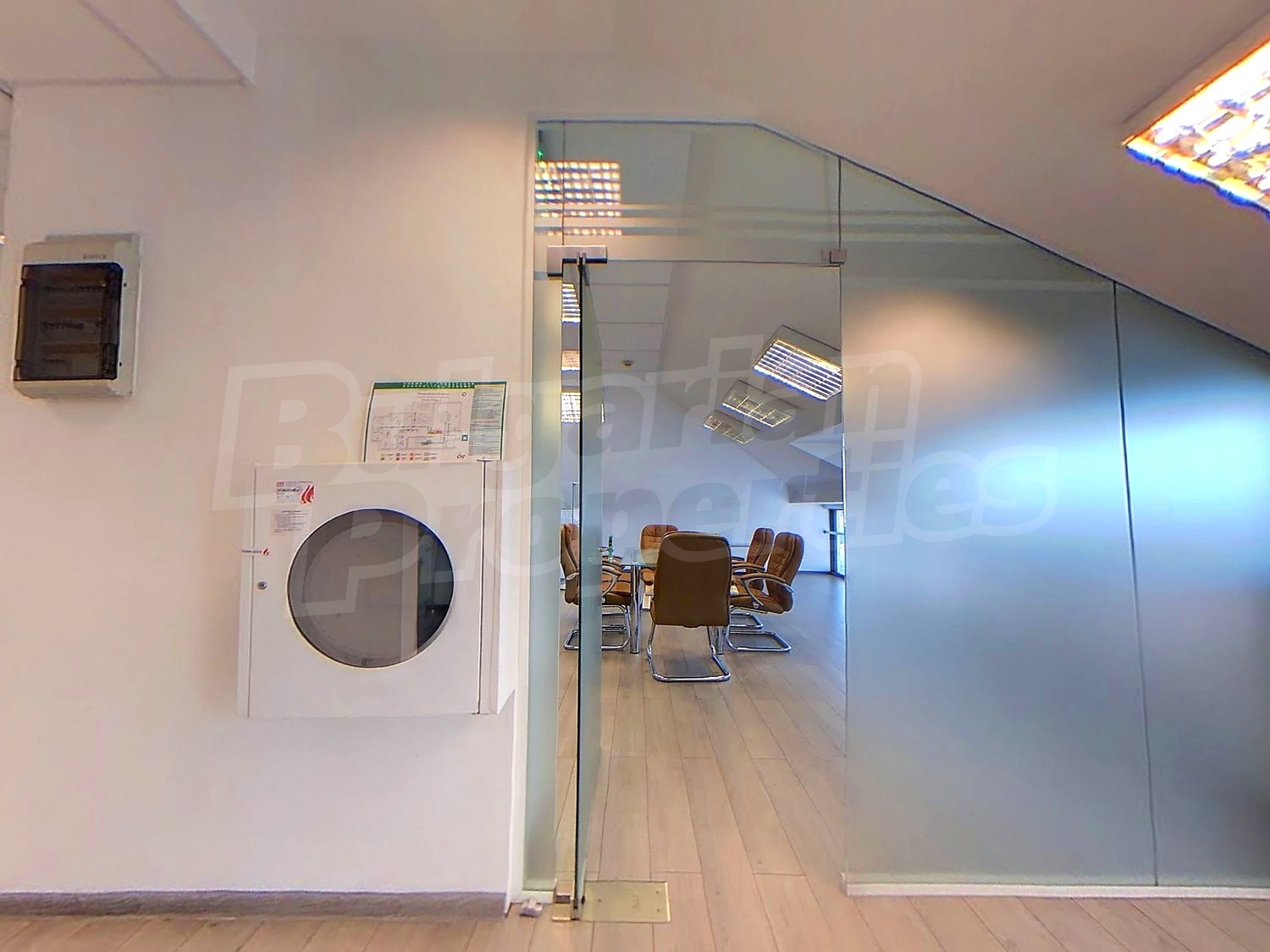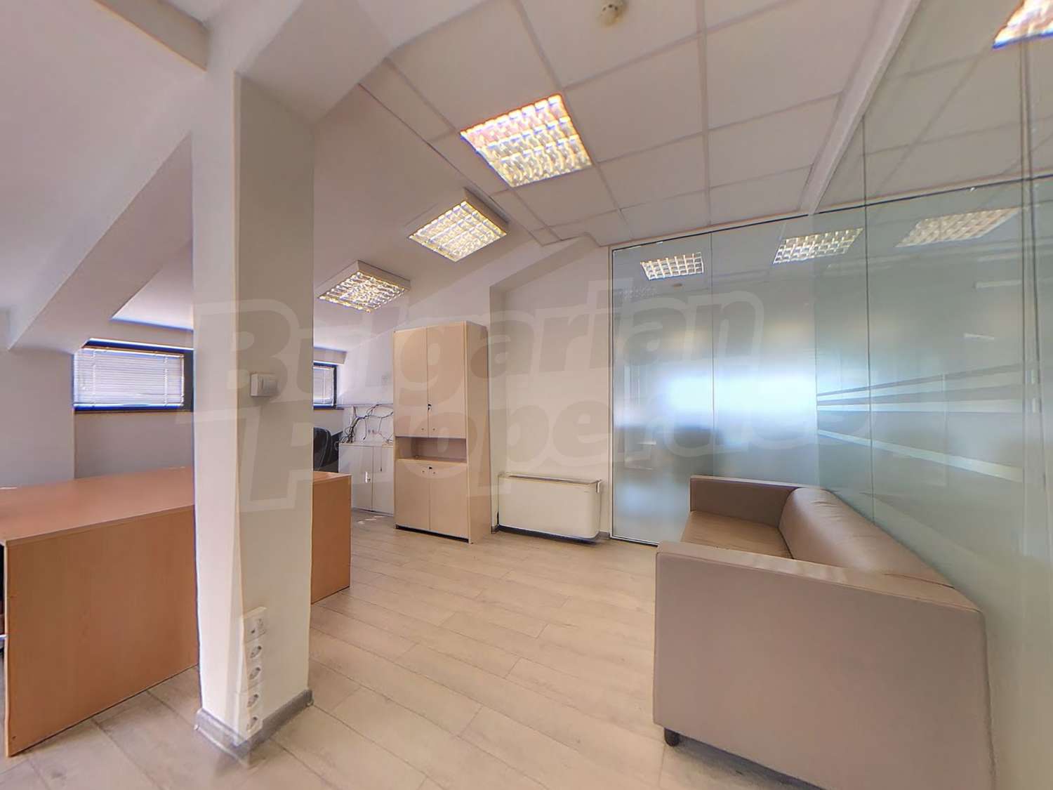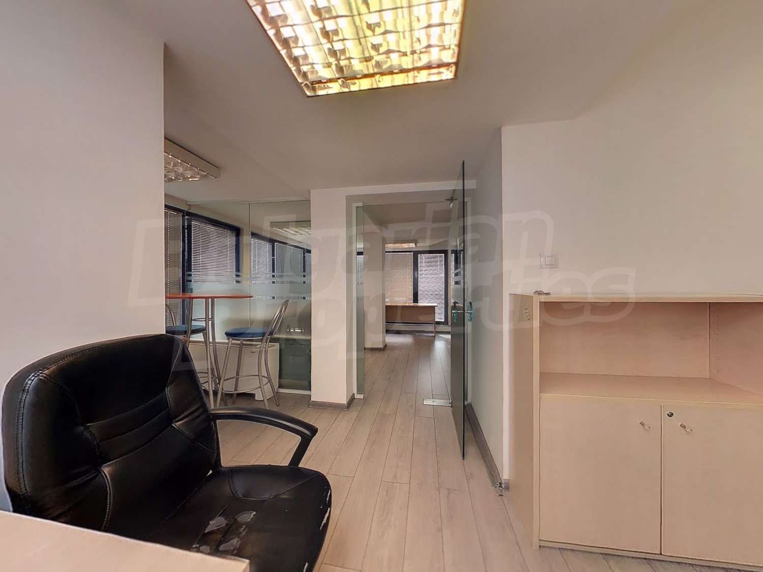 Вътрешната планировка разделена на отделни кабинети със стъклени прегради. Единствен офис на етажа.