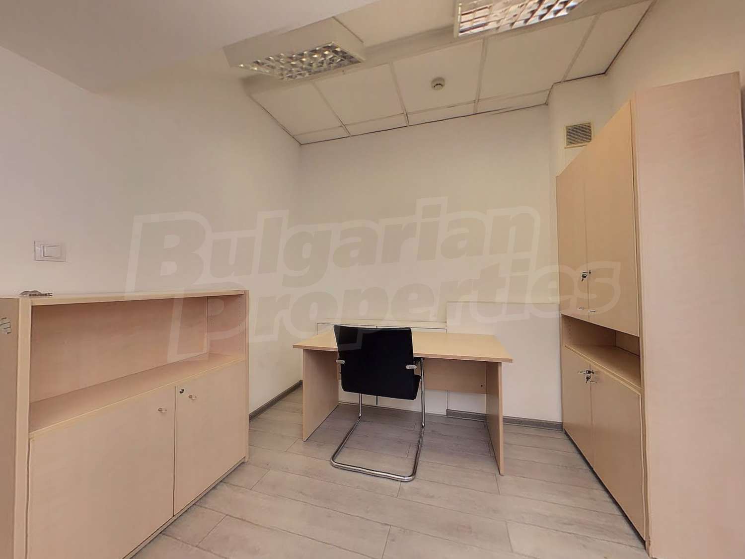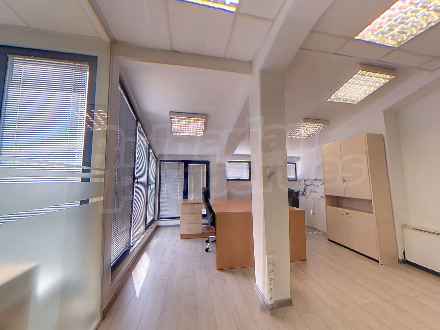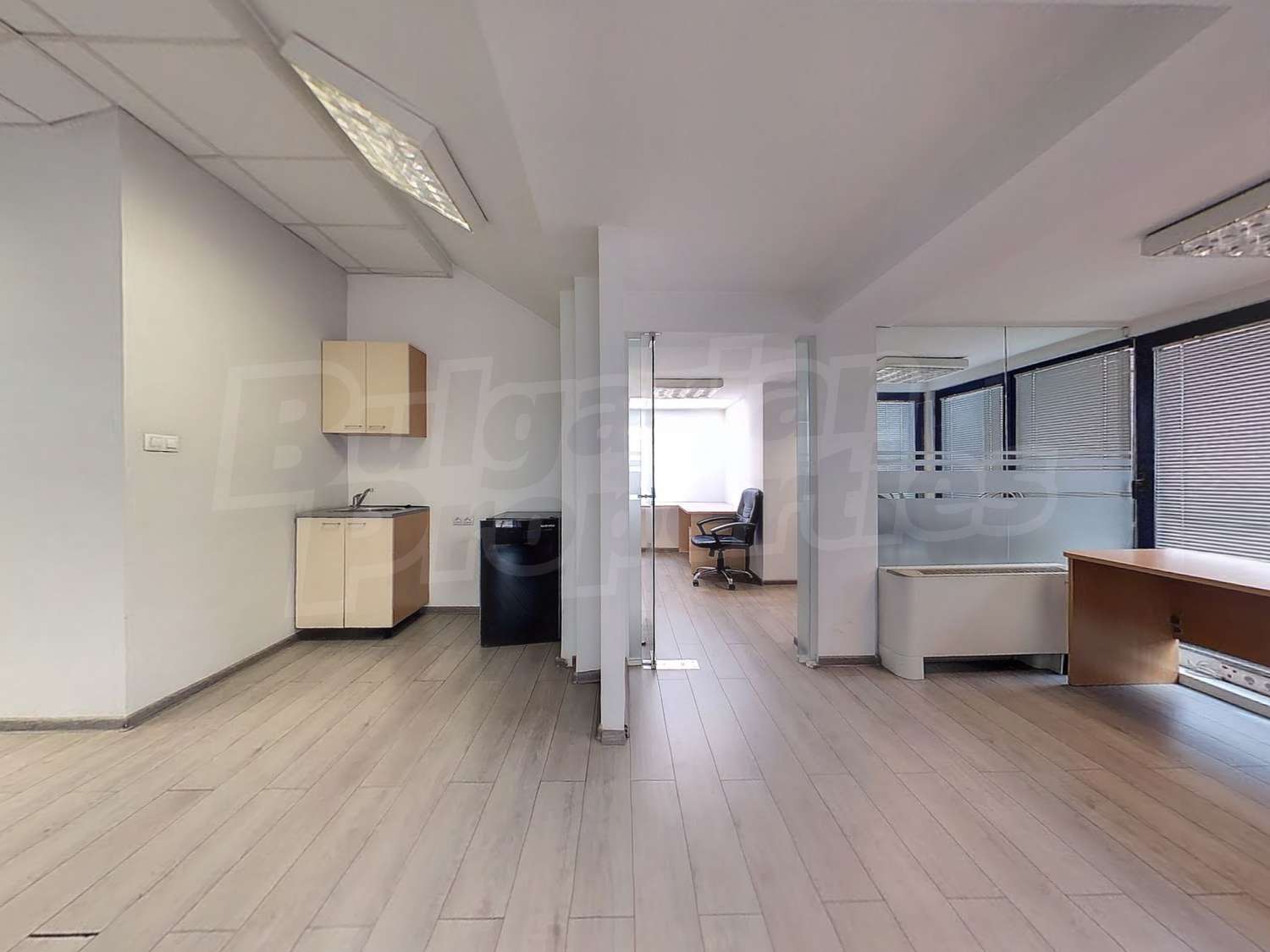 Офисът е изцяло завършен, окабелен, отоплението и охлаждането е подсигурено от чилъри.