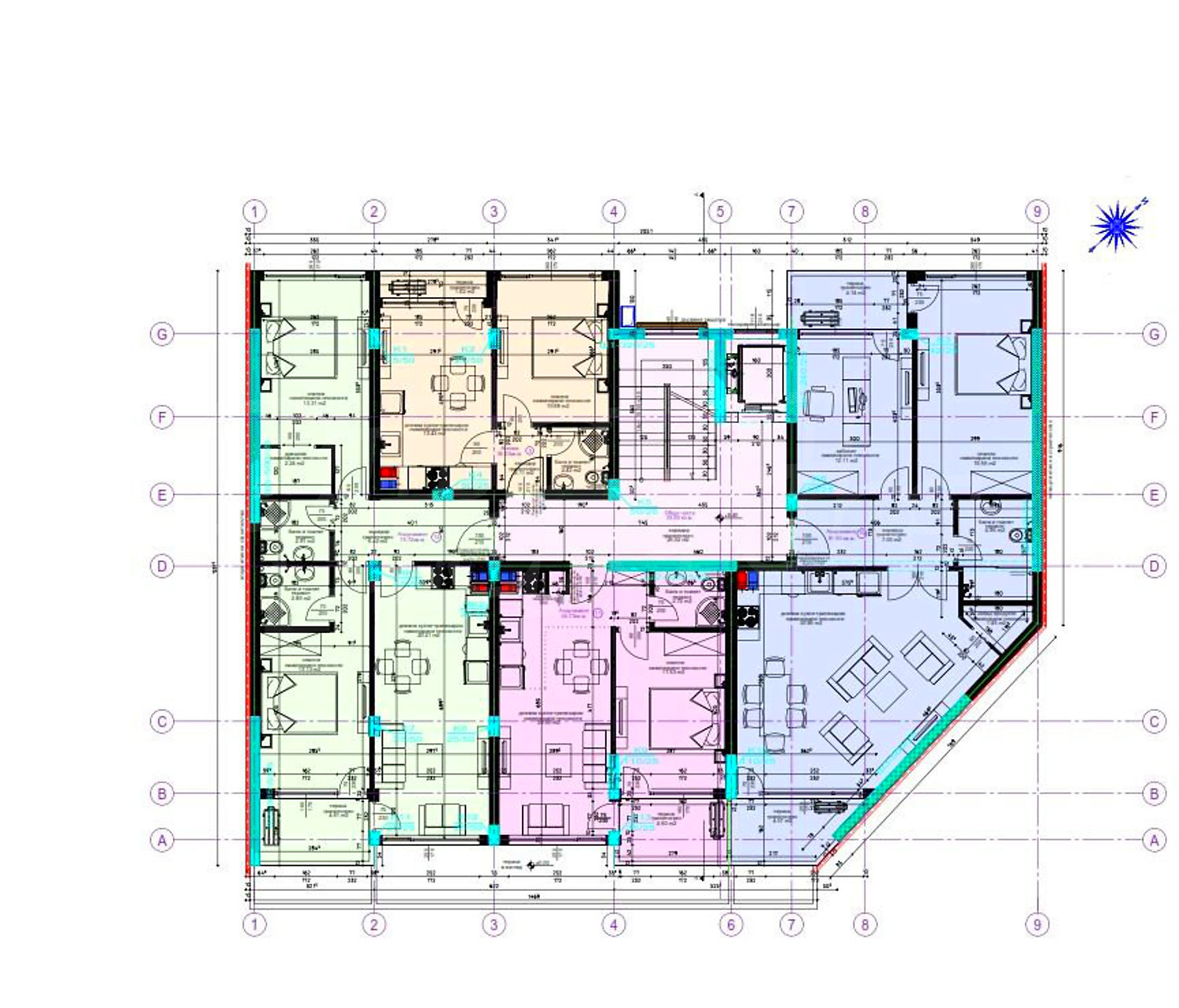 Апартаменти (различни типове), Двустайни апартаменти, Тристайни апартаменти, Четиристайни апартаменти, Гаражи