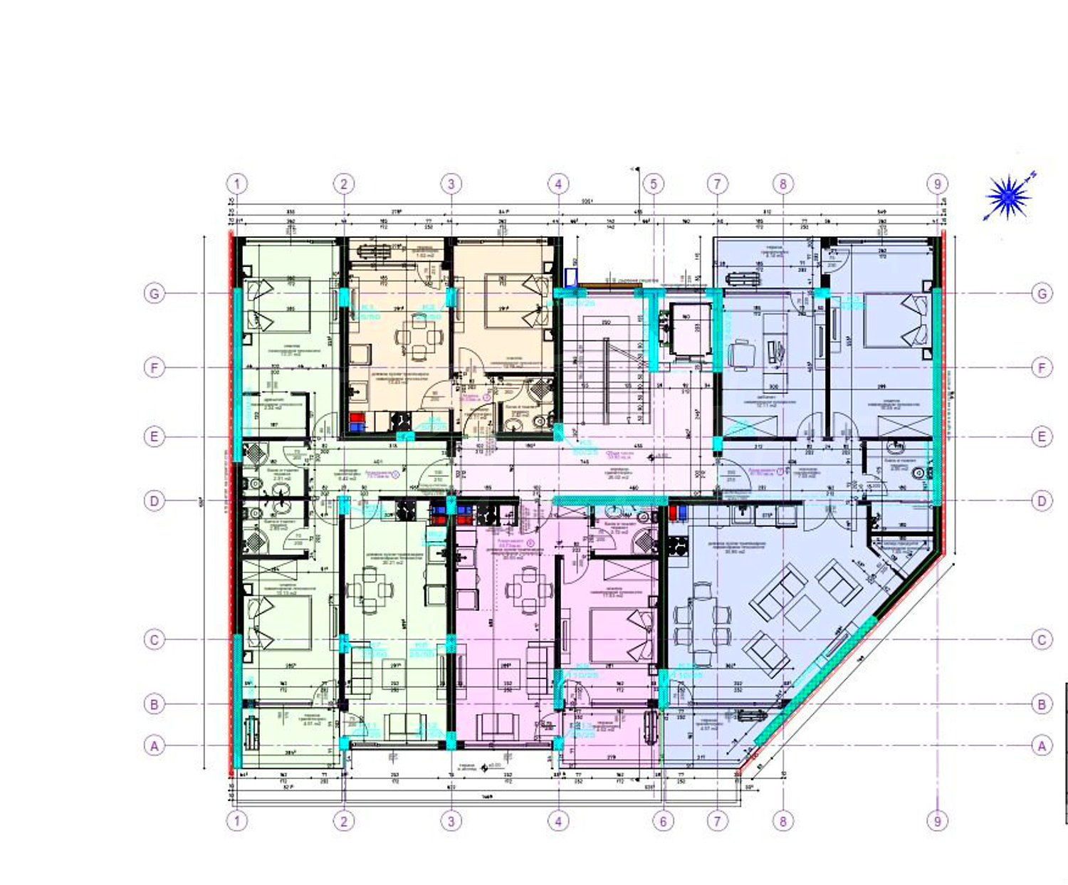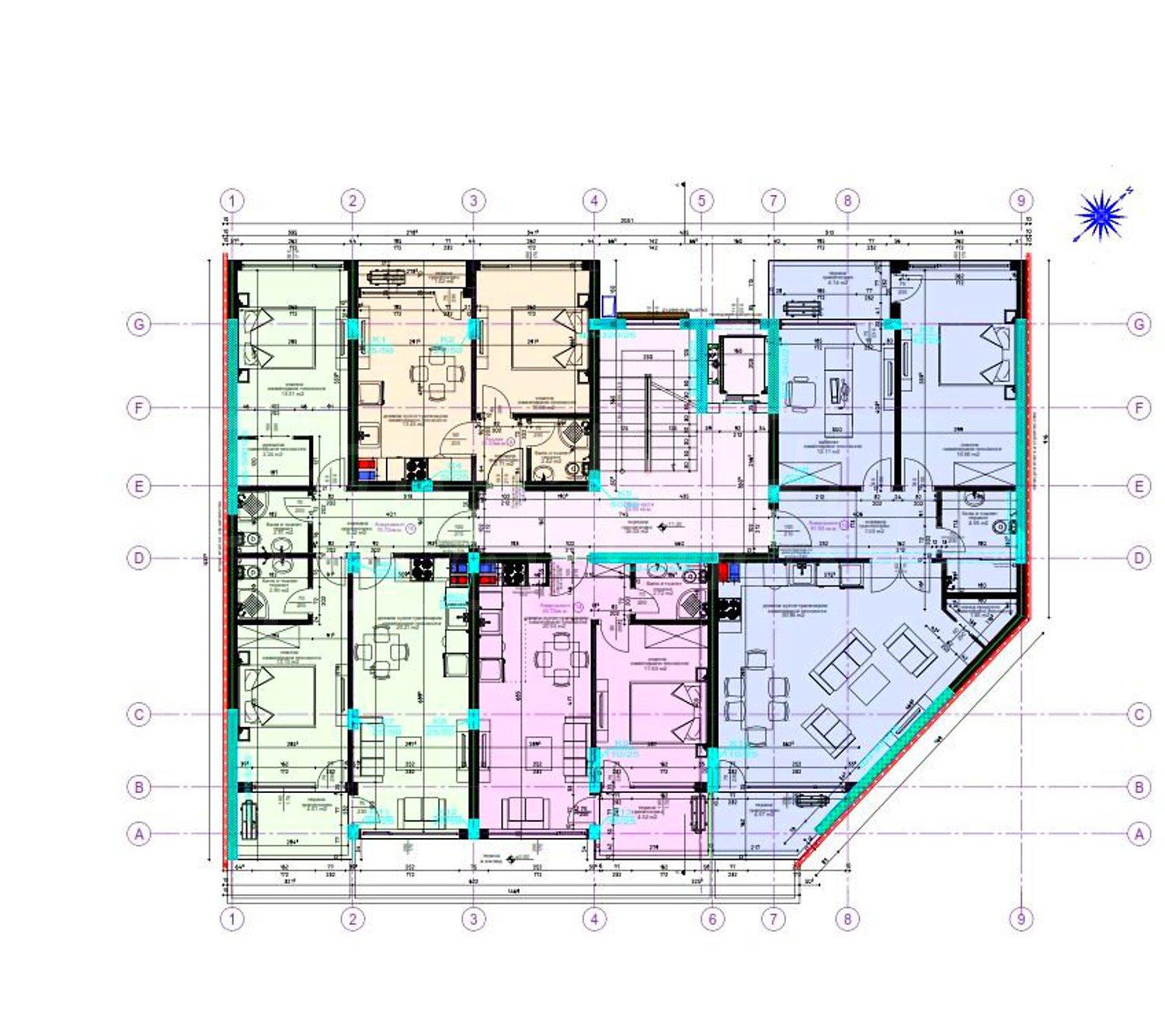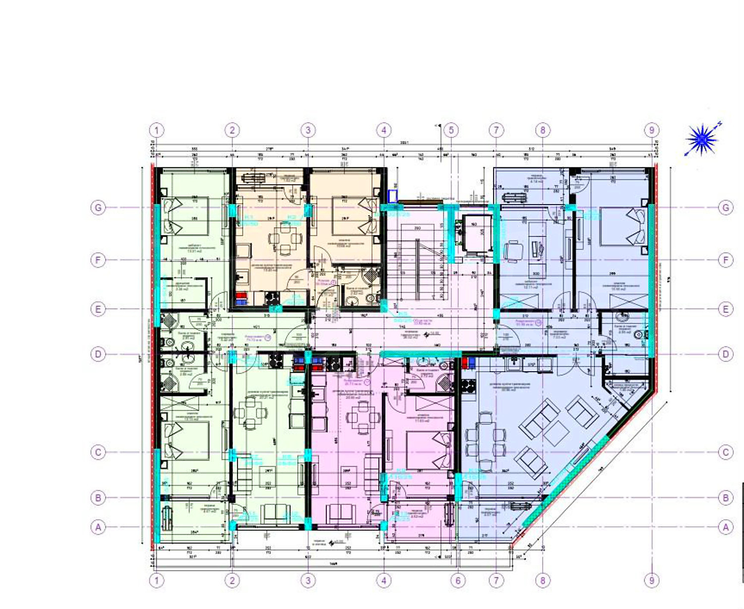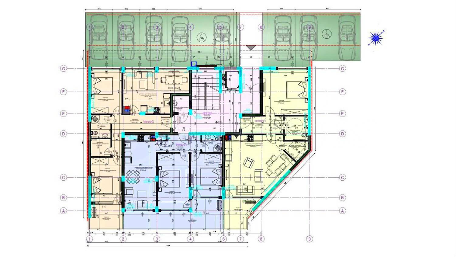 Апартаменти (различни типове), Двустайни апартаменти, Тристайни апартаменти, Четиристайни апартаменти, Гаражи