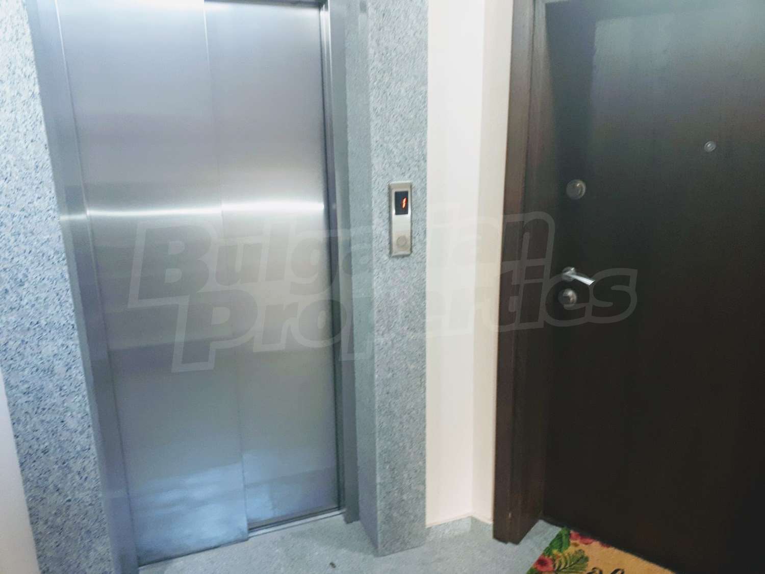 • Входна апартаментна врата: тежко блиндирана с два листа ламарина (изработена в България) облечена с МДФ и фурнир с цвят венге, с тристранно заключване и допълнителна брава, иноксов обков и шпионка