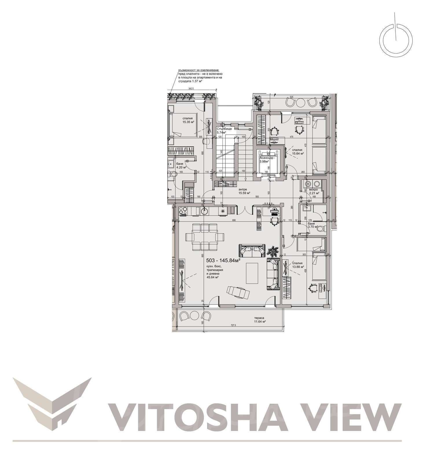 Просторен четиристаен апартамент в престижния комплекс „Витоша Вю” / Vitosha View на тиха и спокойна улица, пряка на бул. "Черни Връх" с директен достъп до самия булевард, в квартал Кръстова Вада, на по малко от 100 метра от бъдещата спирка на метрото. Сградата е резултат от качественото строителство, с изградена система за контрол на качеството и съвременни технологии и материали от световно известни производители.
