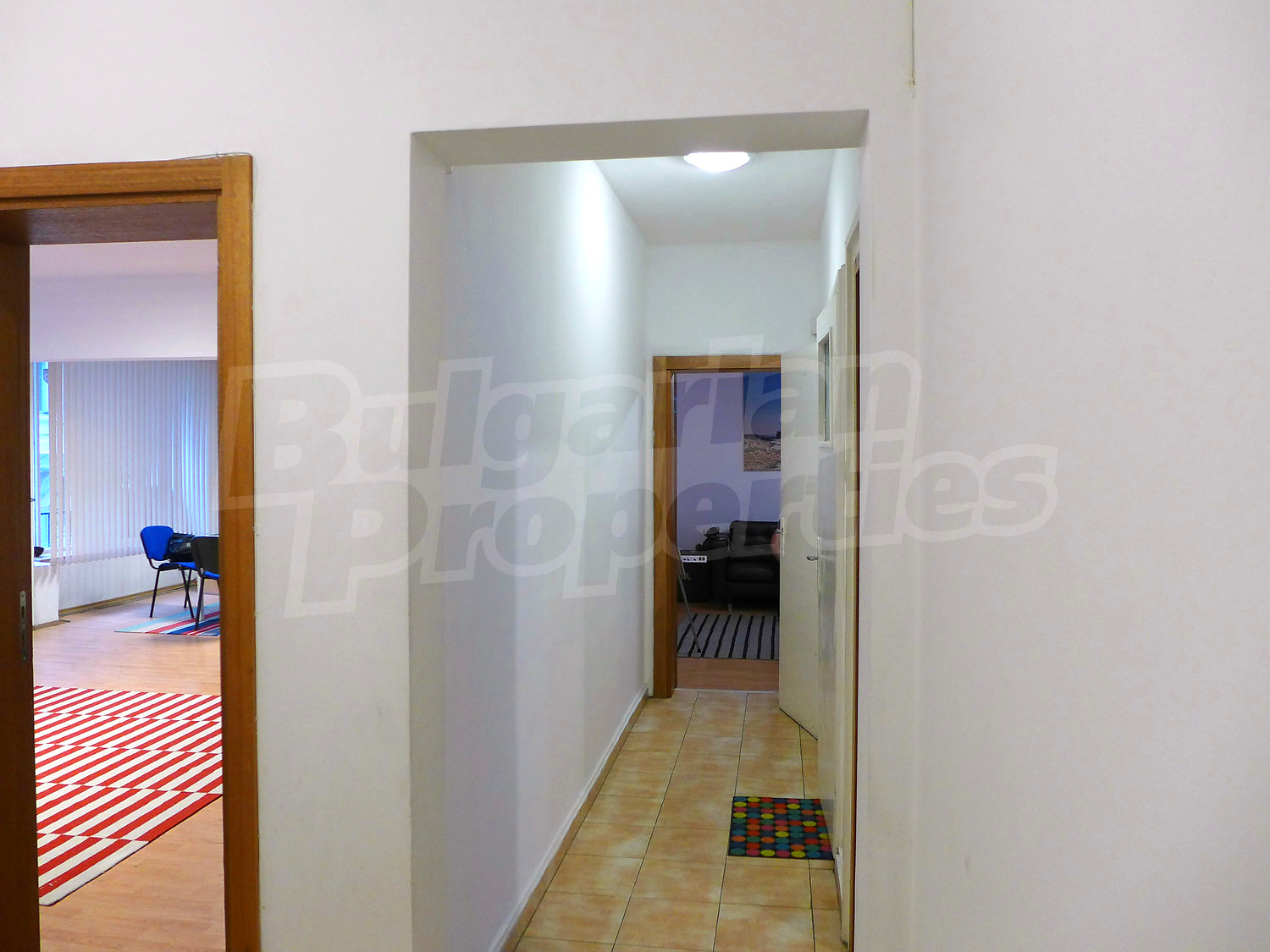 Апартаментът е на първи етаж, над магазини – или втори жилищен. Просторният имот заема чиста жилищна площ – 105 кв.м. Разпределение: