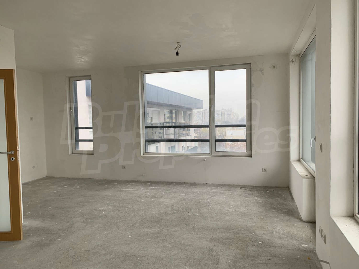 Апартаментът е разположен на 7/8 етаж, с обща площ от 117.38 кв.м., чиста площ – 98.34 кв.м. Разпределя се между: