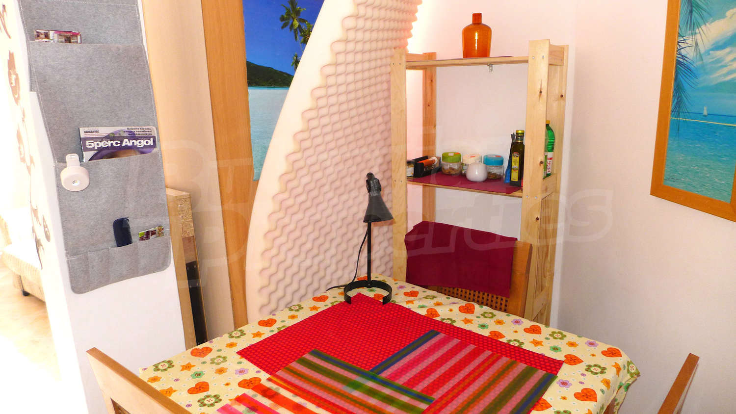 Студиото е обзаведено и разполага с всичко необходимо за живеене. Намира се на партерен приземен етаж и няма тераса.