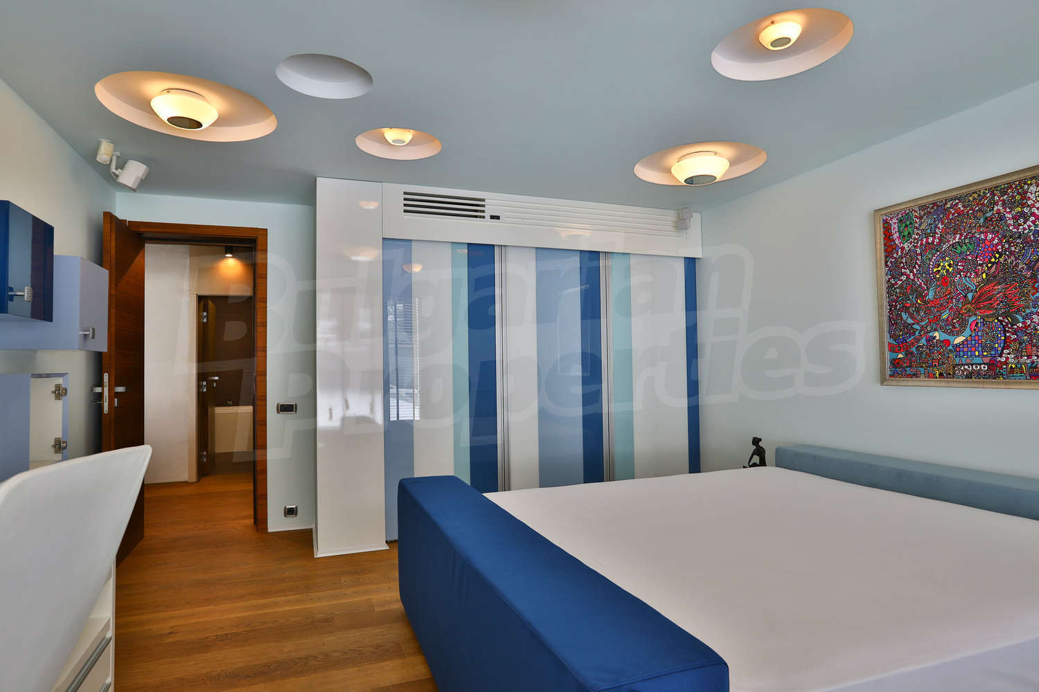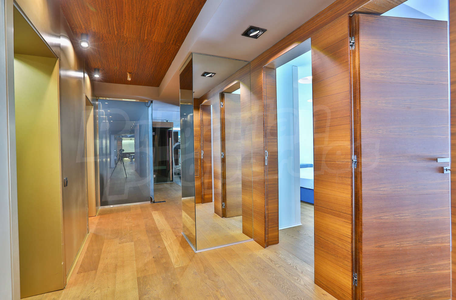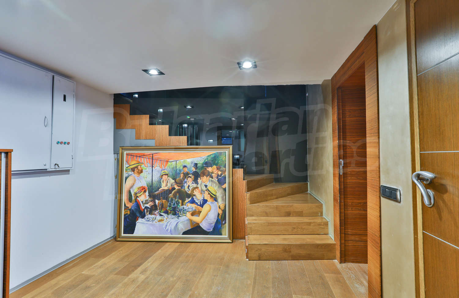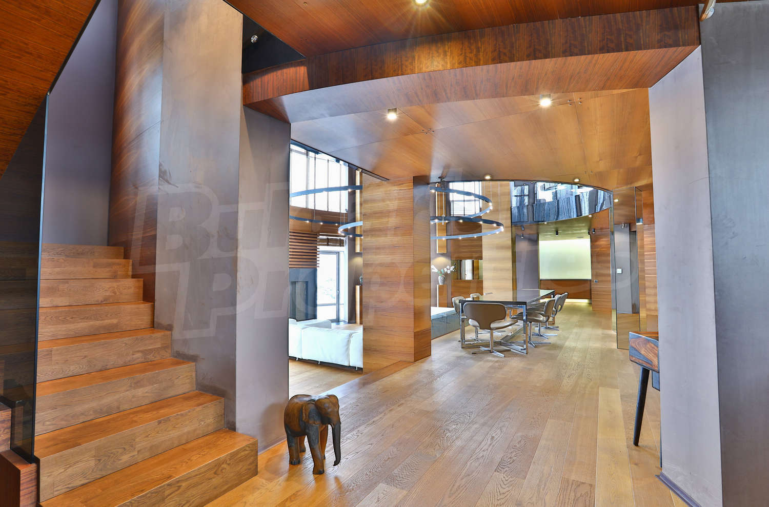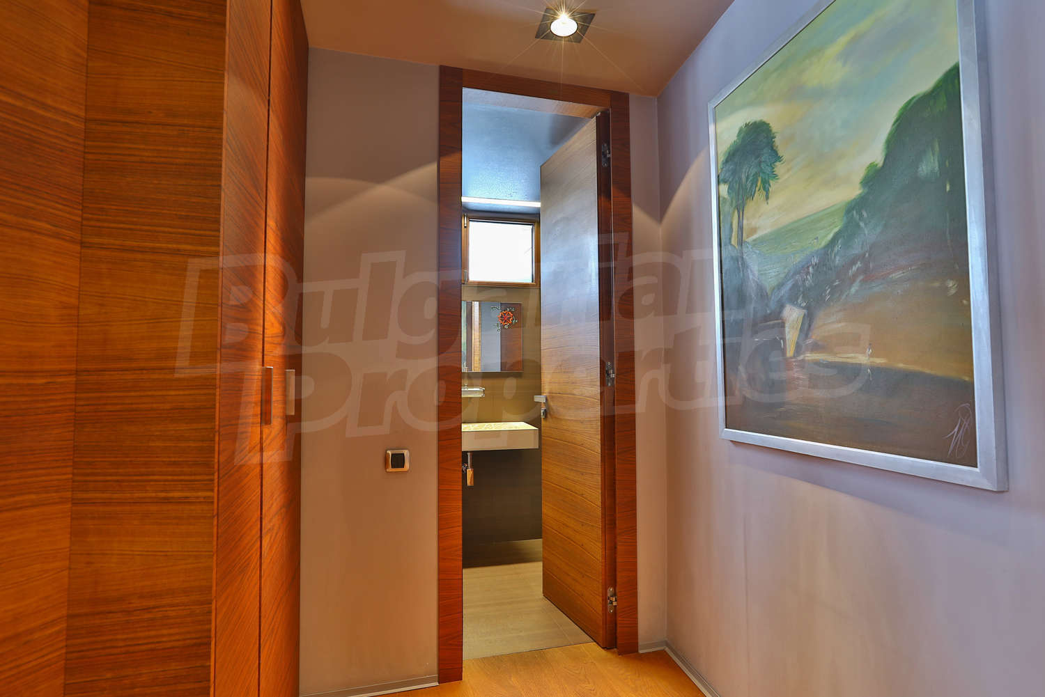 Оформено е място с представителни функции и възможност за прием на официални гости (отворен работен кът-емпоре), и едновременно с това уютна и комфортна жилищна среда.