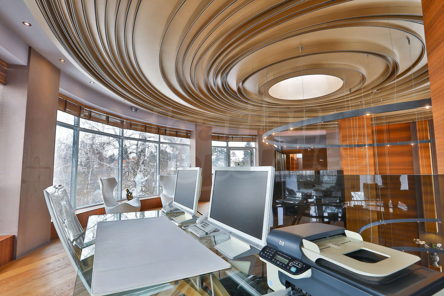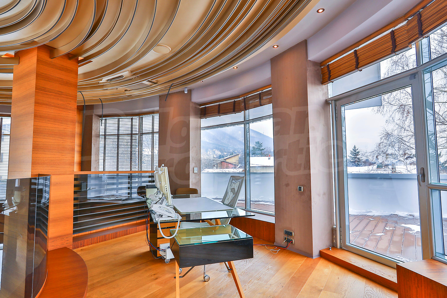Оформено е място с представителни функции и възможност за прием на официални гости (отворен работен кът-емпоре), и едновременно с това уютна и комфортна жилищна среда.