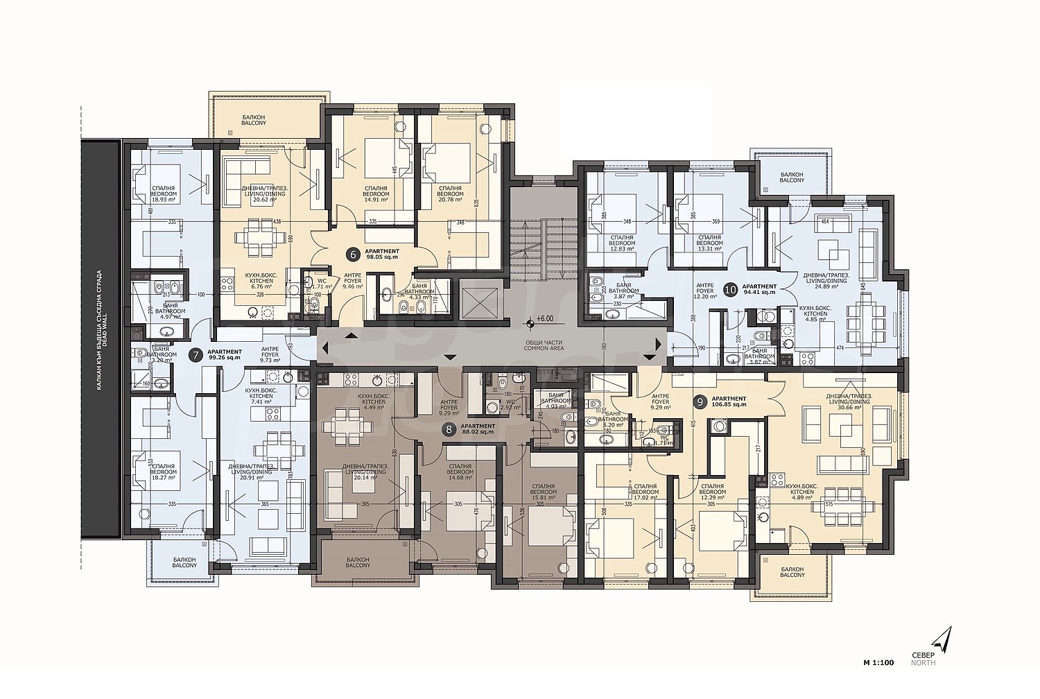 110.07 м2 (чиста площ: 94.41 м2 плюс общи части: 15.66 м2)