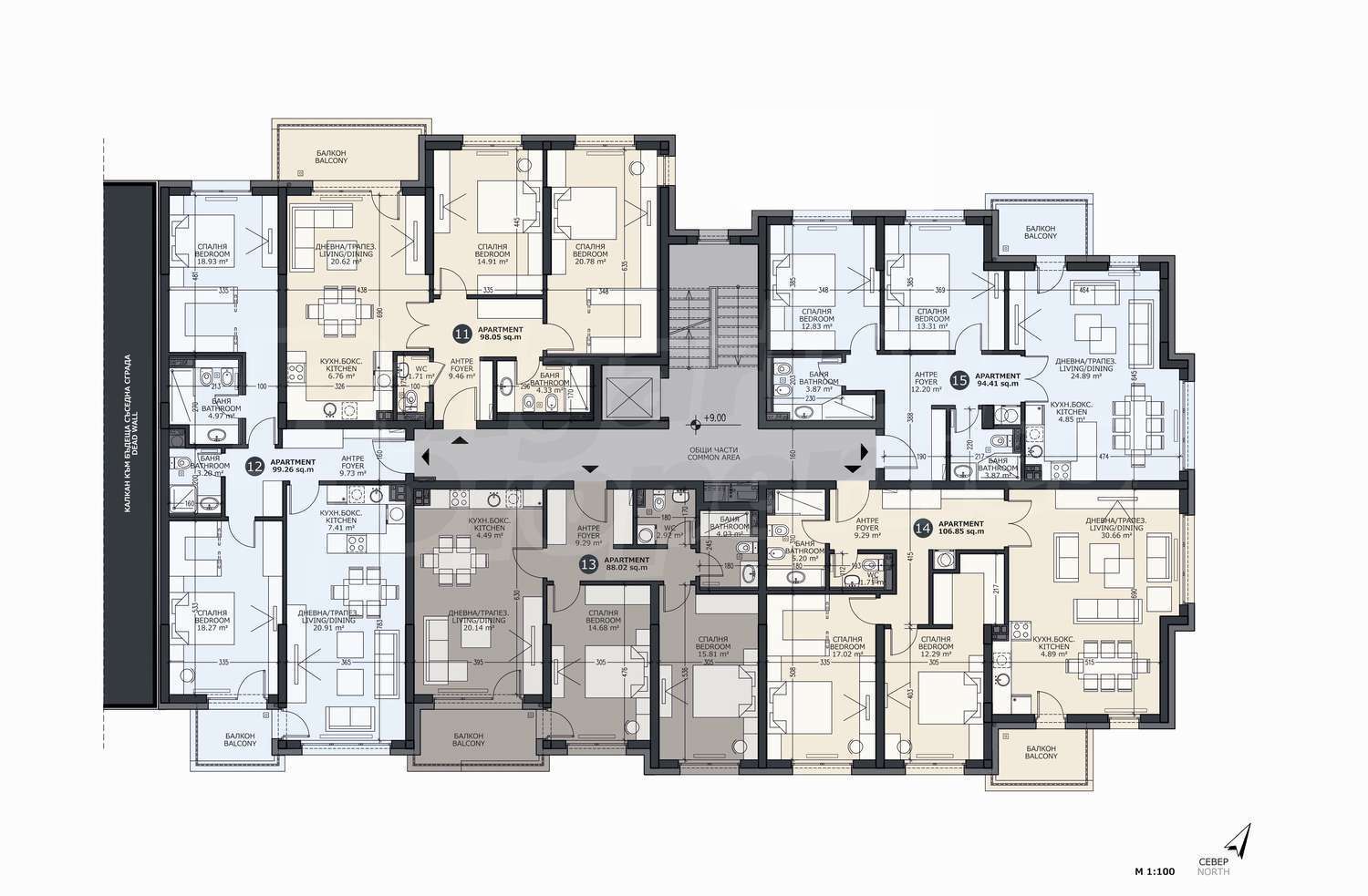 110.07 м2 (чиста площ: 94.41 м2 плюс общи части: 15.66 м2)