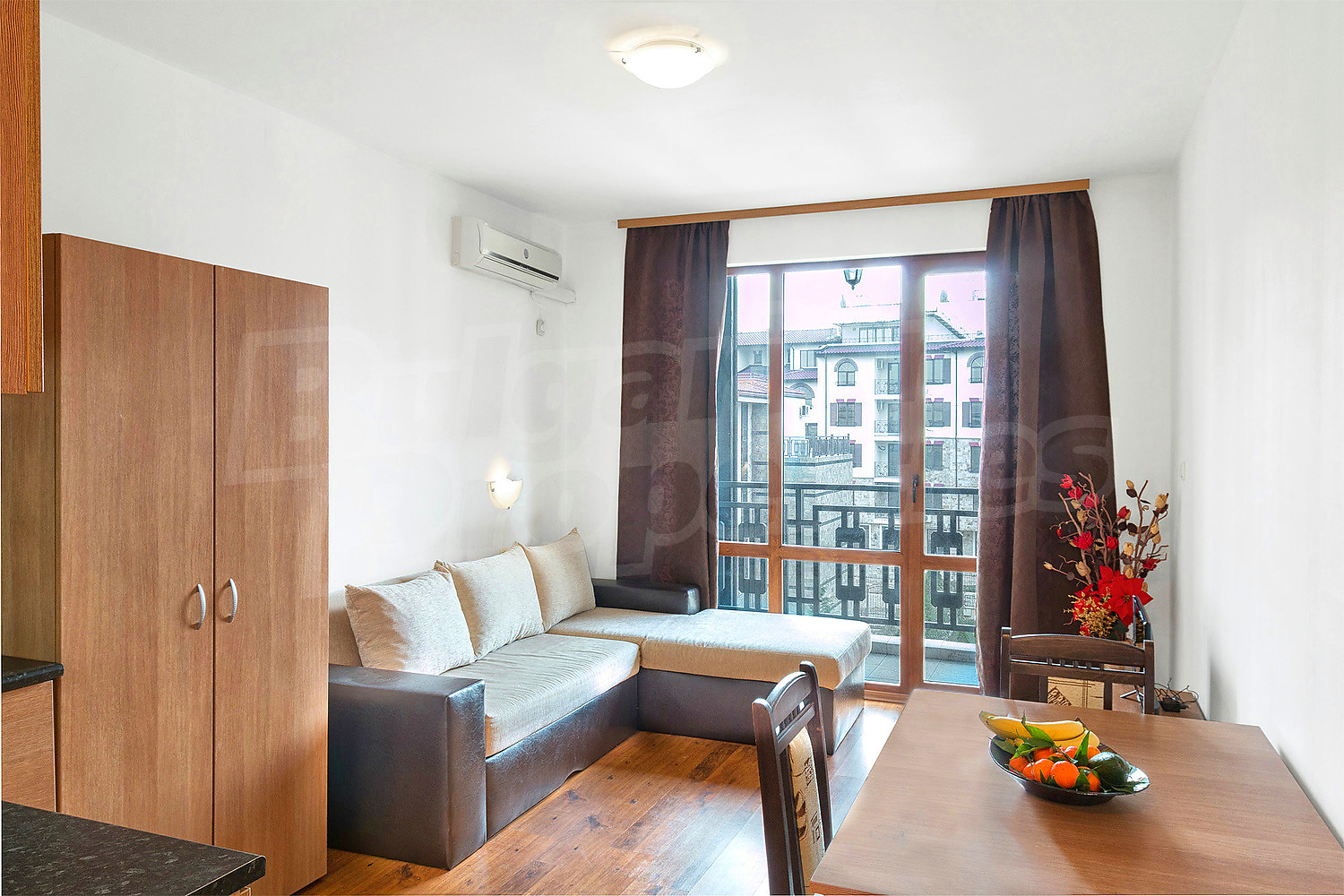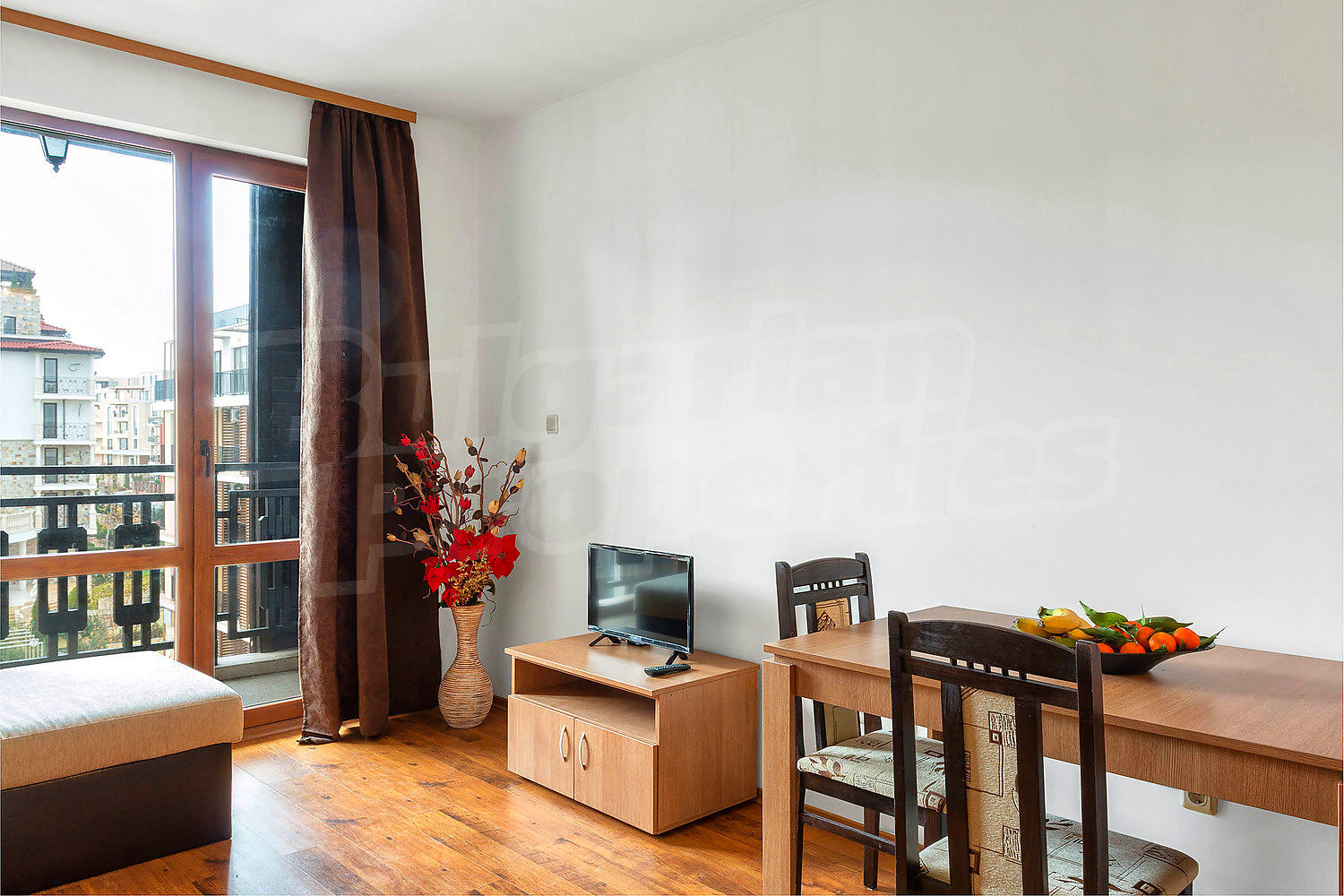 • Балкон с гледка към вътрешния двор на комплекса с басейн