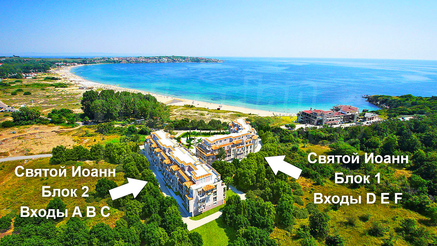 Комплекс „Свети Йоан“ се откроява със стилна средиземноморска архитектура сред заобикалящата красива природа на Странджа планина и морска панорама на най-популярния плаж само на 3 км. от центъра на Созопол.