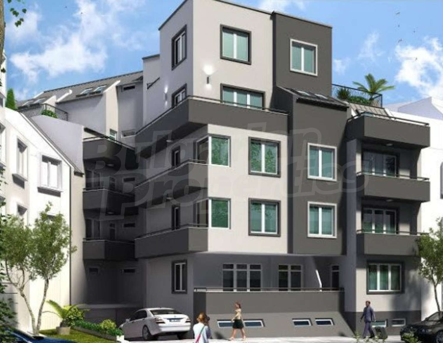 Сградата се намира на тиха улица и e изградена на 5 етажа, като за удобство на живущите са предвидени подземни гаражи.