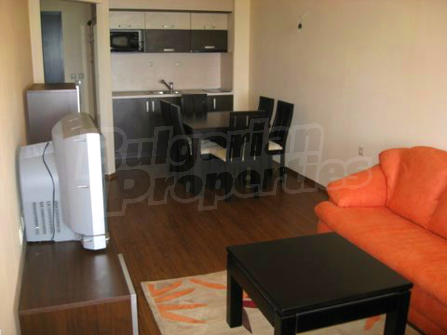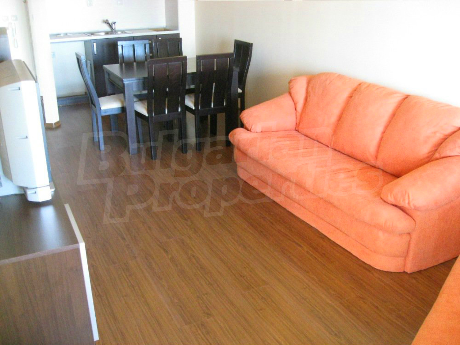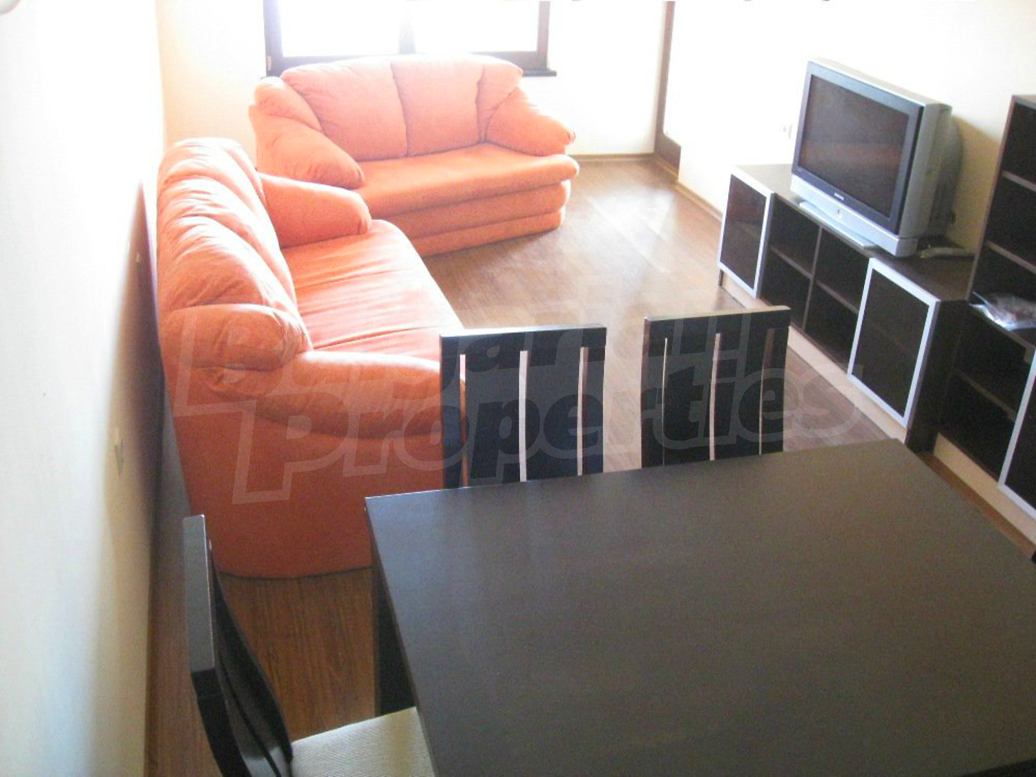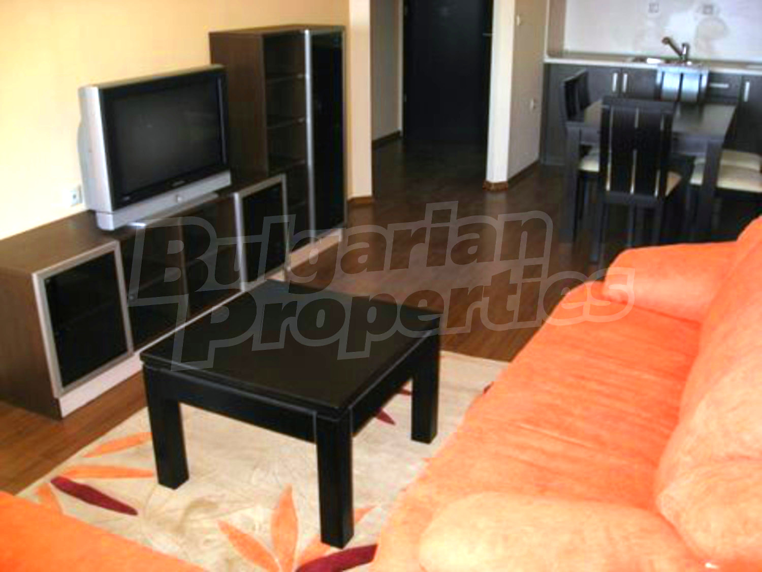 Апартаментът е разположен на втори етаж в тази забележителна сграда. Състои се от дневна с кухненска част, една спалня, баня с тоалетна. Обща площ на имота - 85.12 кв.м. Предлага се напълно обзаведен и оборудван.