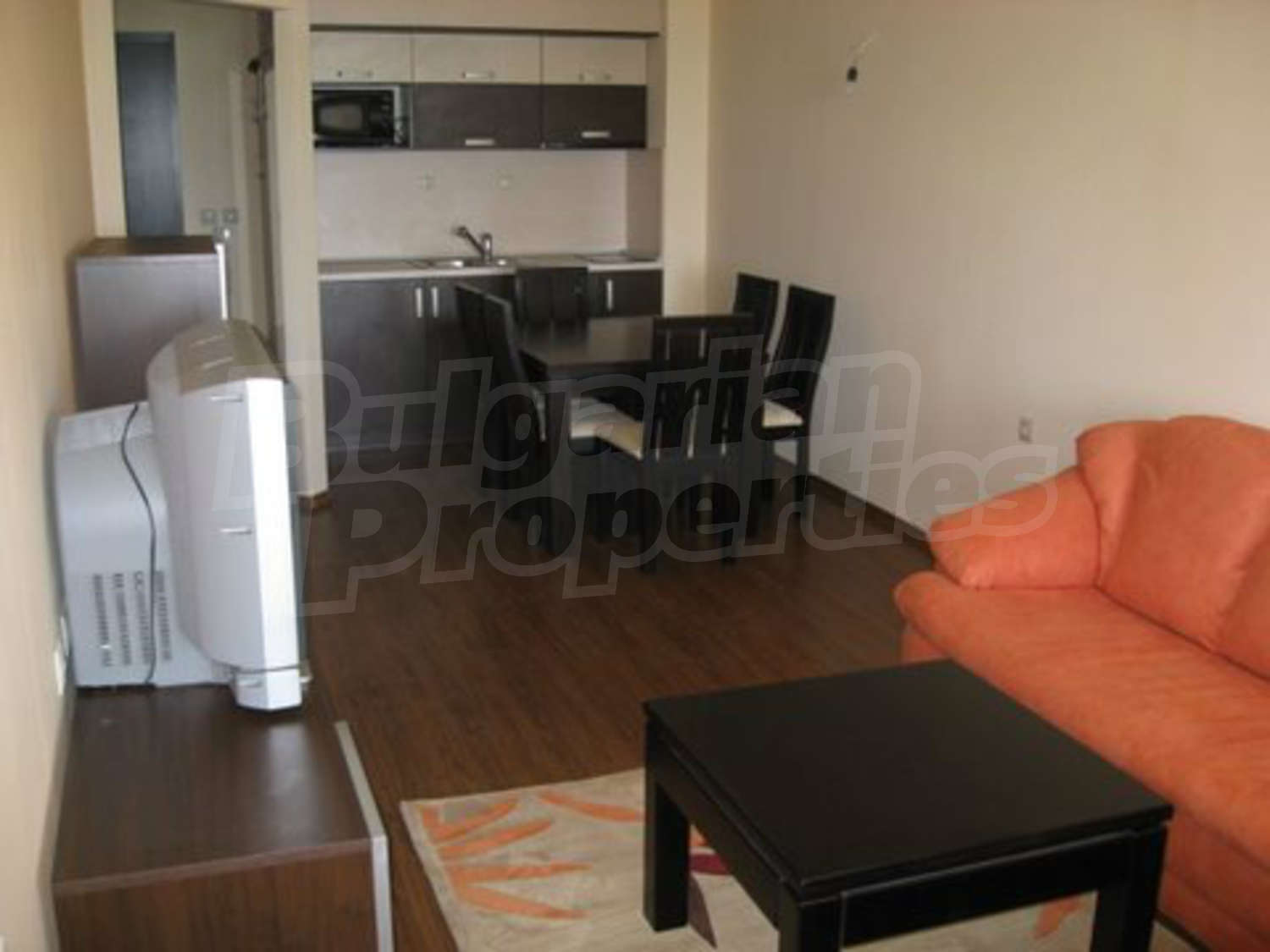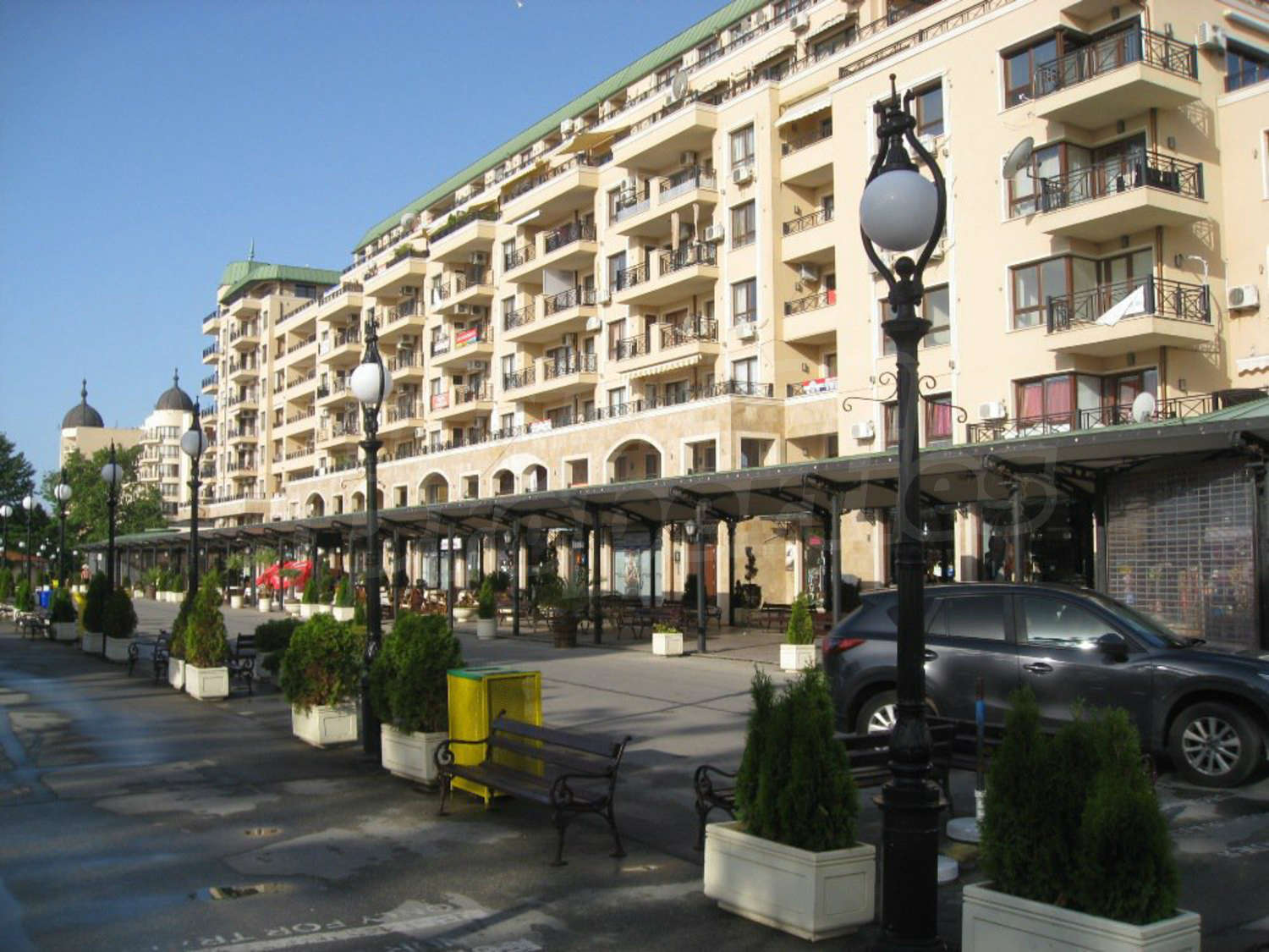 Апартаментът е разположен на втори етаж в тази забележителна сграда. Състои се от дневна с кухненска част, една спалня, баня с тоалетна. Обща площ на имота - 85.12 кв.м. Предлага се напълно обзаведен и оборудван.