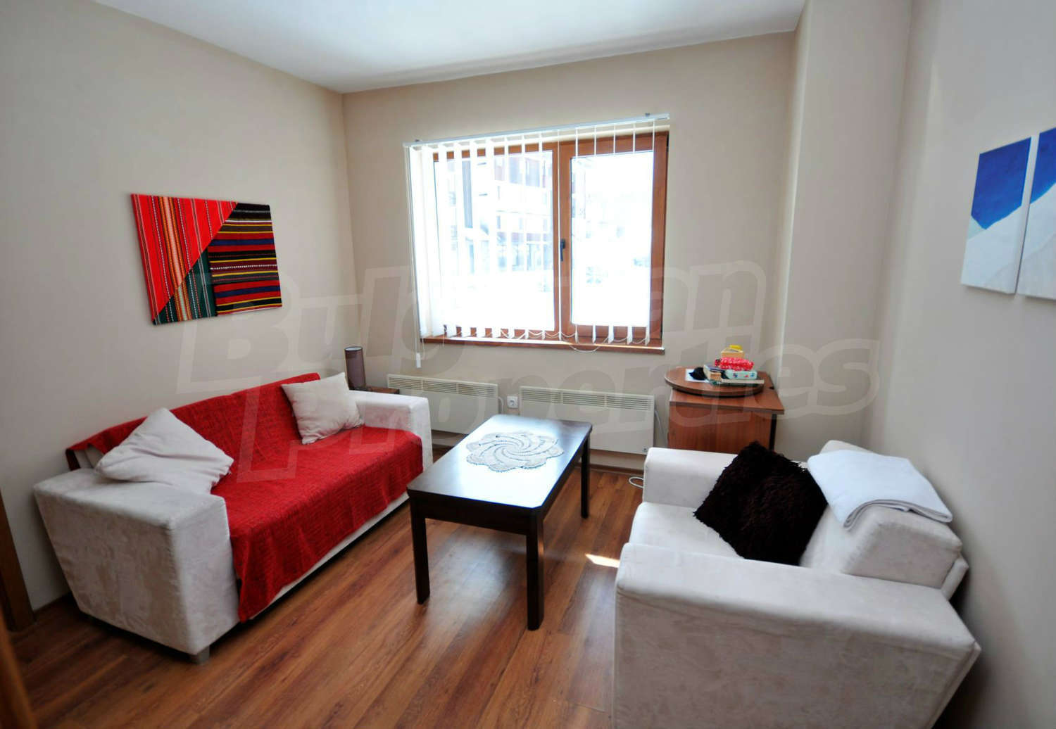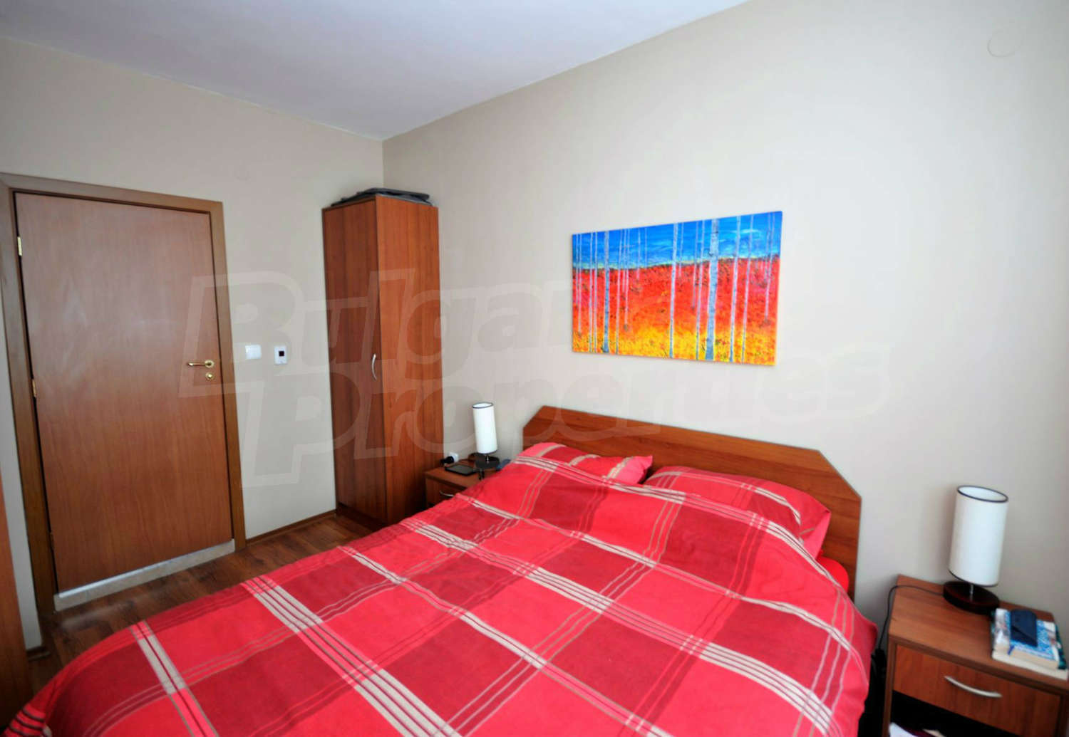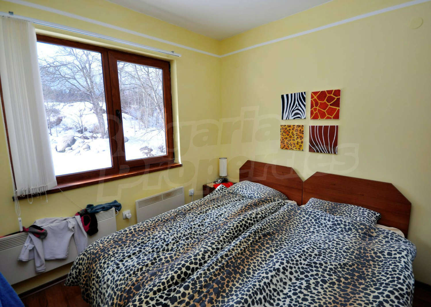 Жилището (70 кв.м.) се намира на втори етаж, с южно изложение, с гледка към гора, планината и вътрешния двор на комплекса. Апартаментът е напълно обзаведен и оборудван, готов за незабавно ползване от собствениците или отдаване под наем на туристи. Кухненският бокс е оборудван с фурна / котлони, аспиратор, мивка, хладилник-фризер. Холът е обзаведен с двоен разтегателен диван, кресло, масичка за кафе, маса за хранене, 4 стола за хранене, щори; спалня 1 - двойно легло, 2 нощни шкафчета, гардероб, тоалетка с огледало, щори; спалня 2 - 2 единични легла, 2 нощни шкафчета, гардероб, тоалетка с огледало, щори. Банята с тоалетна е оборудвана с огледало, мивка, душ кабина, бойлер.