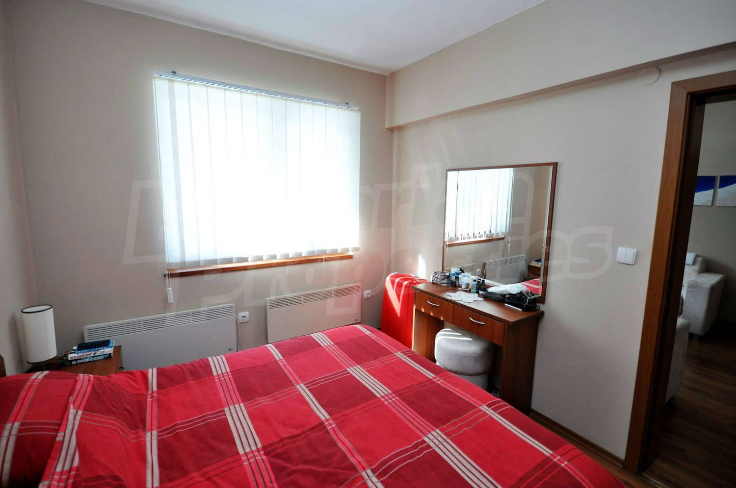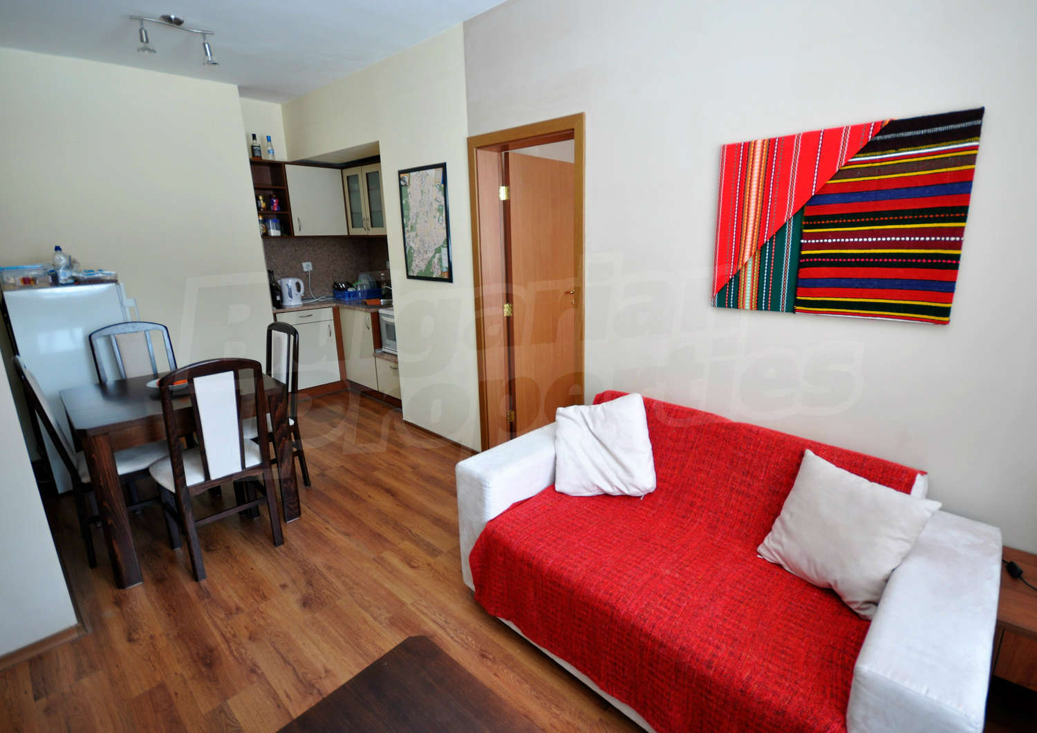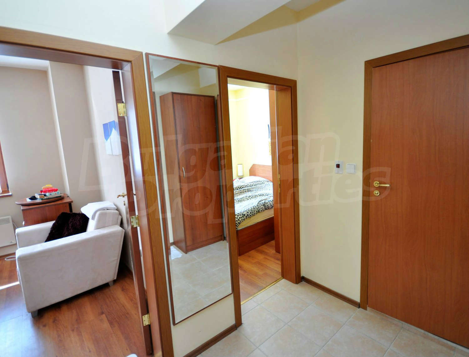 Жилището (70 кв.м.) се намира на втори етаж, с южно изложение, с гледка към гора, планината и вътрешния двор на комплекса. Апартаментът е напълно обзаведен и оборудван, готов за незабавно ползване от собствениците или отдаване под наем на туристи. Кухненският бокс е оборудван с фурна / котлони, аспиратор, мивка, хладилник-фризер. Холът е обзаведен с двоен разтегателен диван, кресло, масичка за кафе, маса за хранене, 4 стола за хранене, щори; спалня 1 - двойно легло, 2 нощни шкафчета, гардероб, тоалетка с огледало, щори; спалня 2 - 2 единични легла, 2 нощни шкафчета, гардероб, тоалетка с огледало, щори. Банята с тоалетна е оборудвана с огледало, мивка, душ кабина, бойлер.